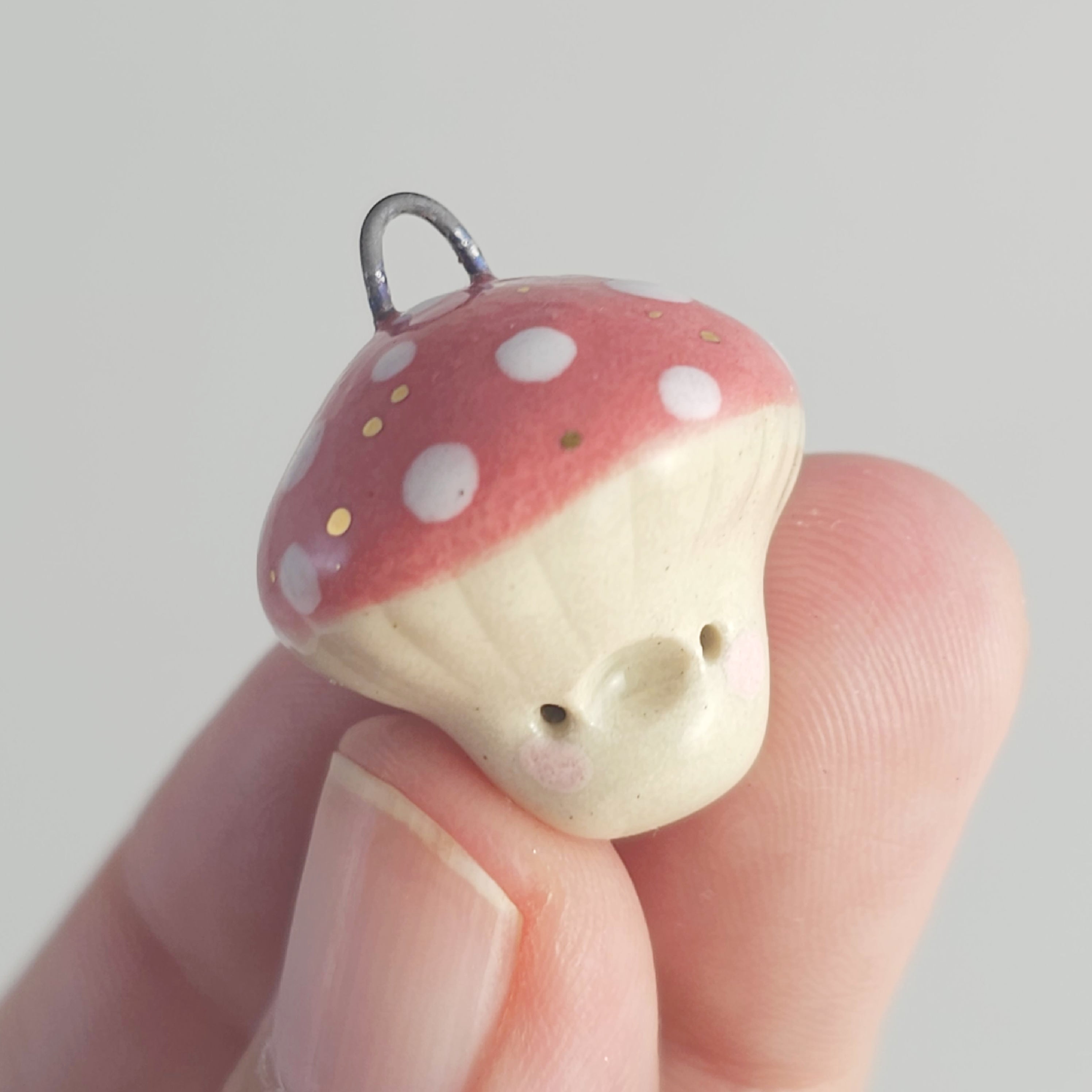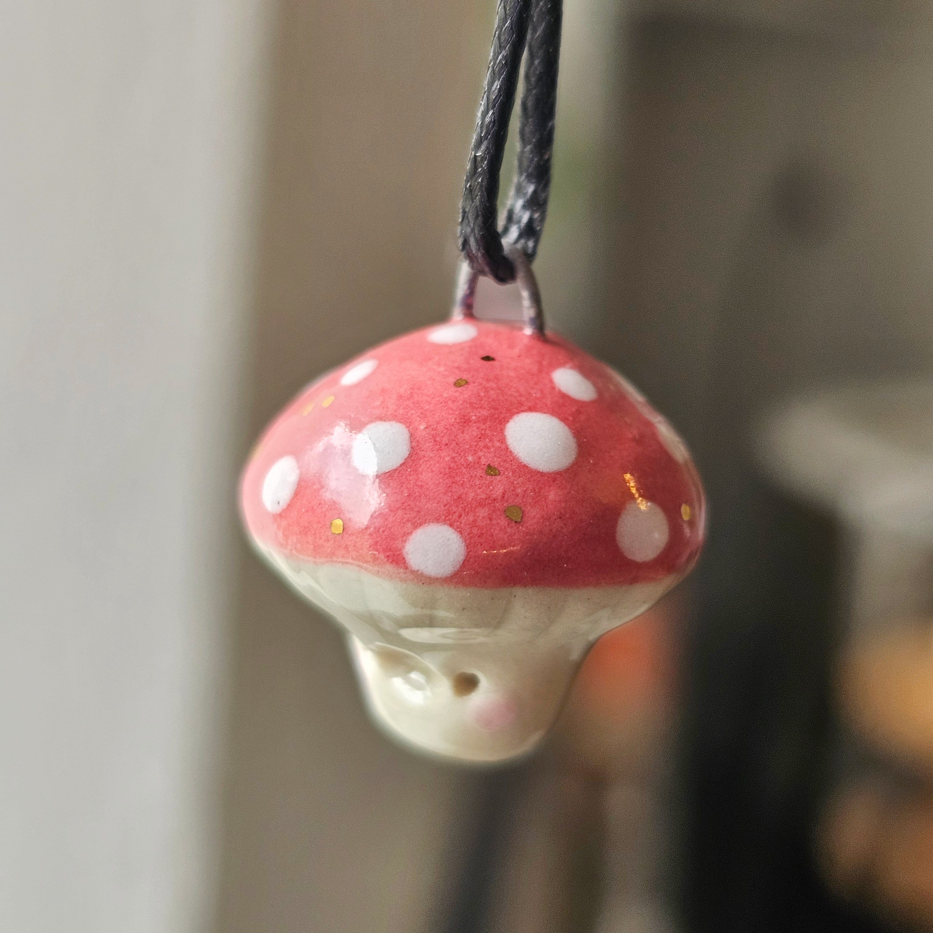 Hand sculpted & hand painted pendant, covered in a transparent glaze and embellished with gold luster details.