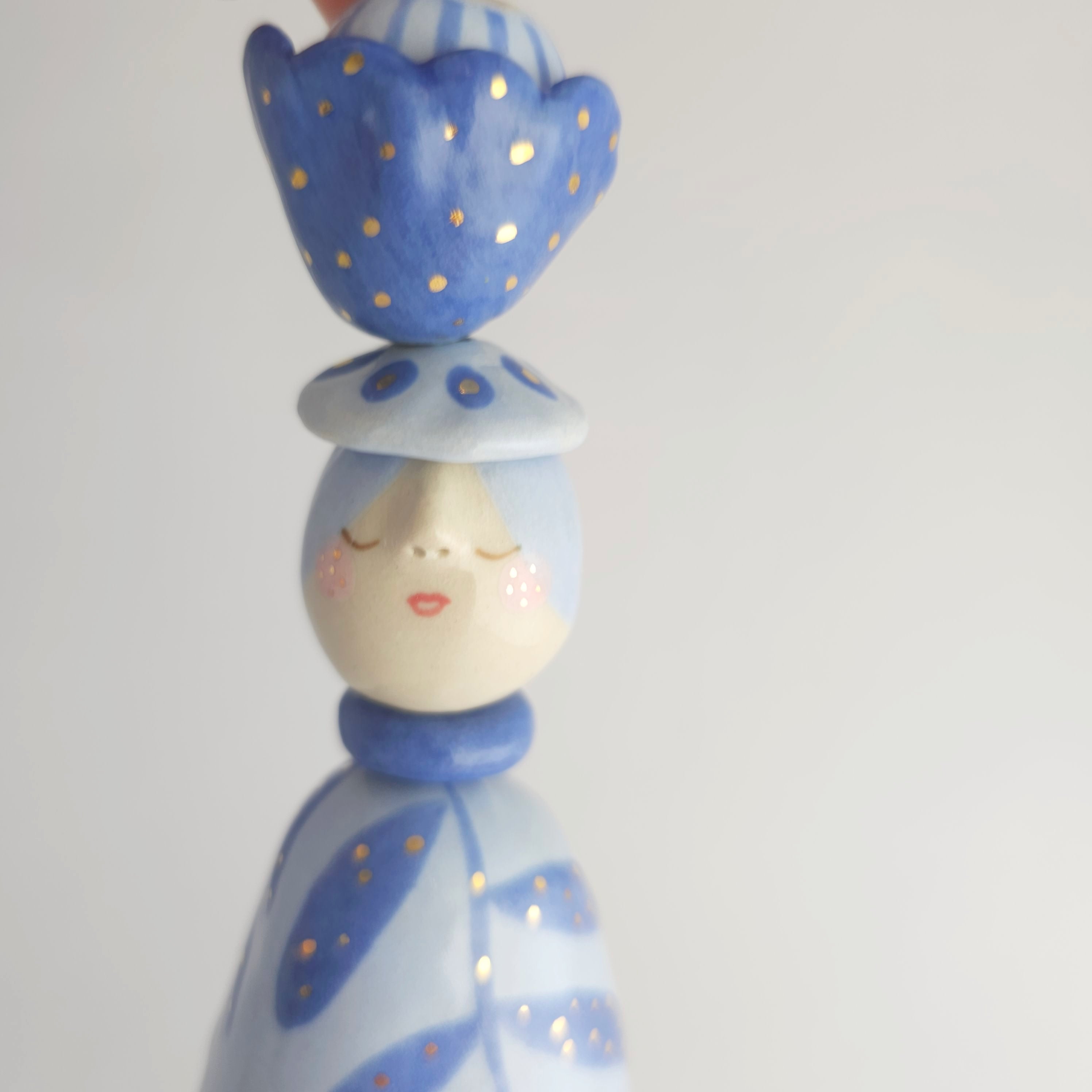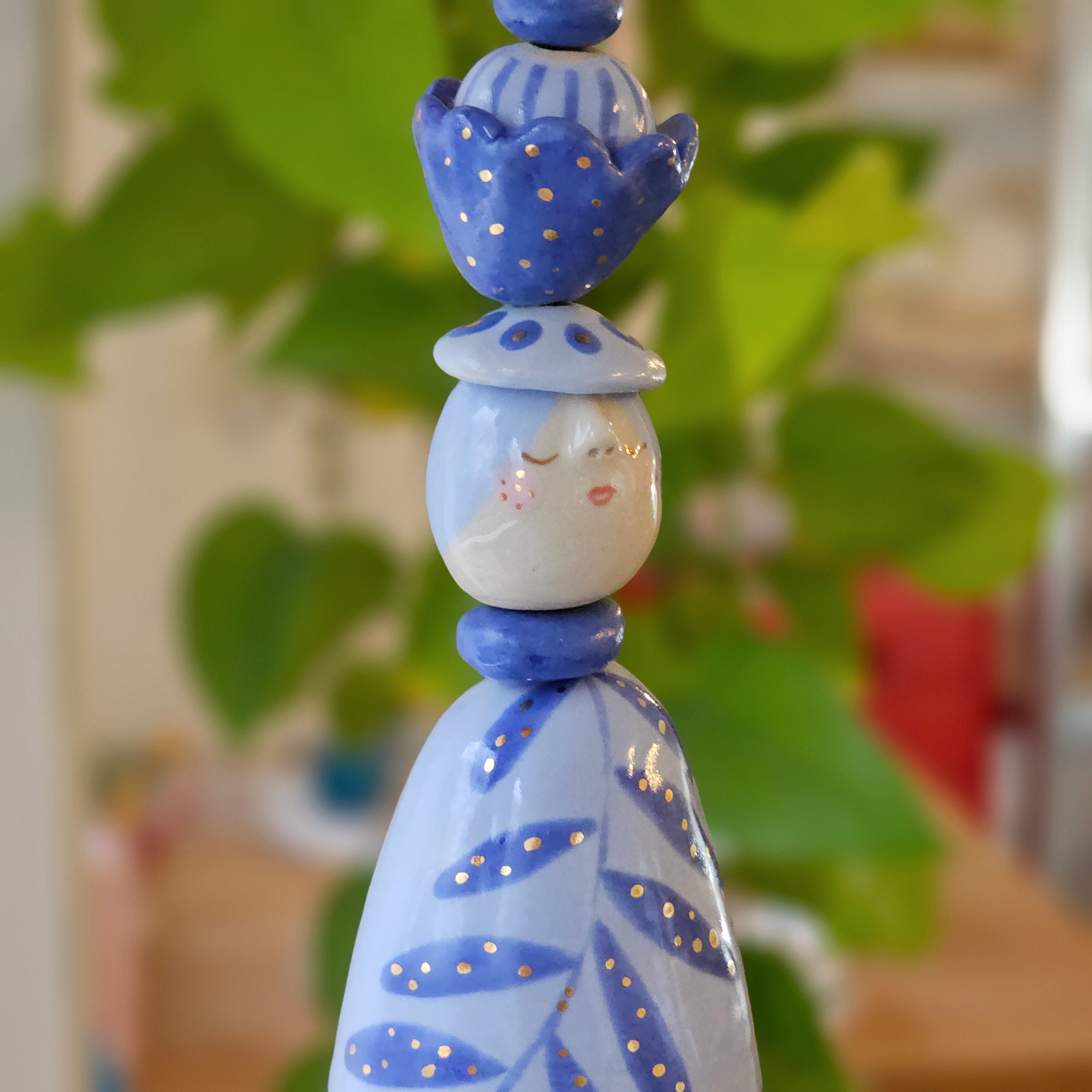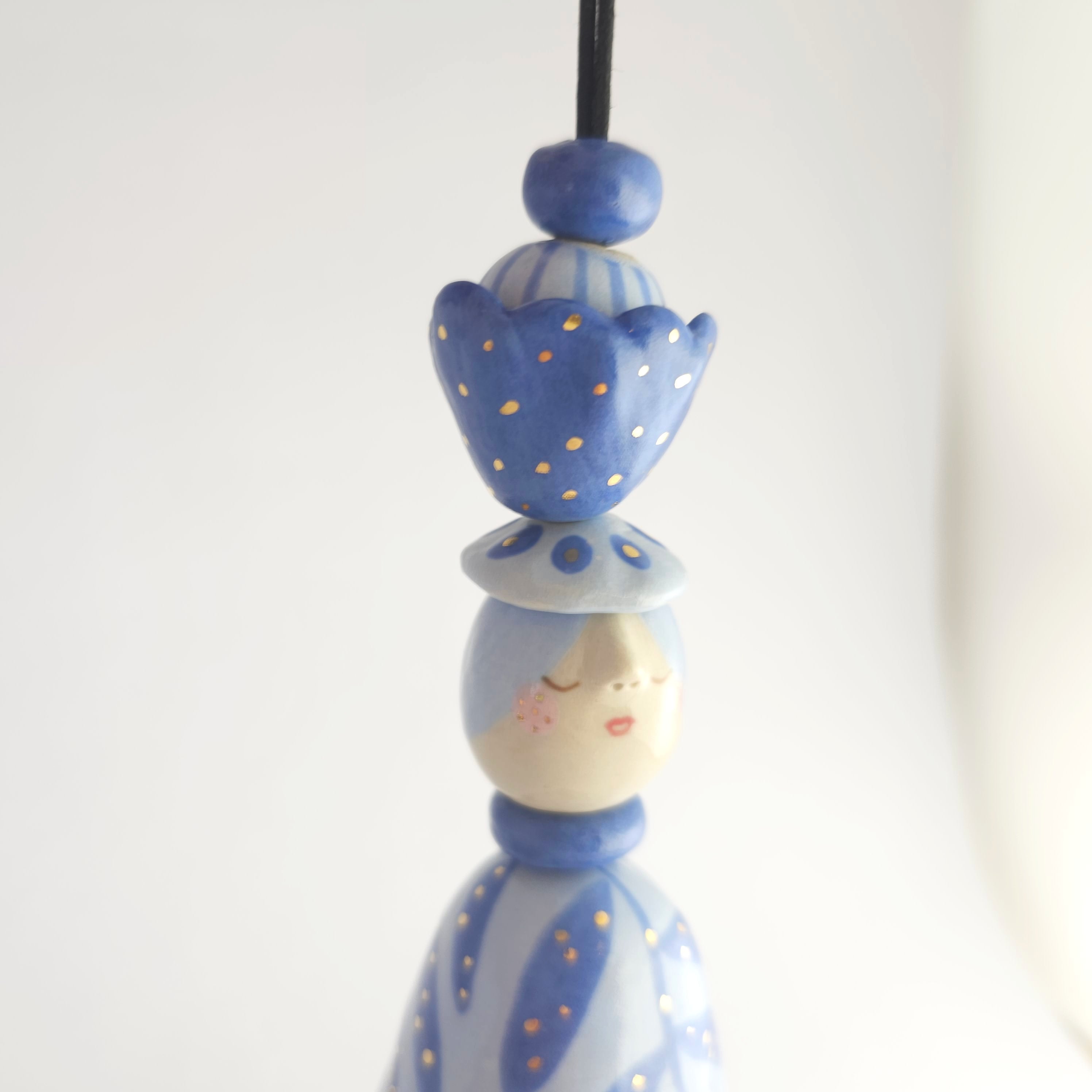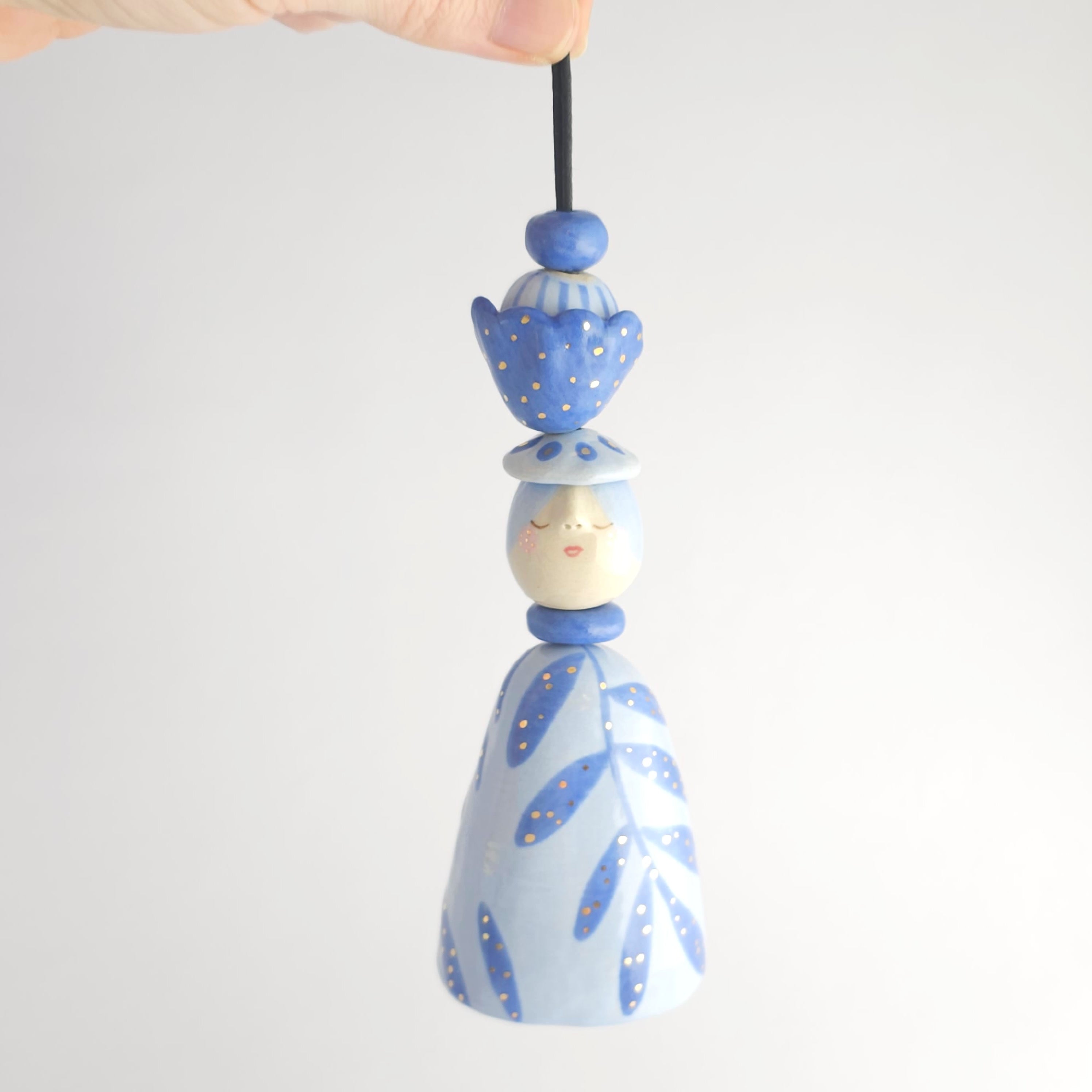 Every piece of this ceramic bell is 100% handmade. After building them by hand, I sculpt and paint them with lots of care, giving each bell its own unique character.