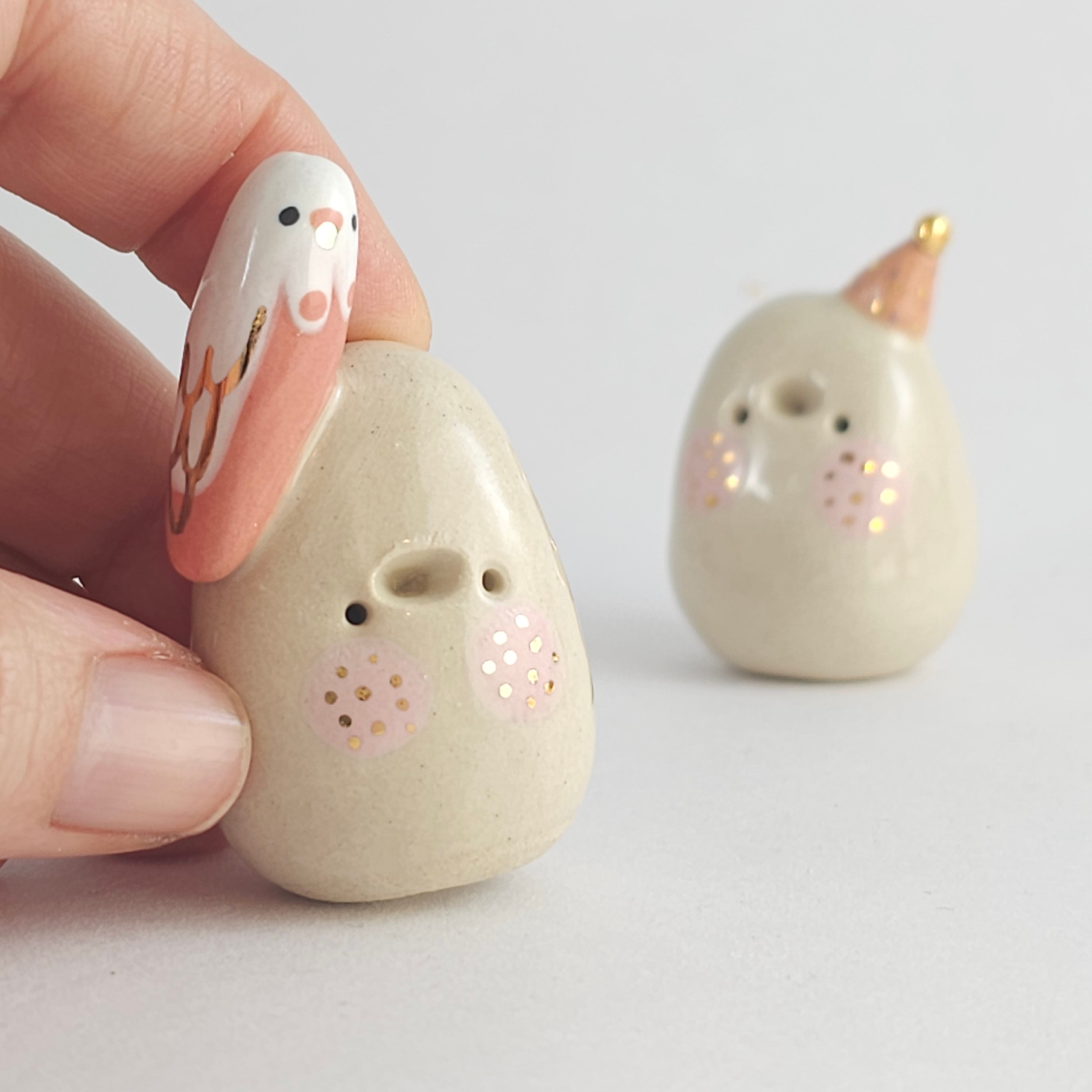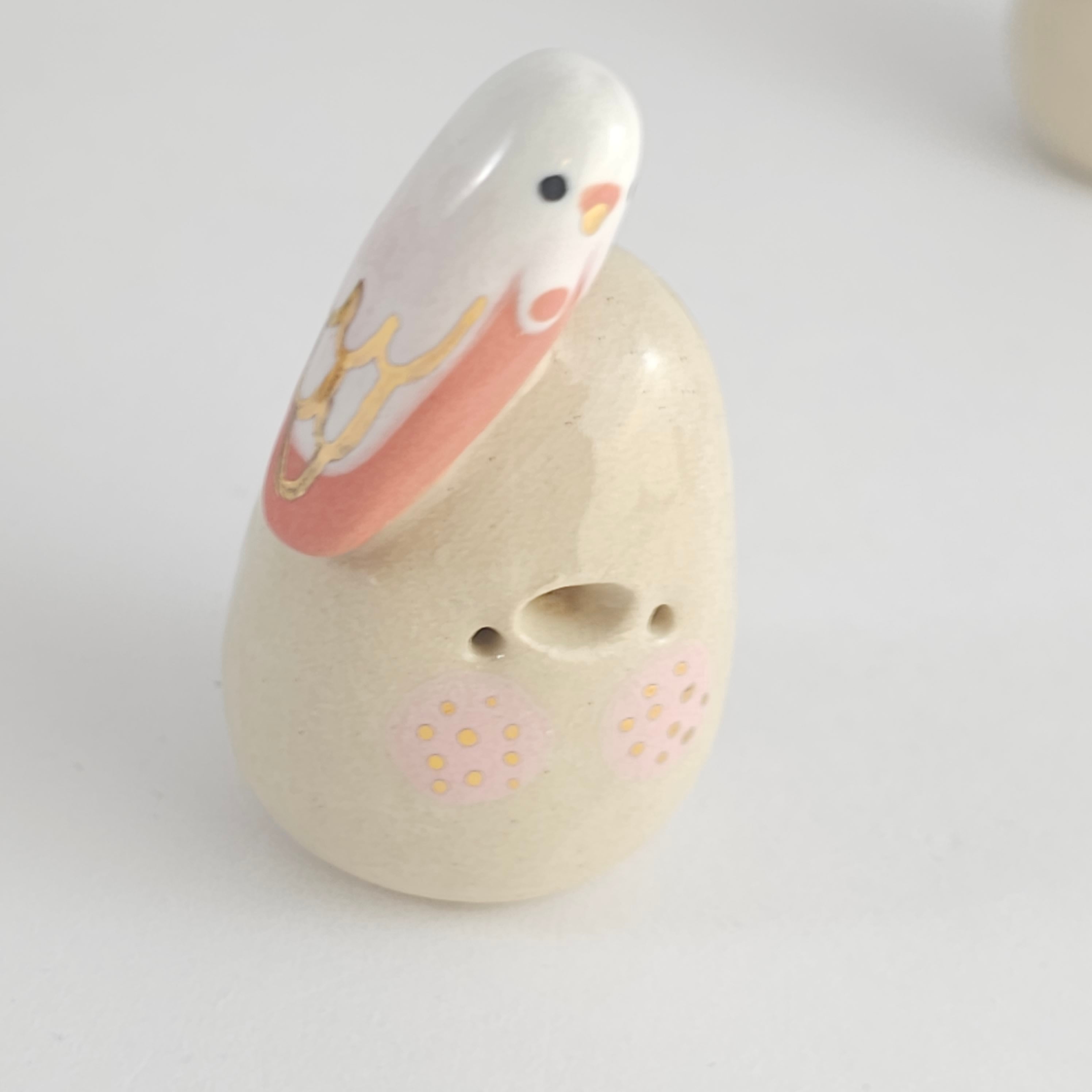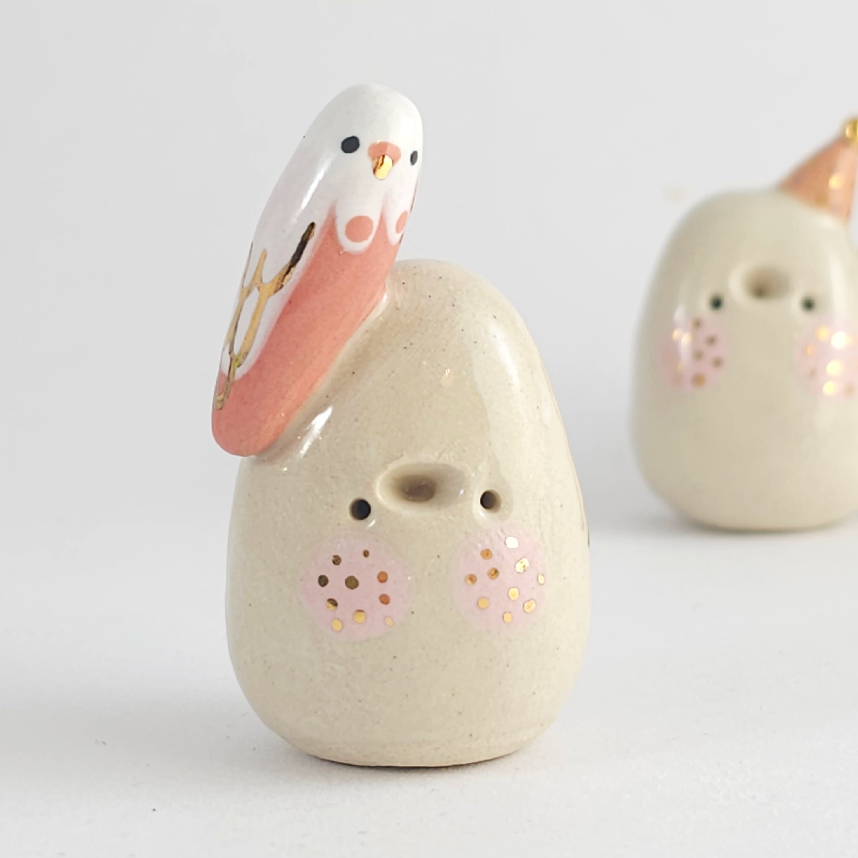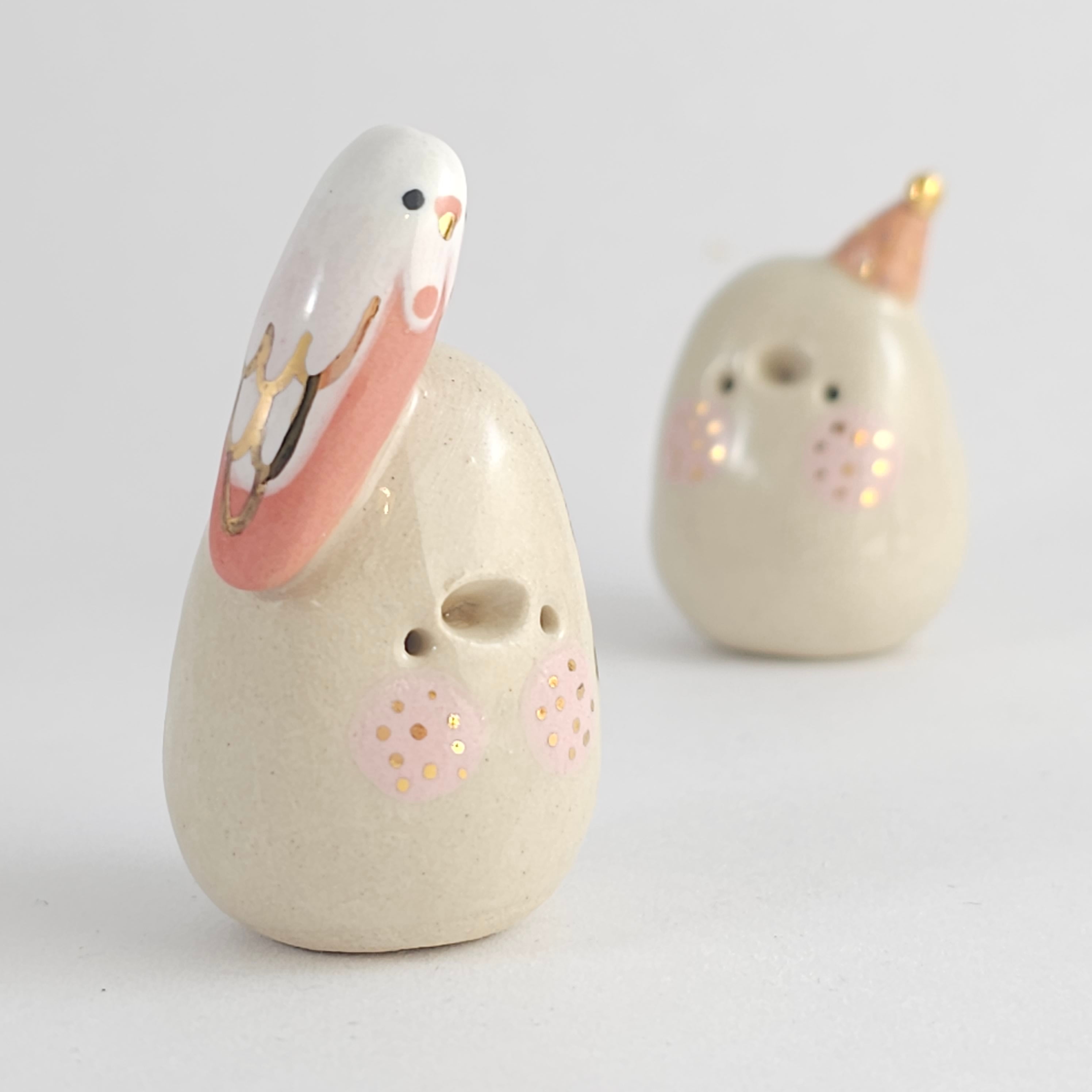 Small, hand built ceramic sculpture with 24-carat gold luster details