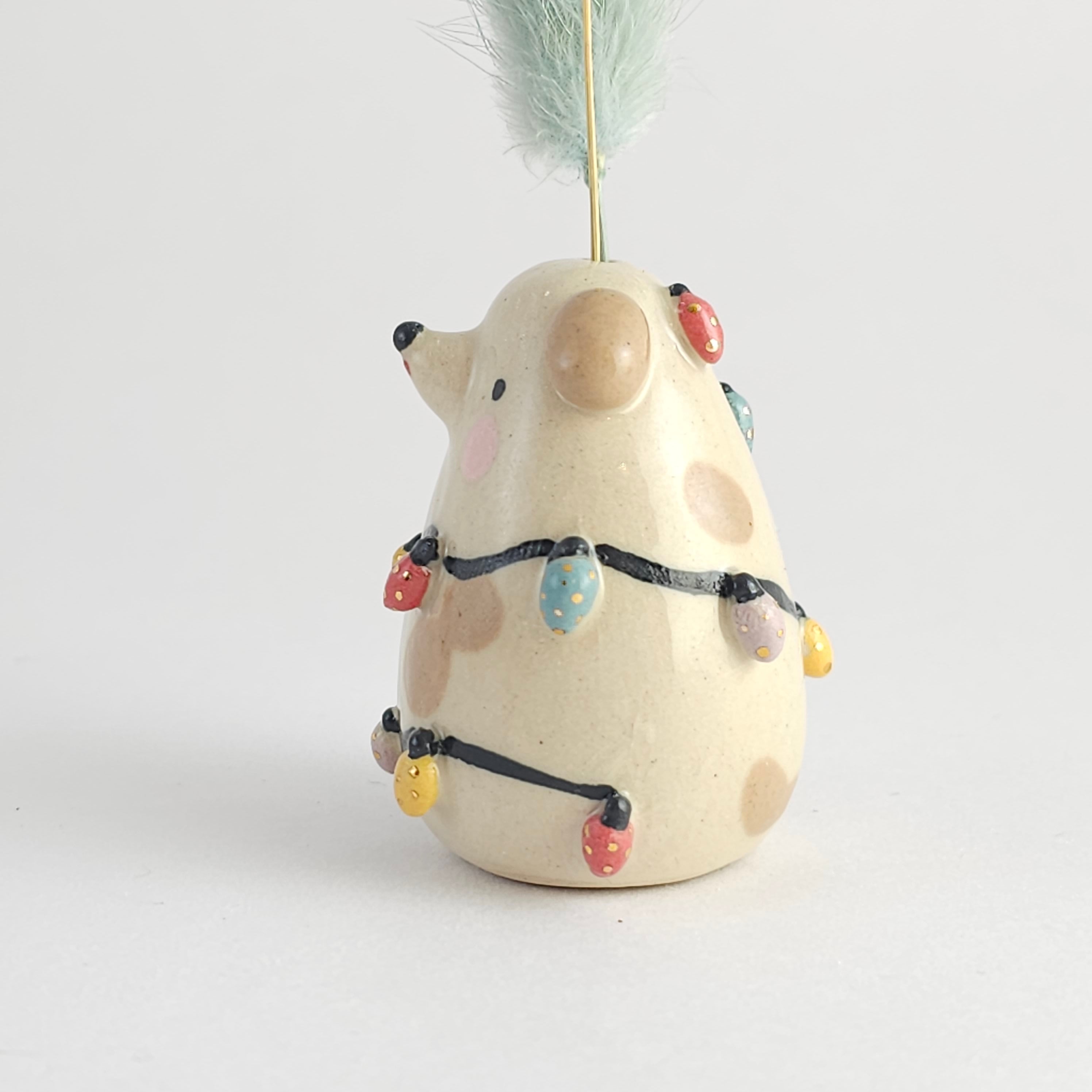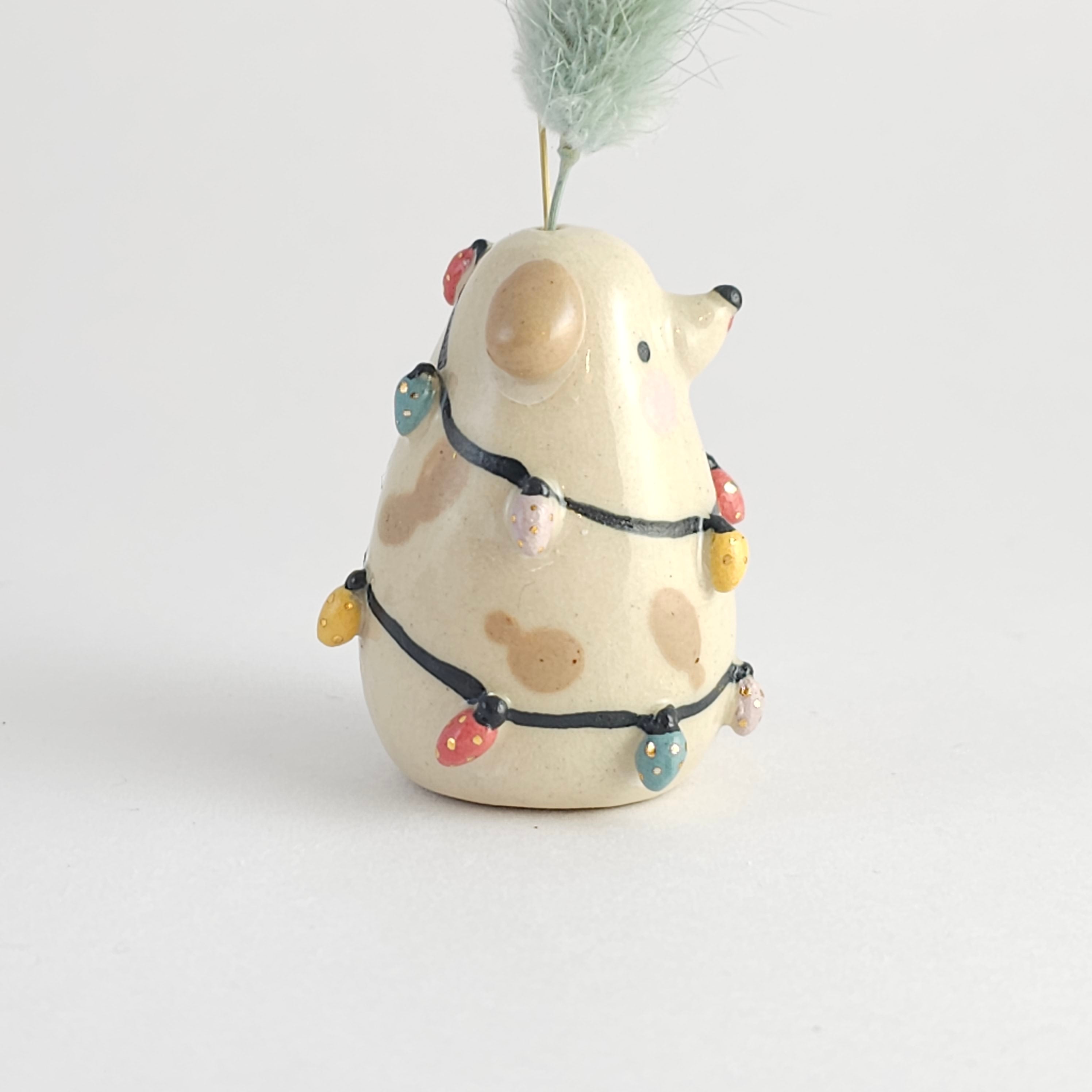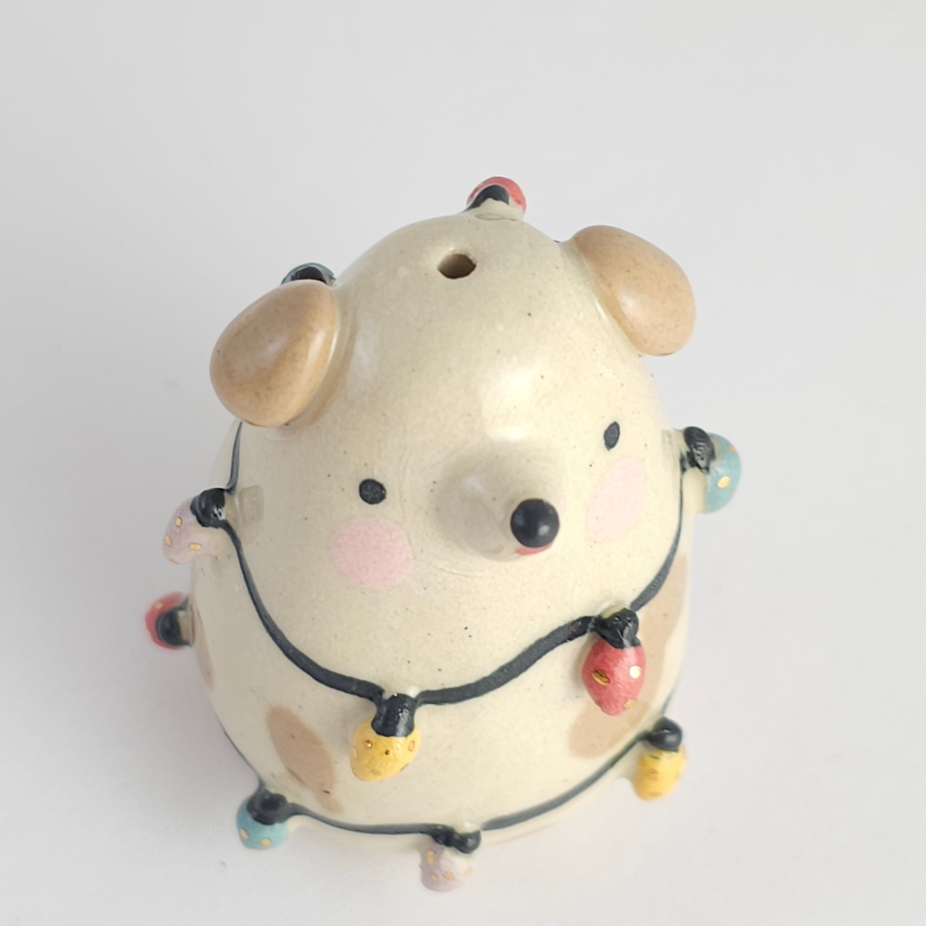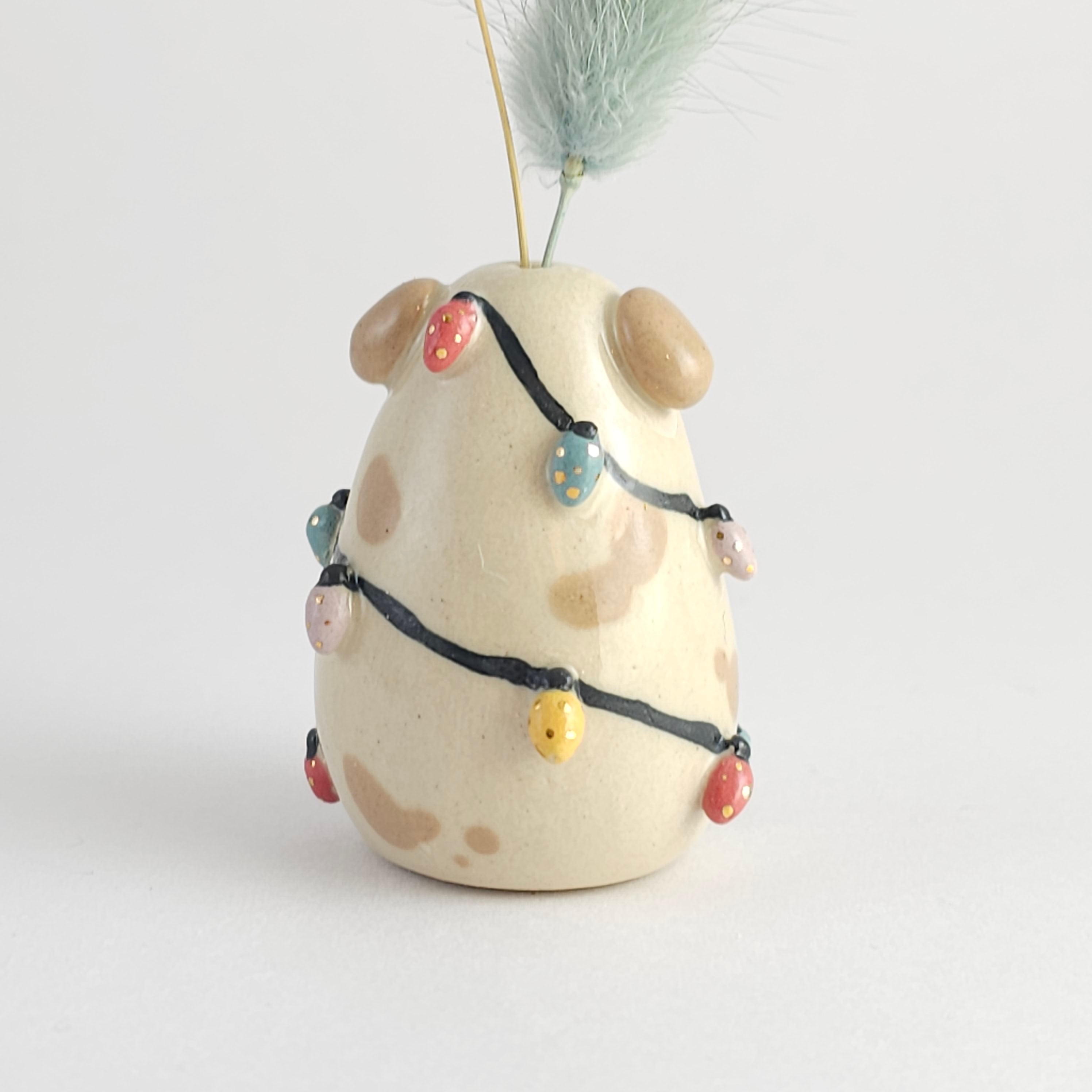 Small, hand built ceramic sculpture. Dipped in transparent glaze and covered with Gold Luster details.
