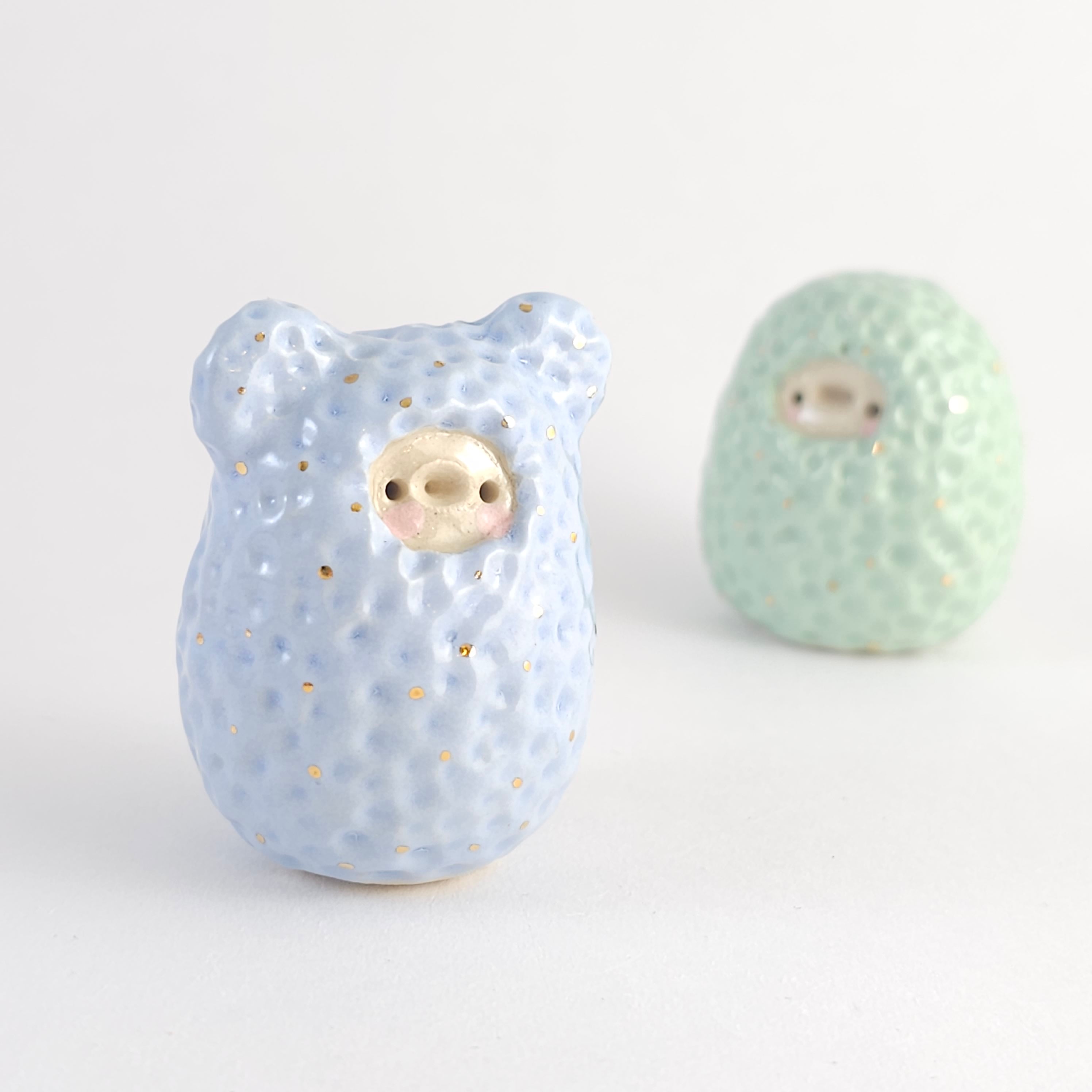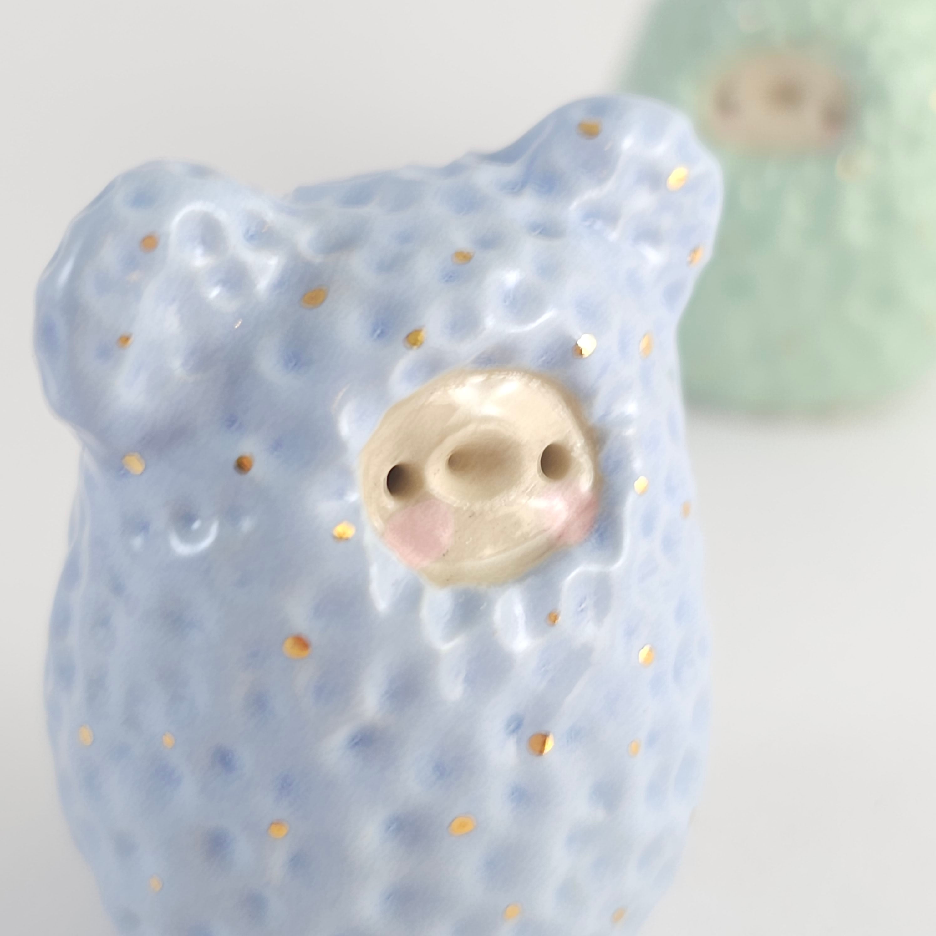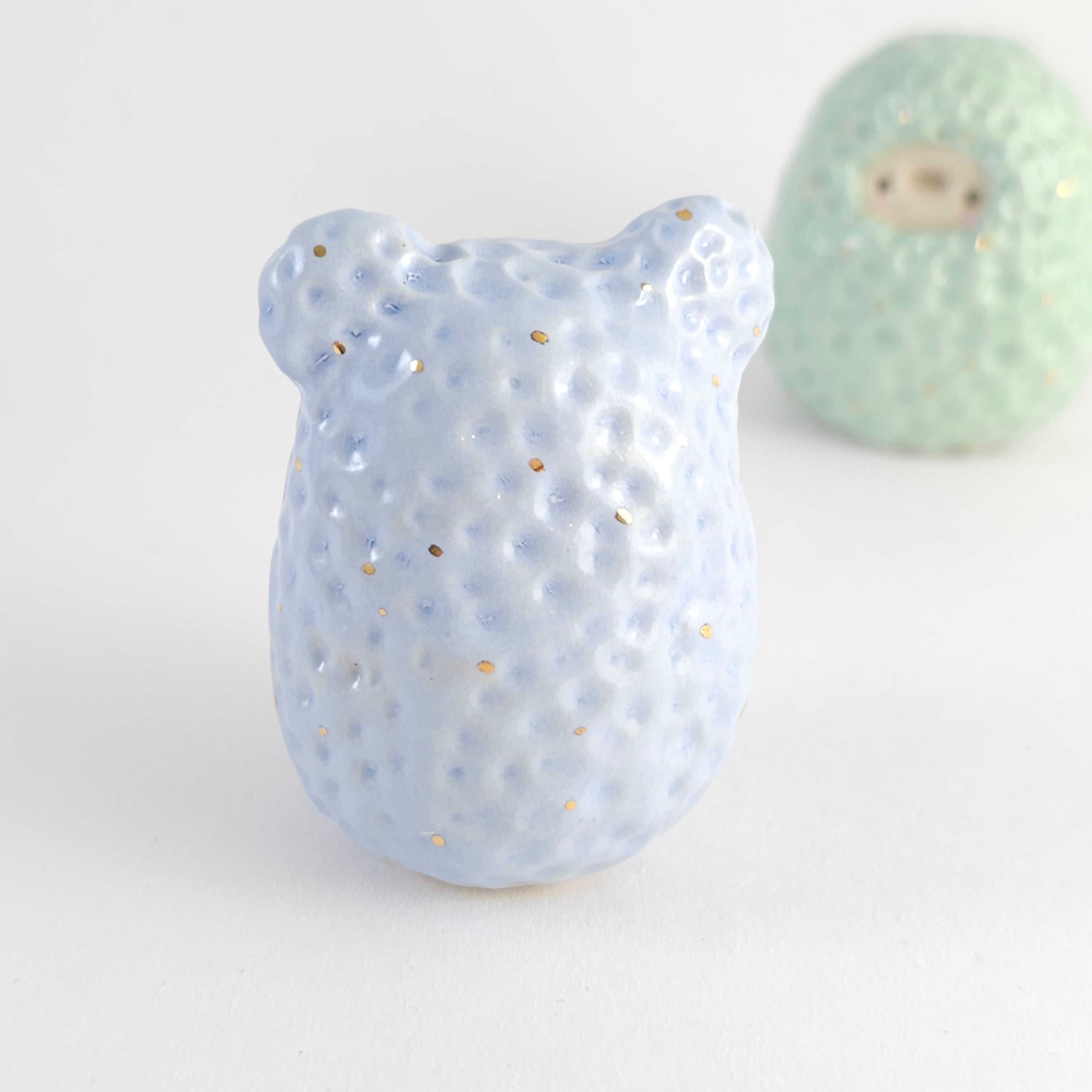Small, hand built ceramic sculpture with 24-carat gold luster details