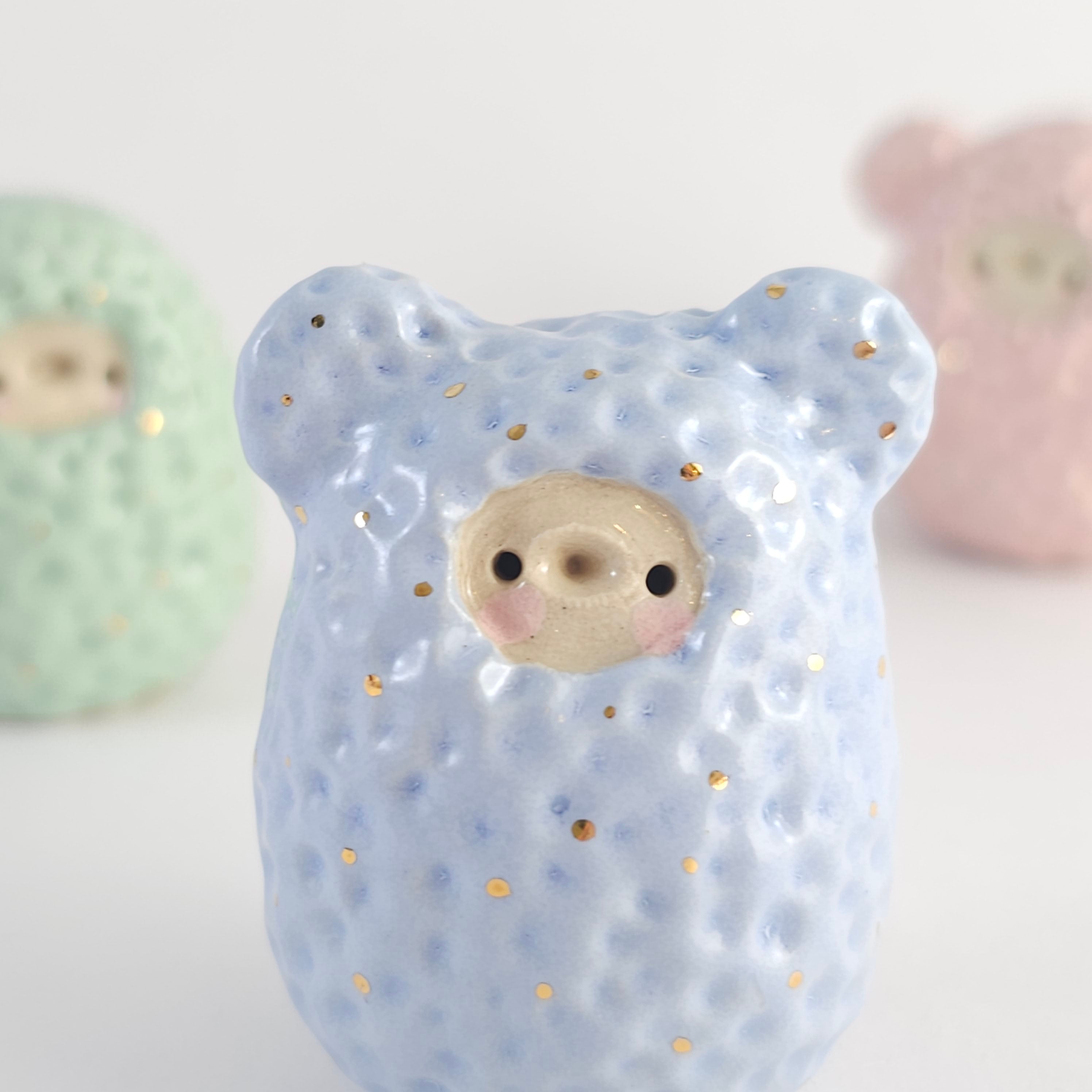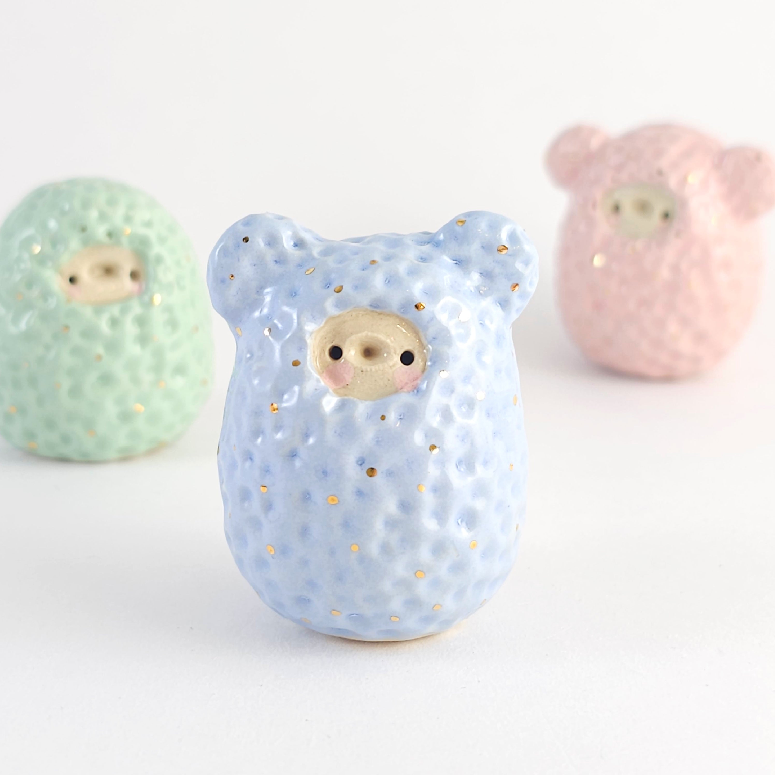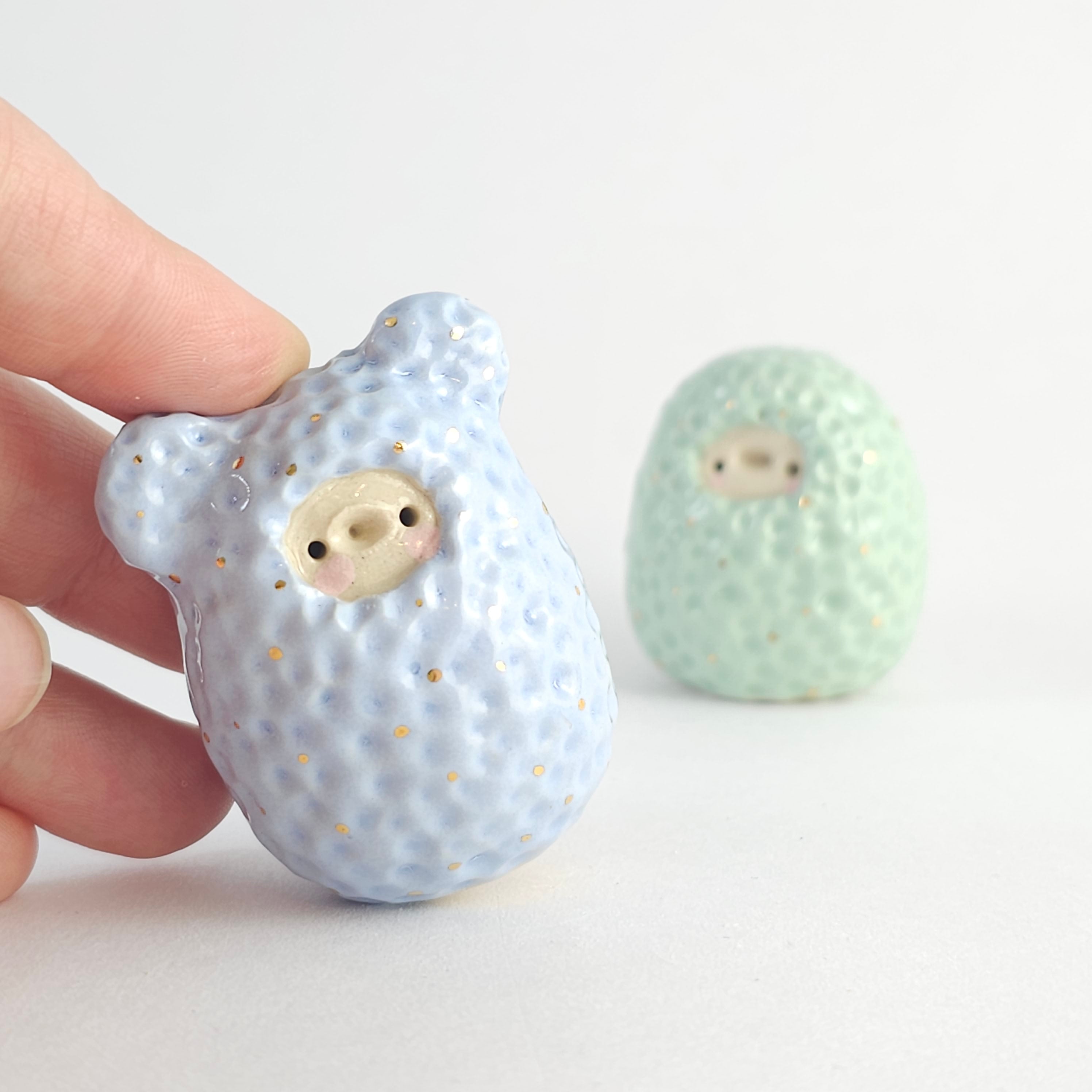 Small, hand built ceramic sculpture with 24-carat gold luster details