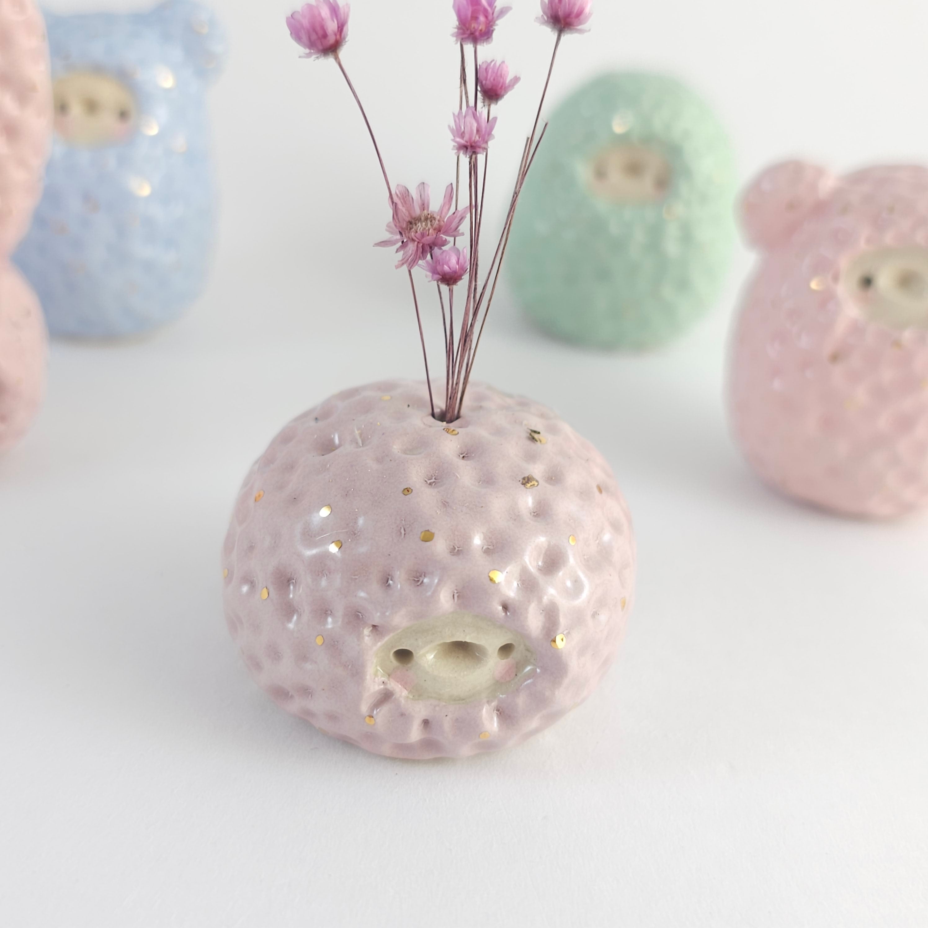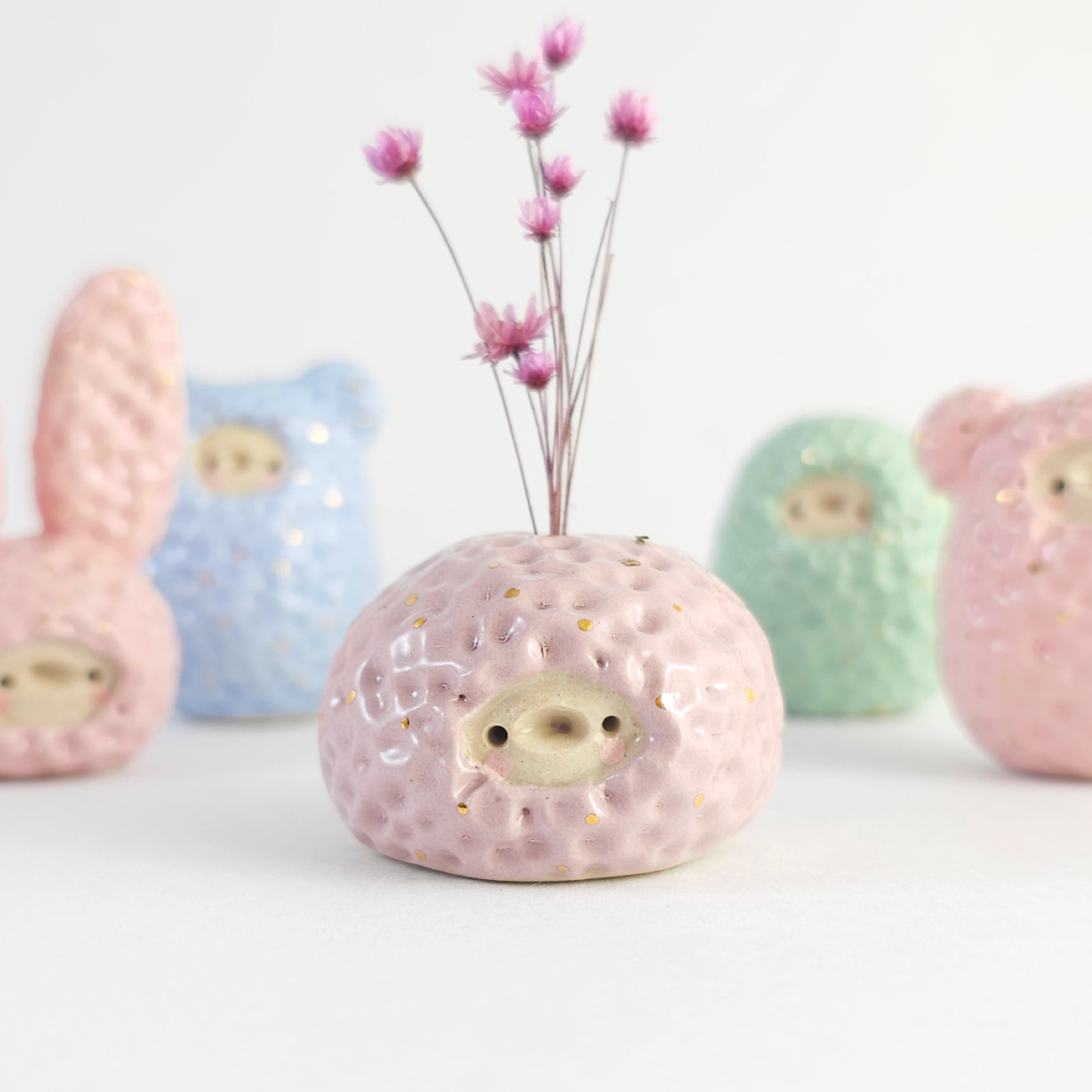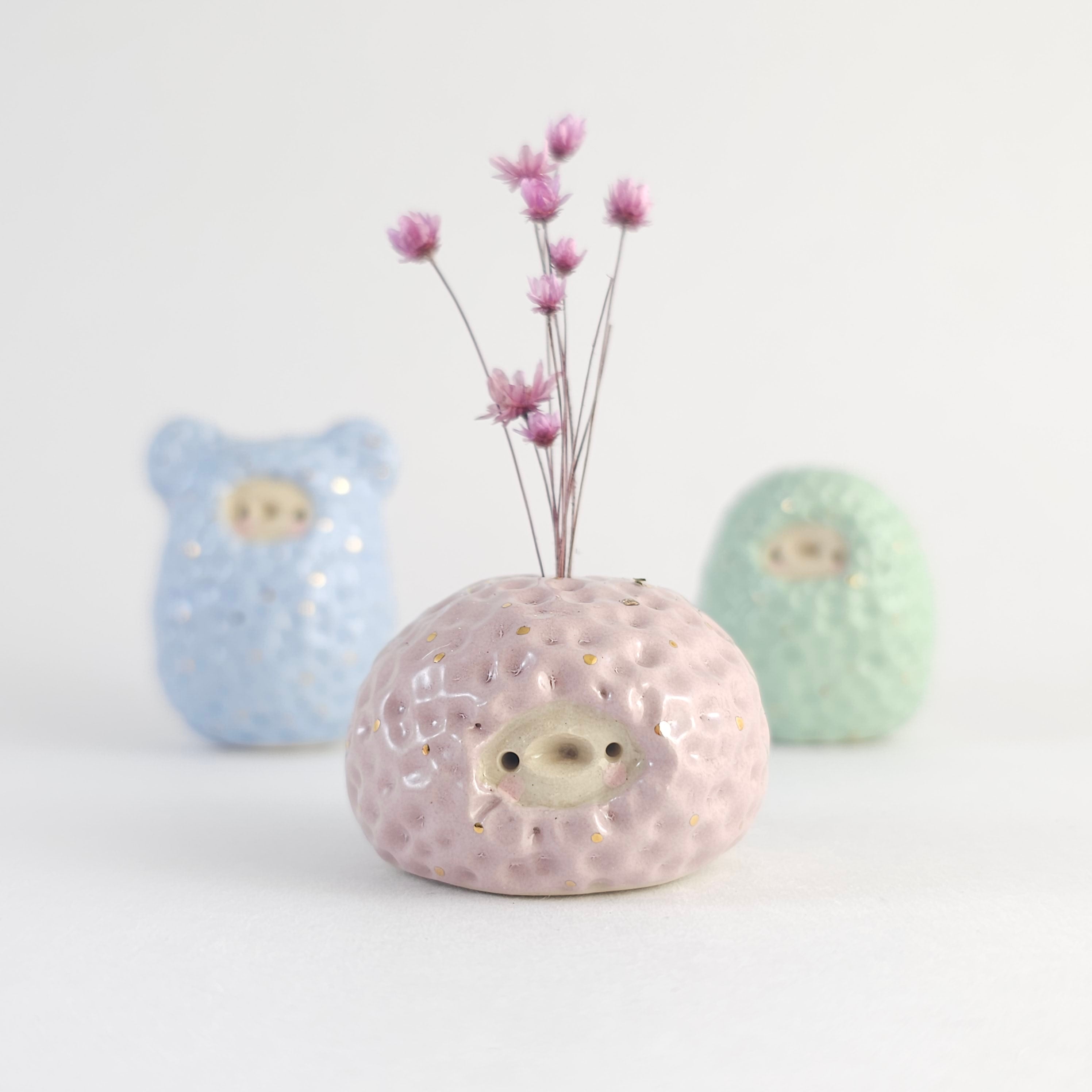 Small, hand built ceramic sculpture with 24-carat gold luster details