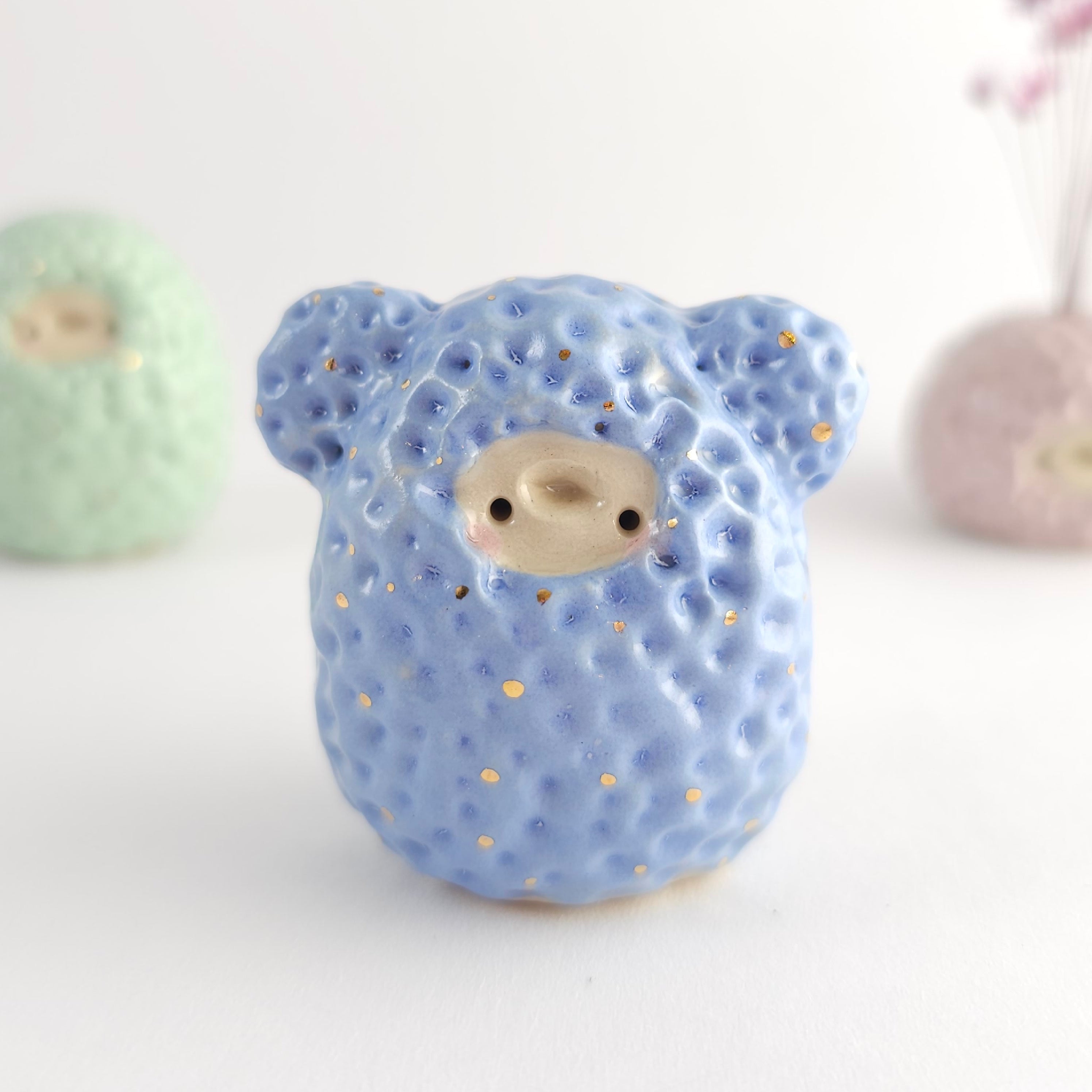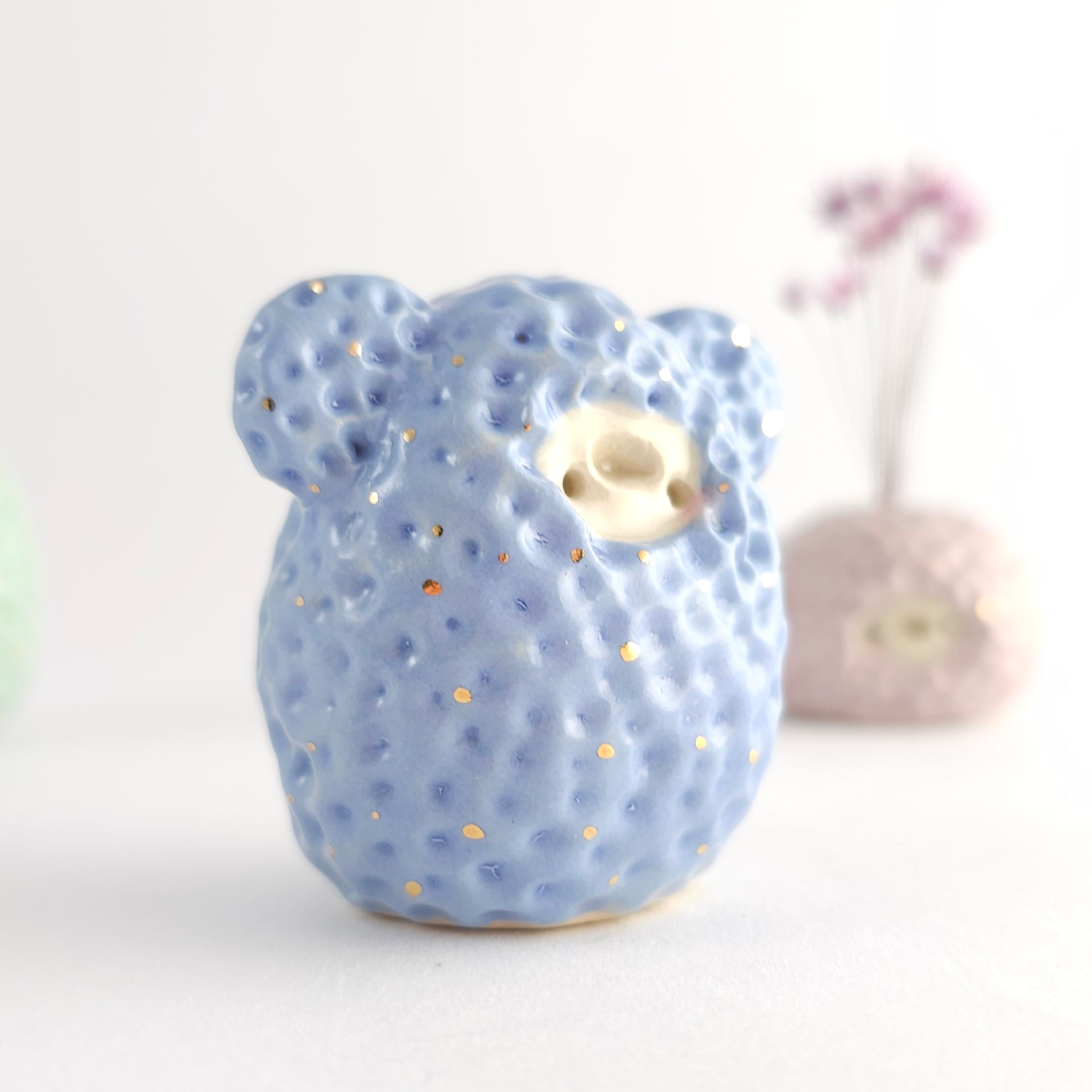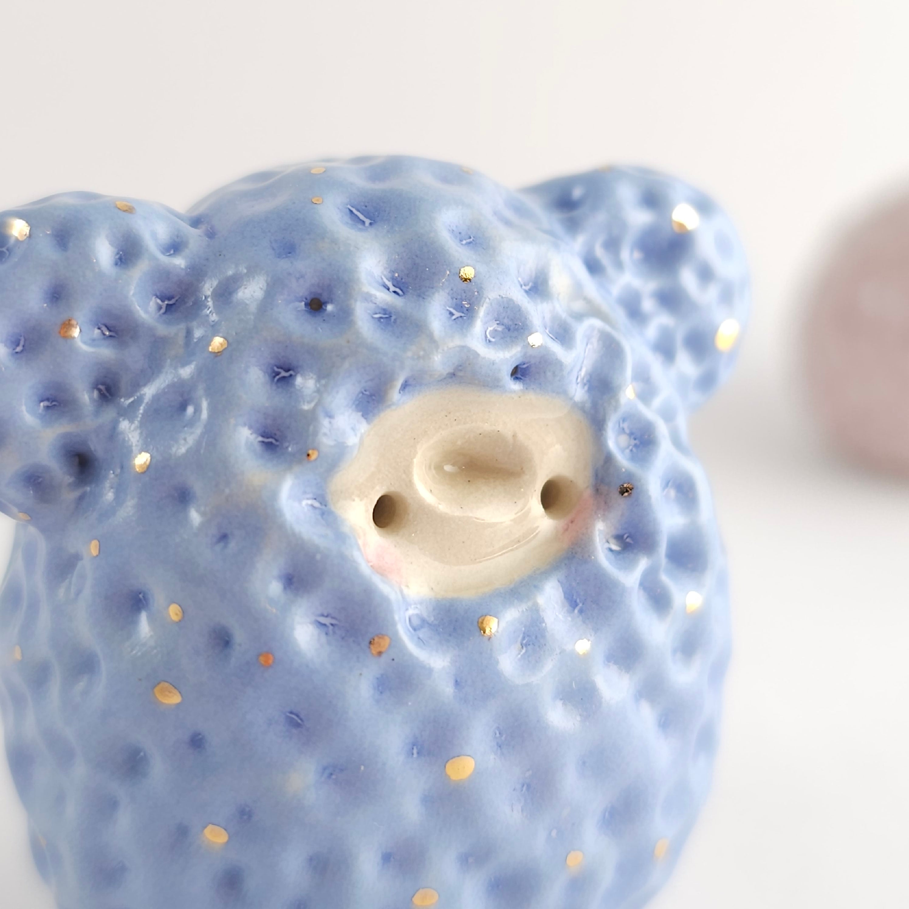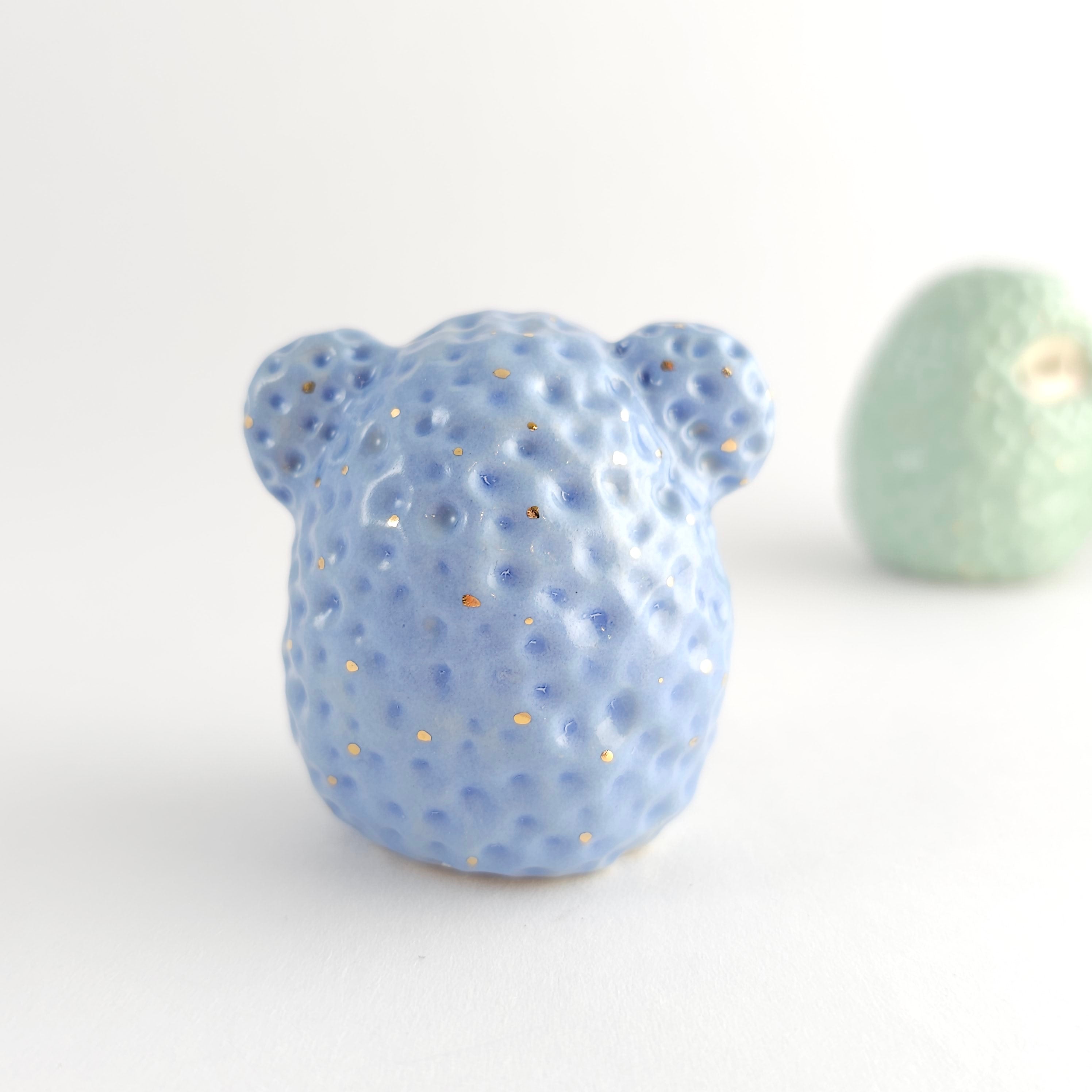 Small, hand built ceramic sculpture with 24-carat gold luster details