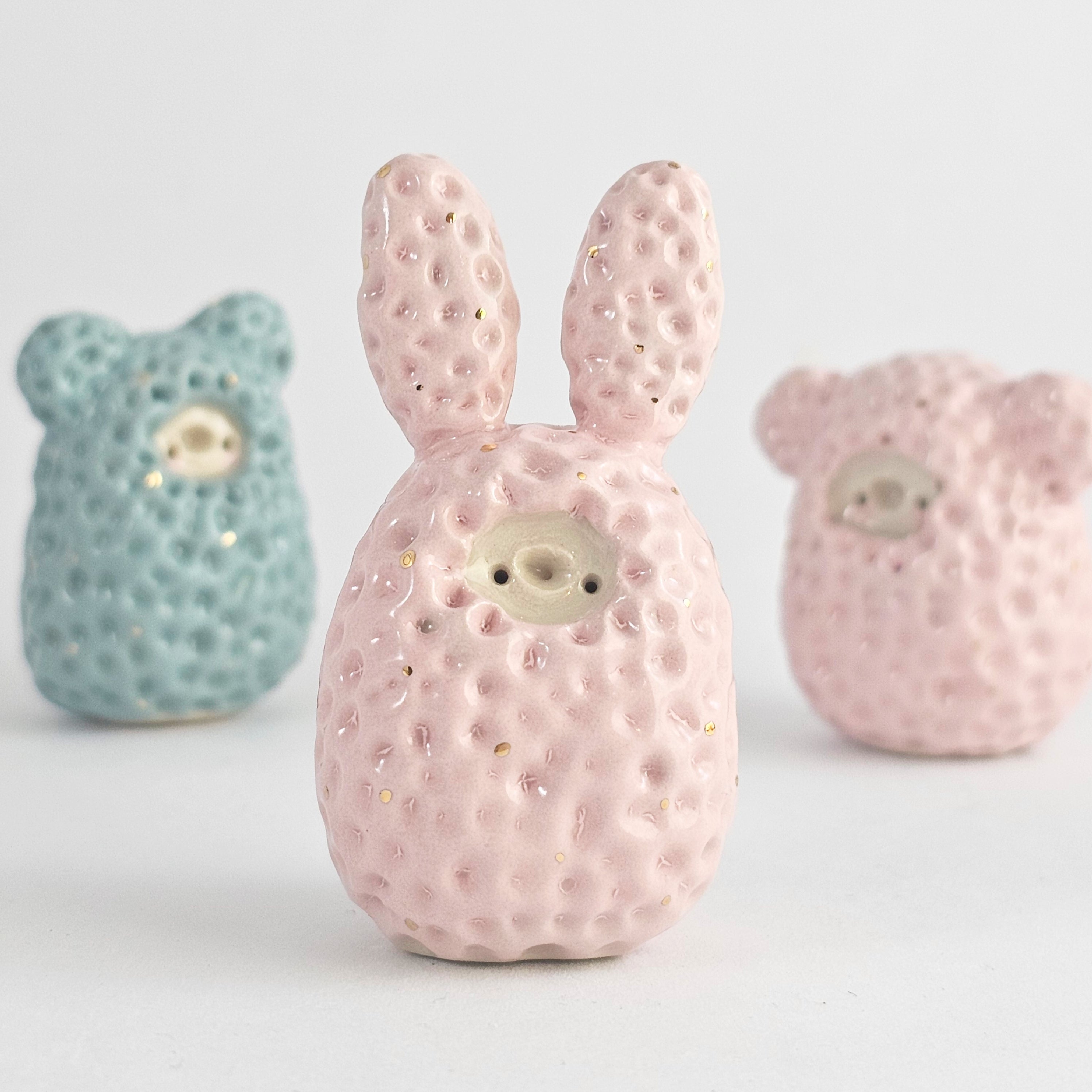 Small, hand built ceramic sculpture with 24-carat gold luster details
