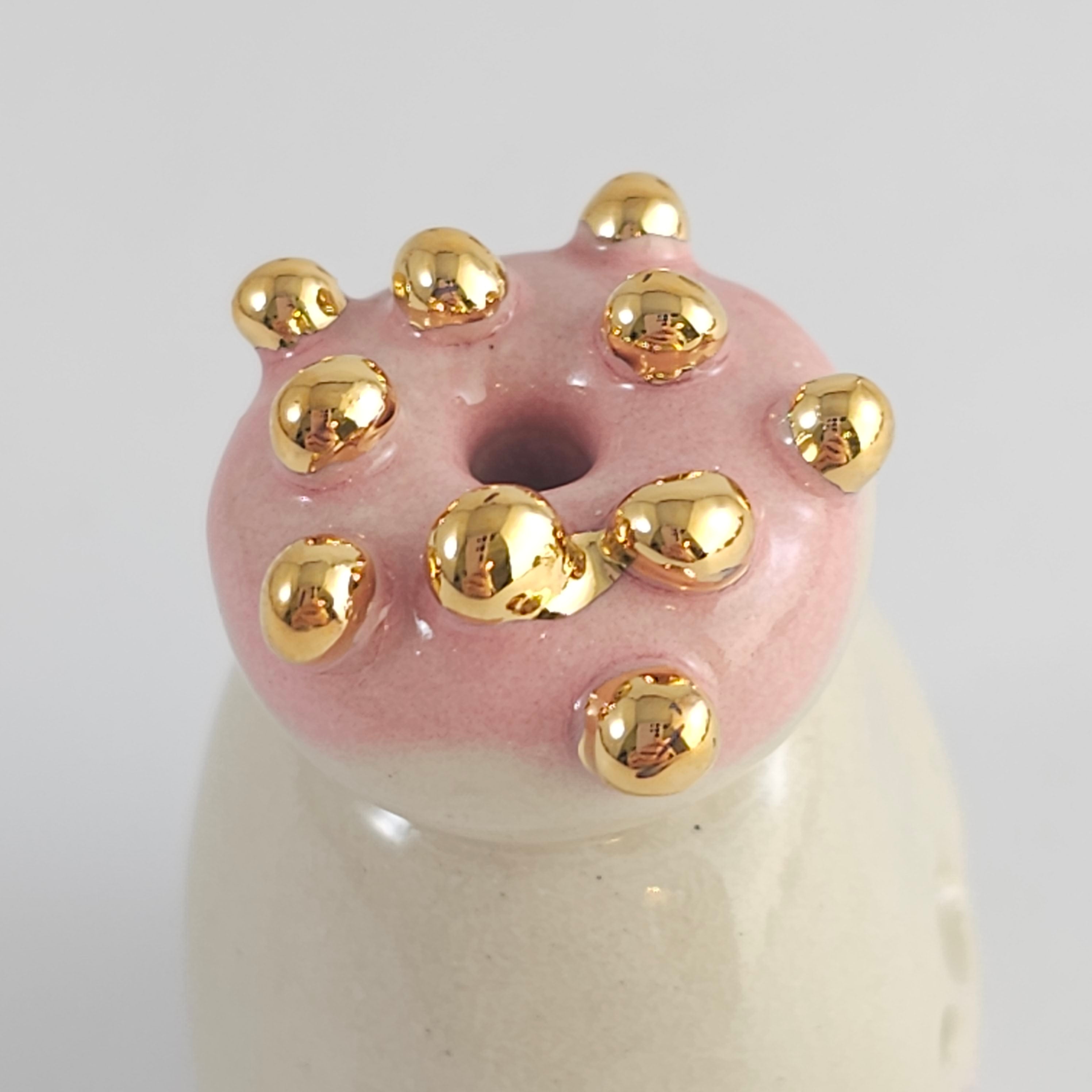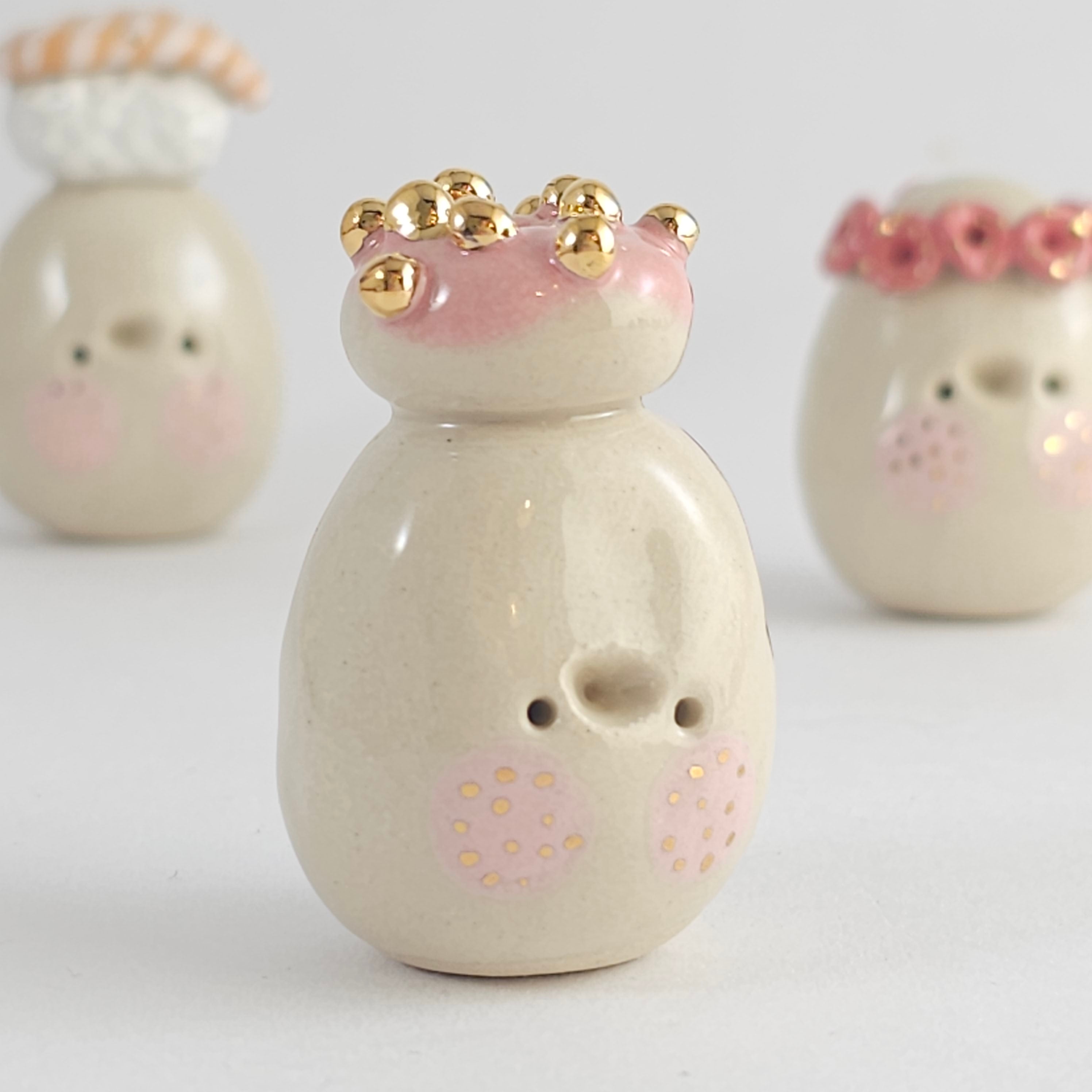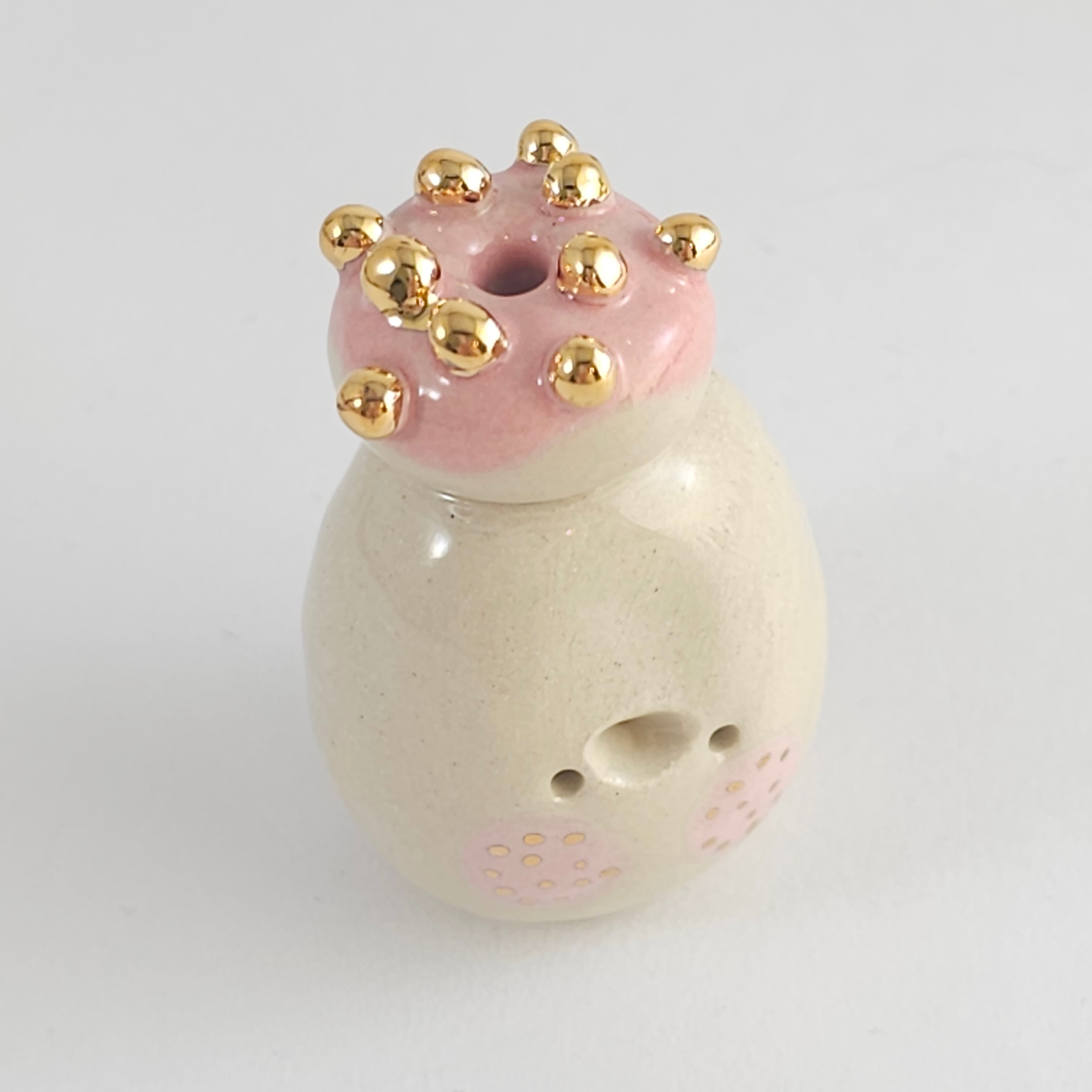 Small, hand built ceramic sculpture with 24-carat gold luster details