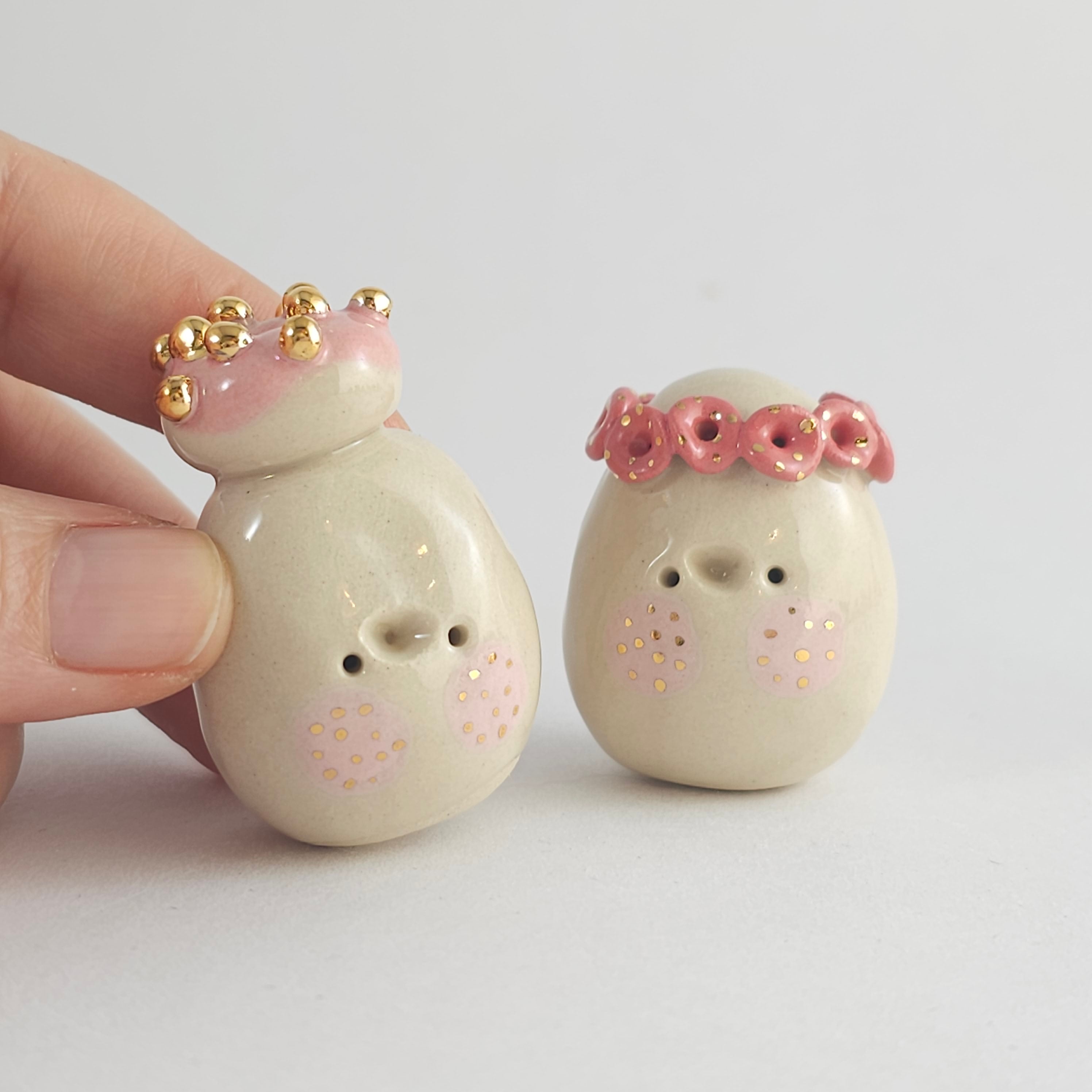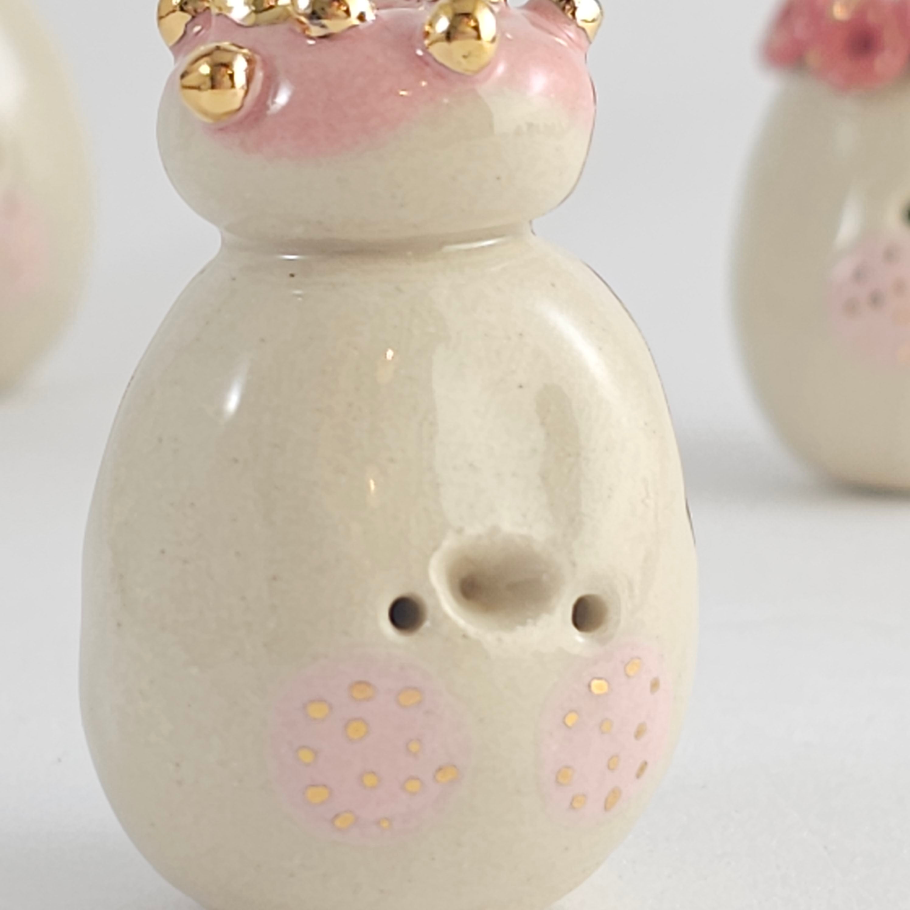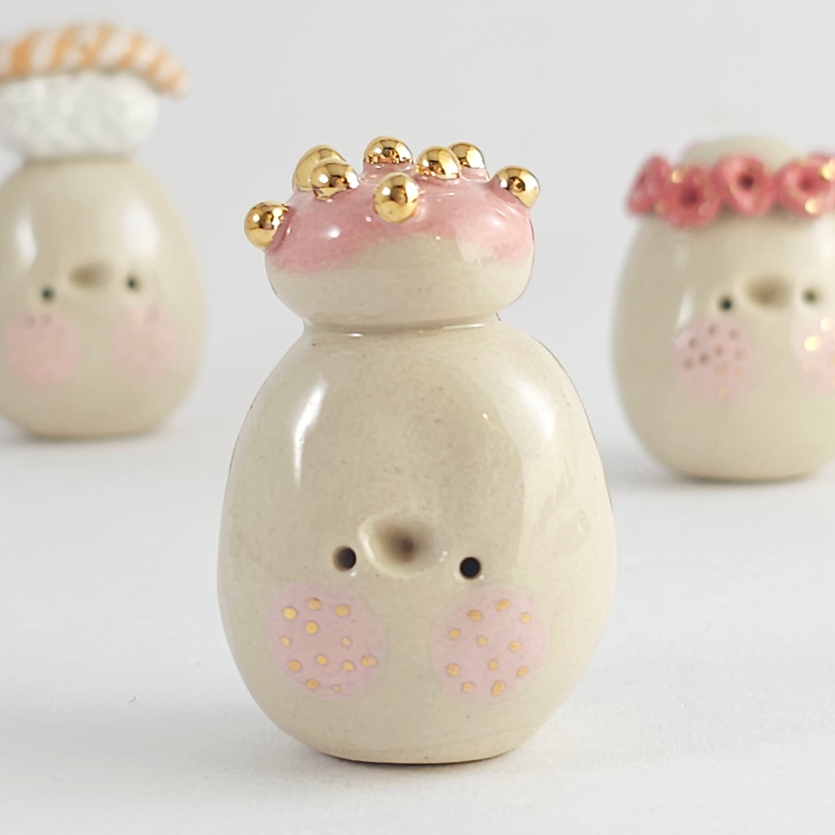 Small, hand built ceramic sculpture with 24-carat gold luster details