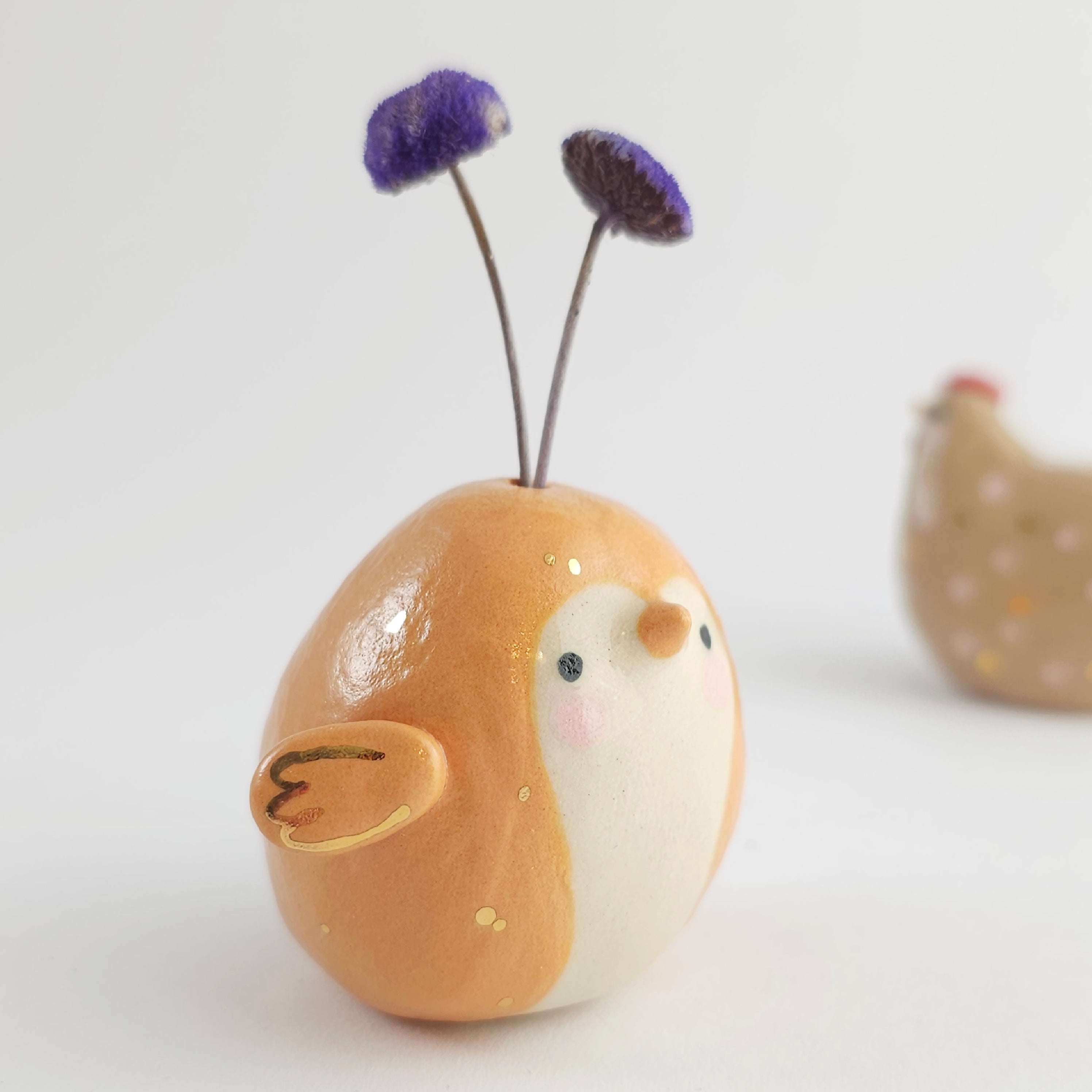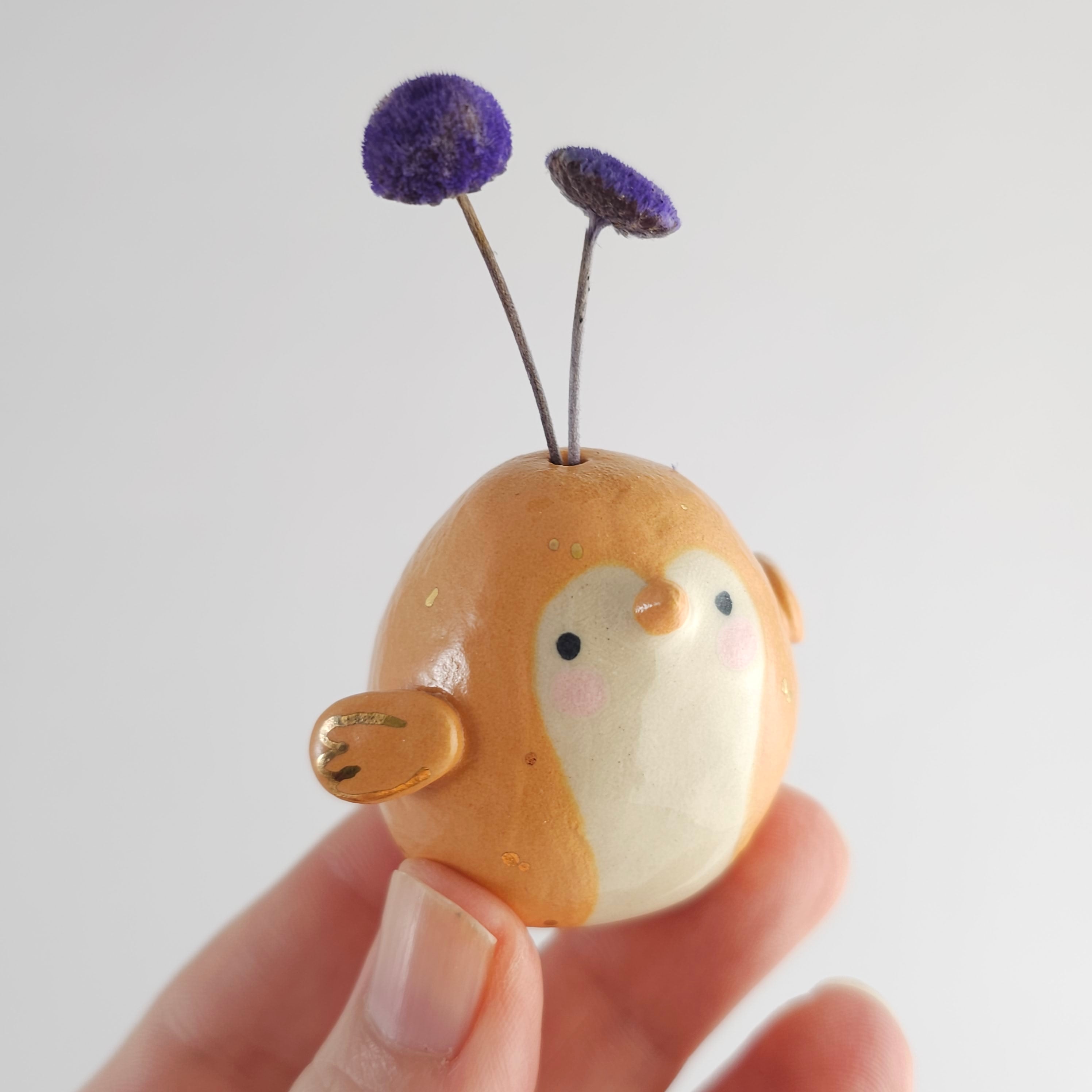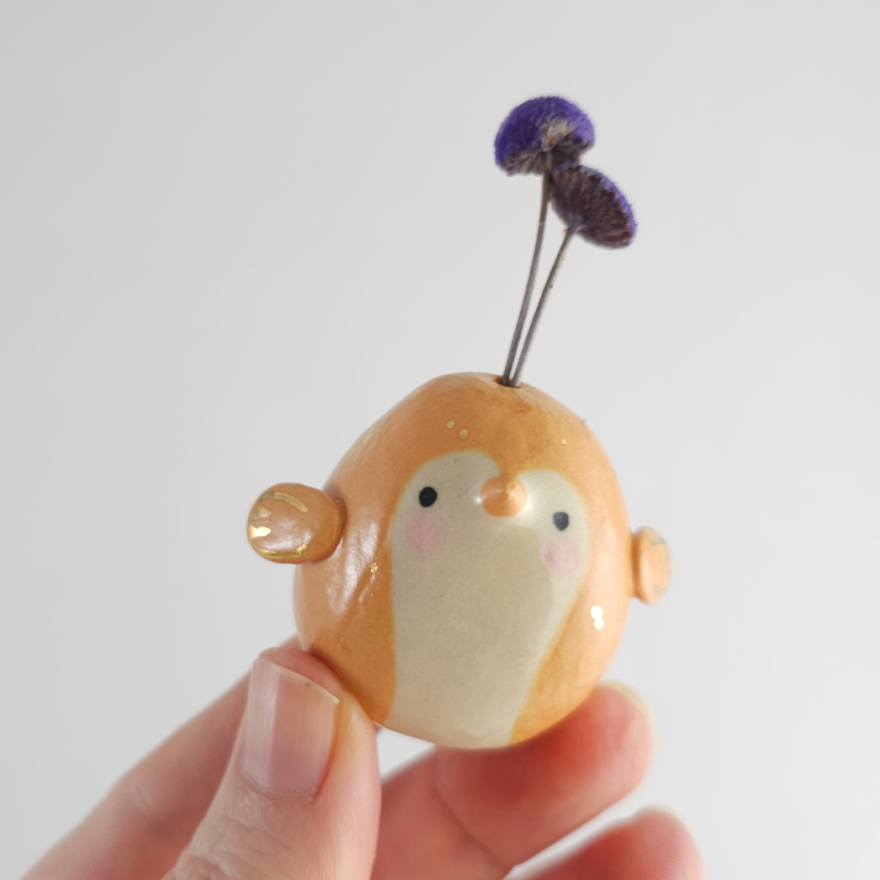 Small, hand built ceramic sculpture with gold luster details