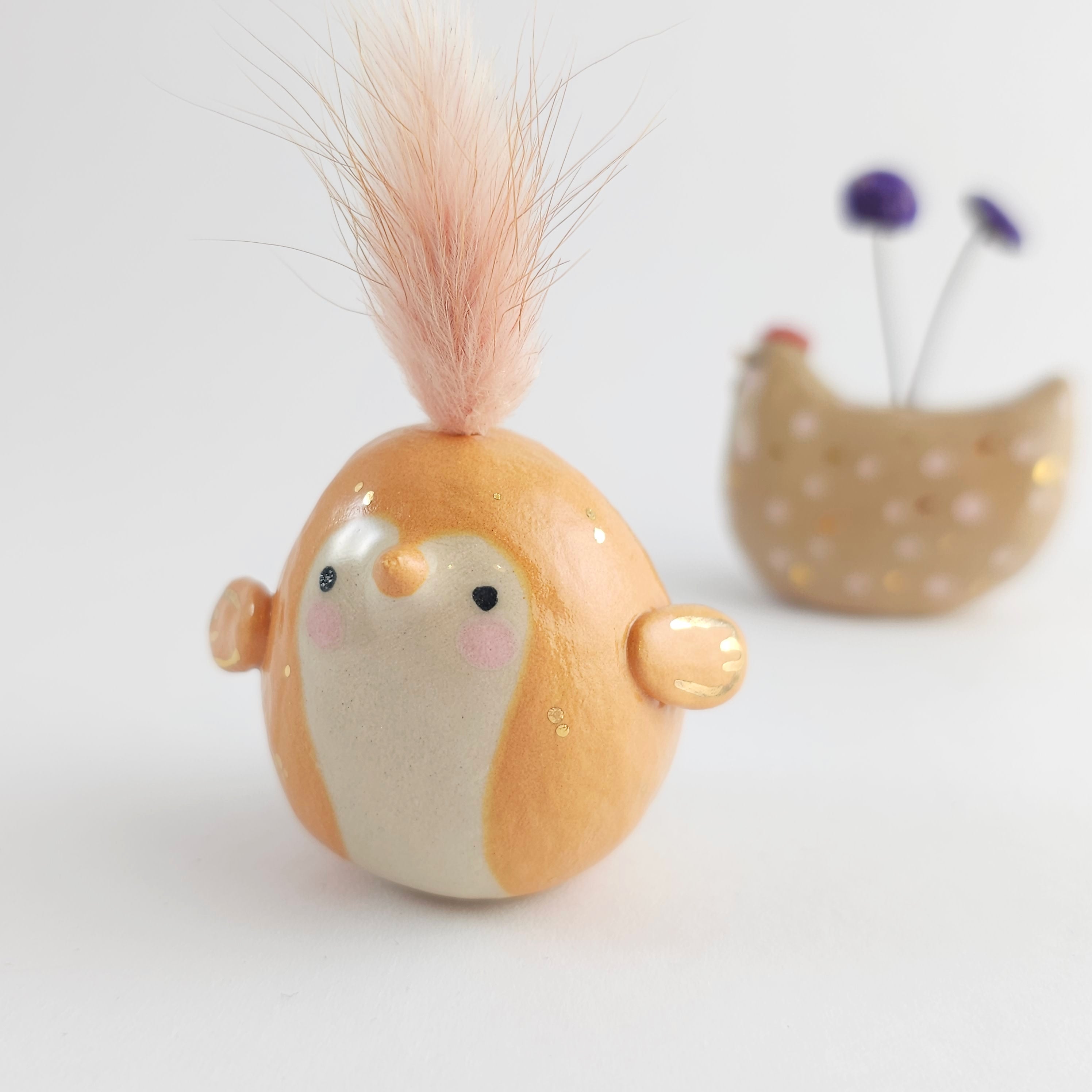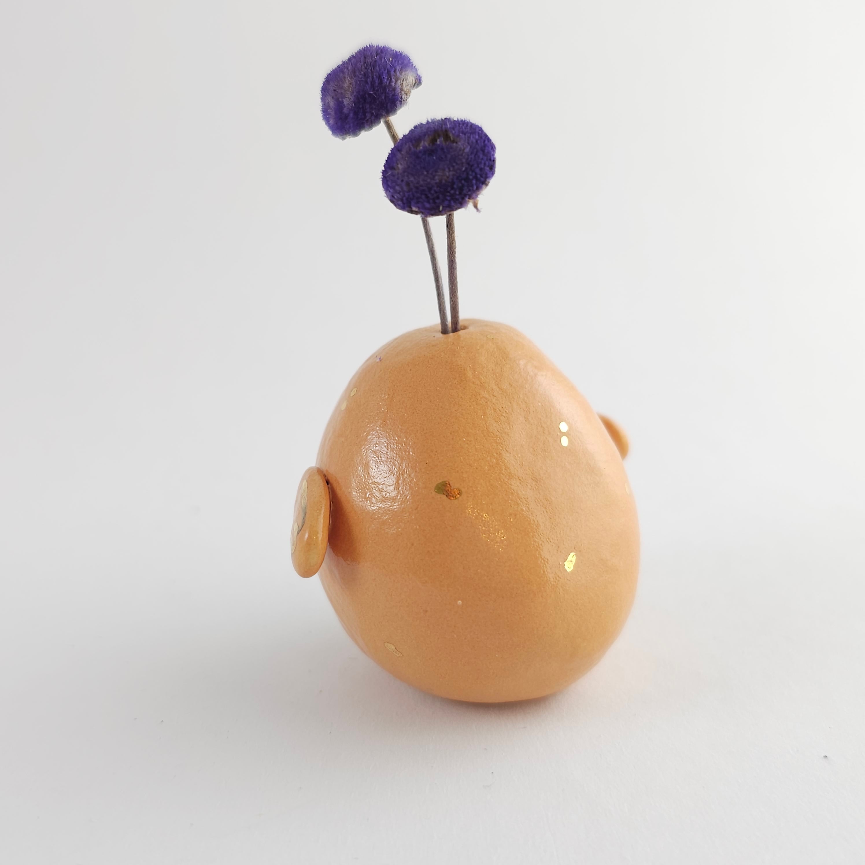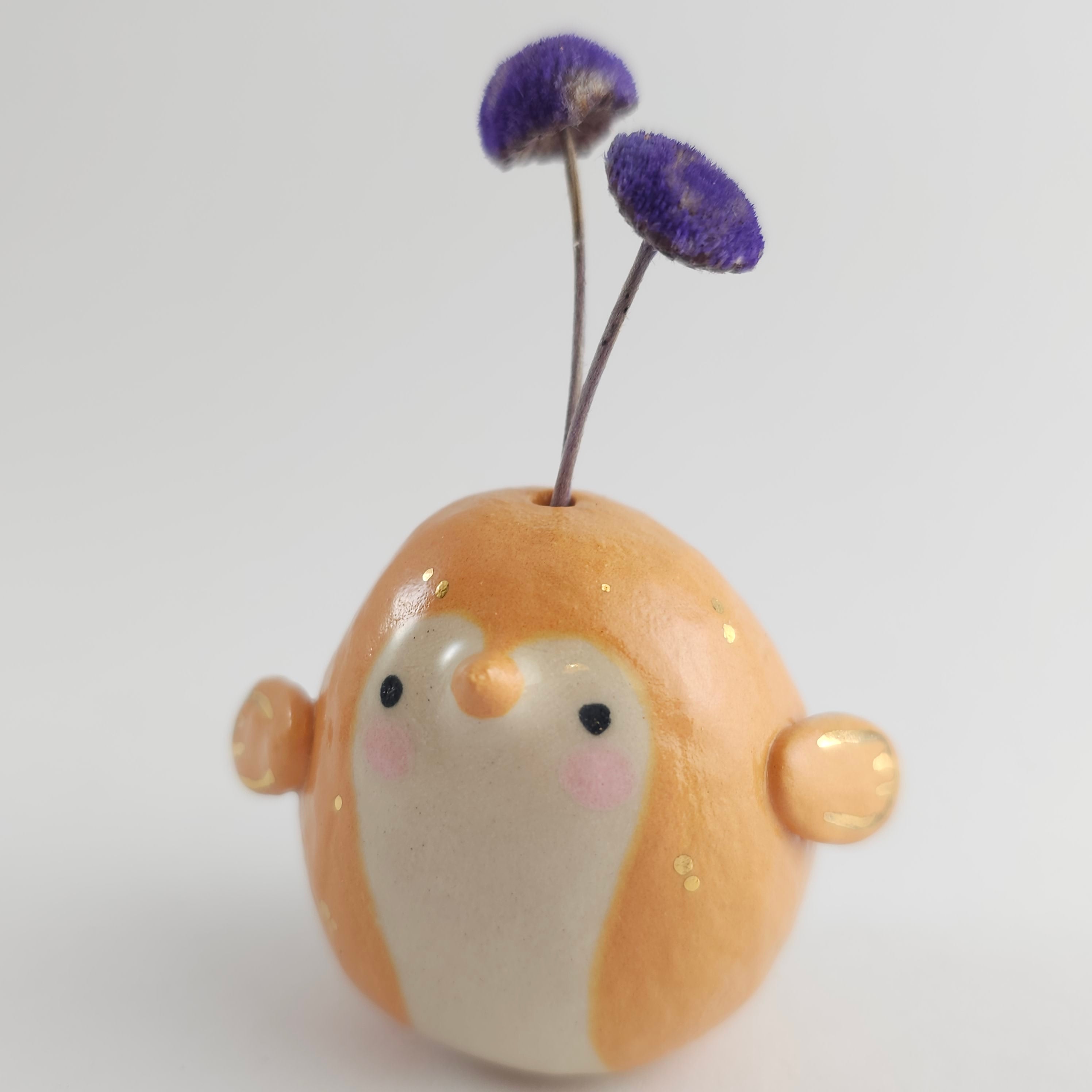 Small, hand built ceramic sculpture with gold luster details