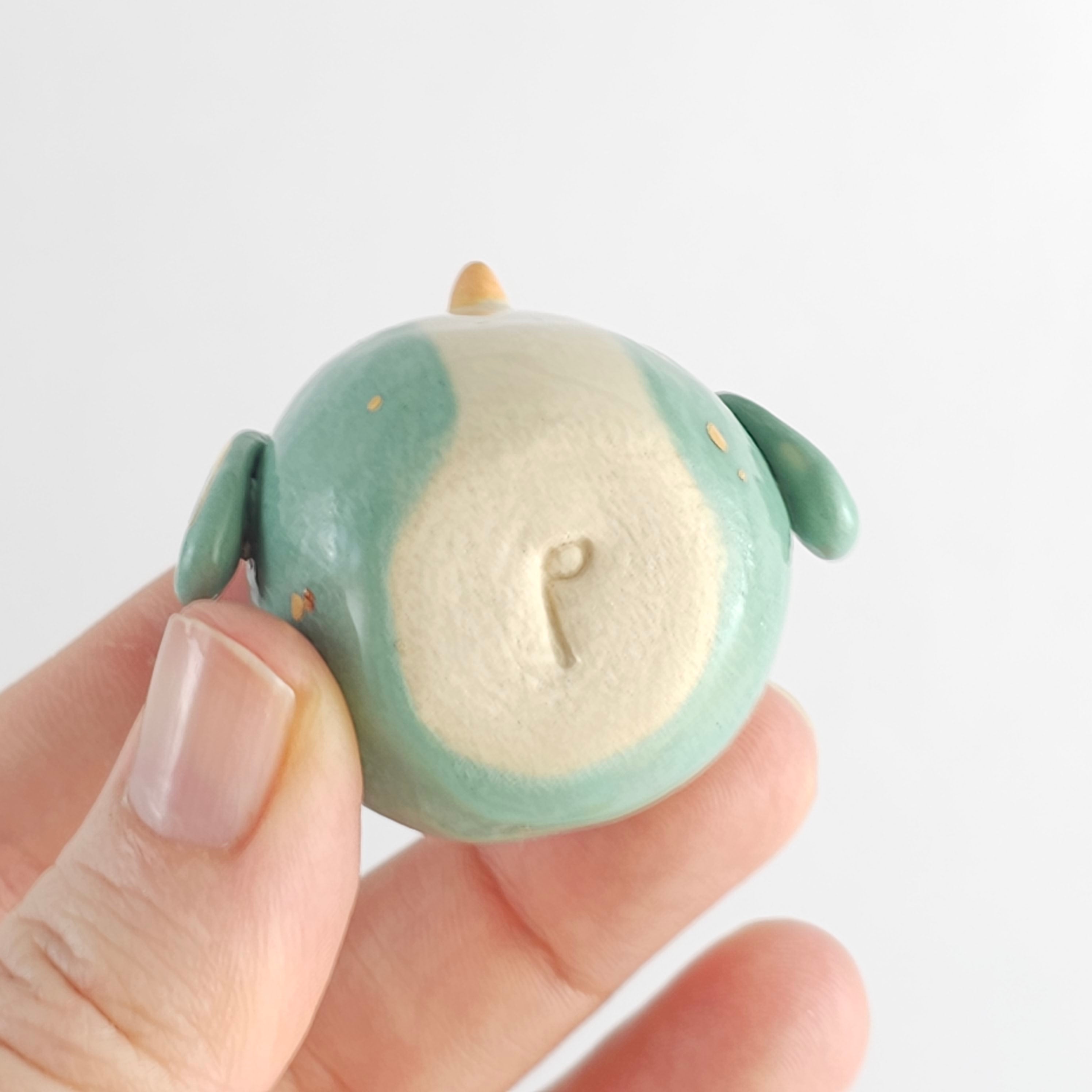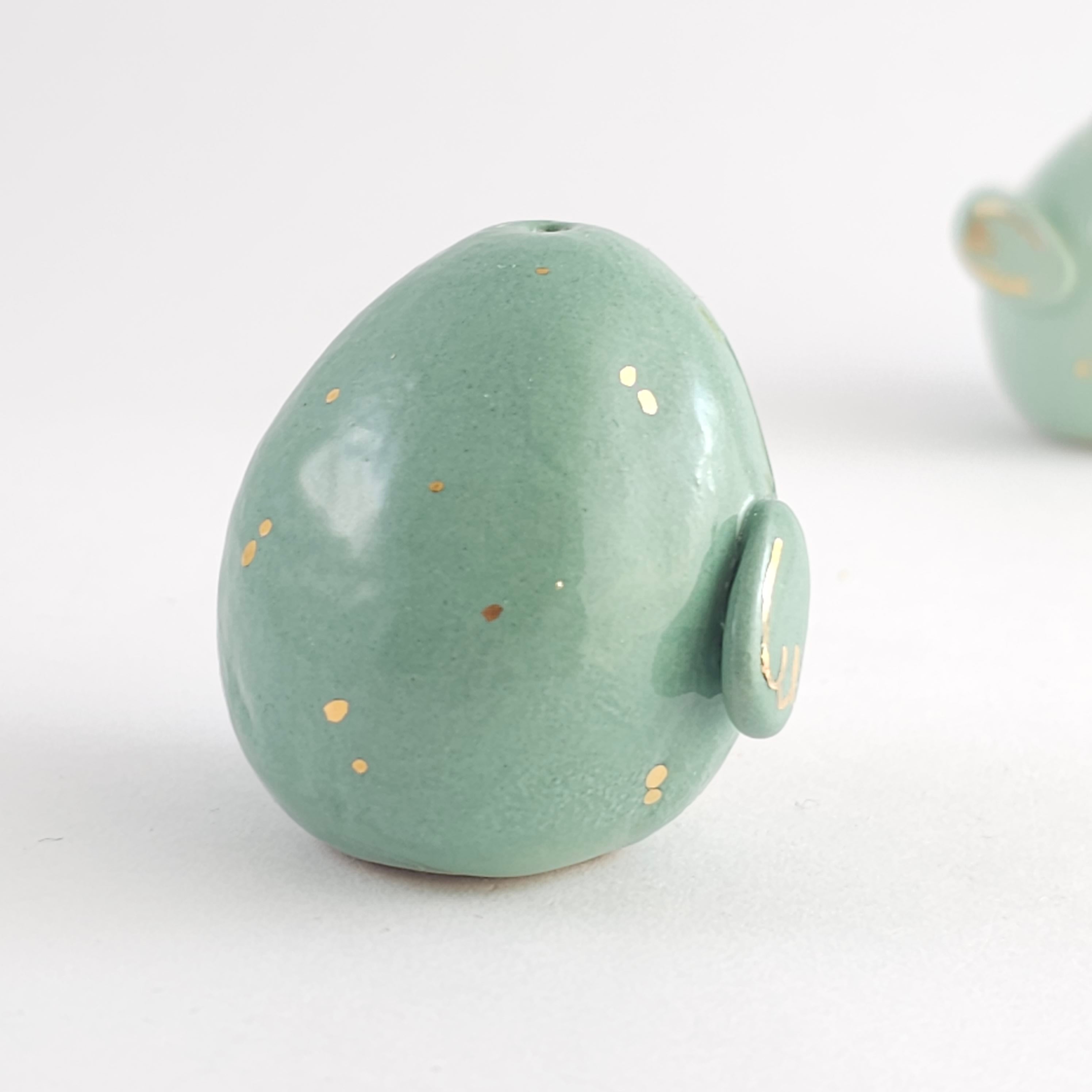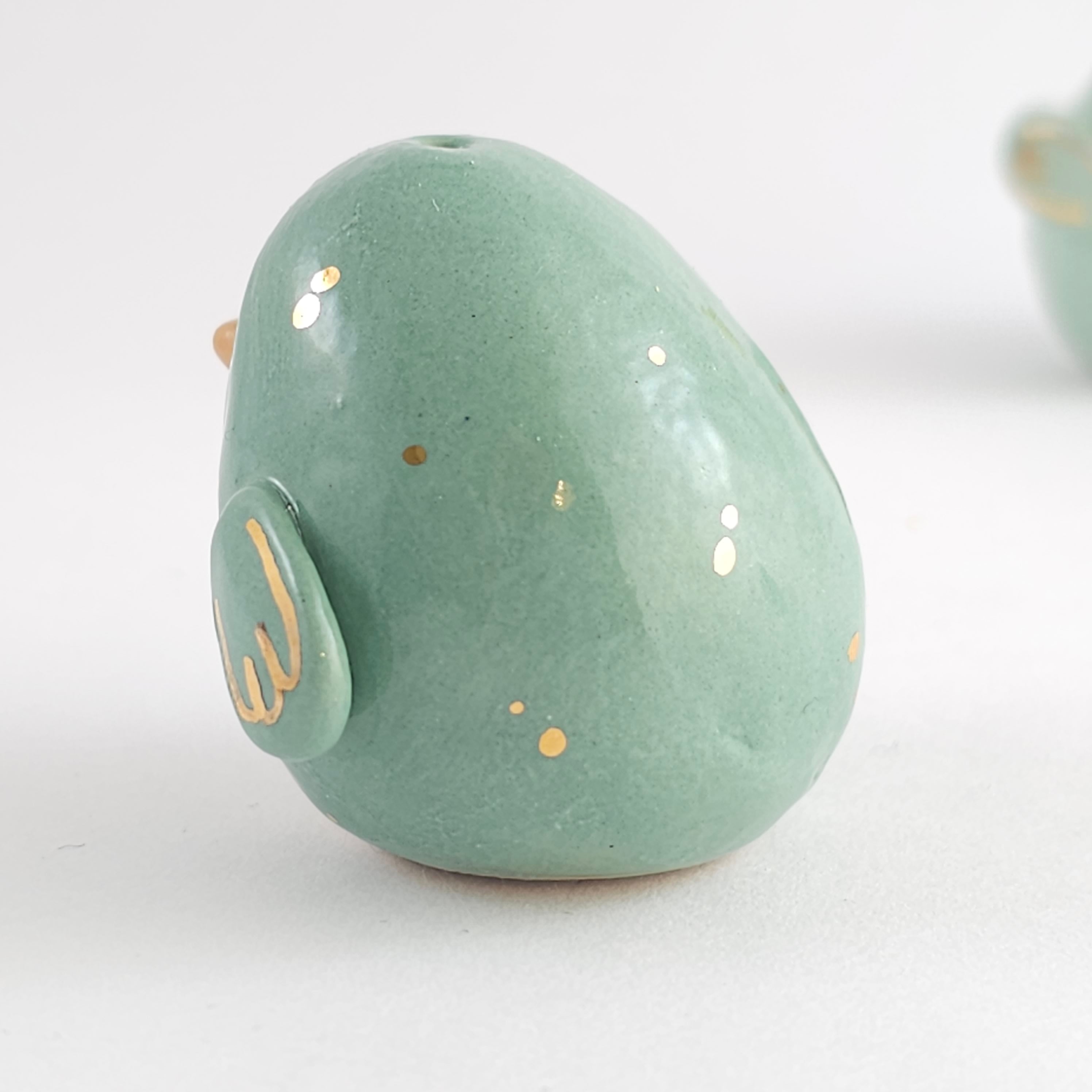 Small, hand built ceramic sculpture with gold luster details