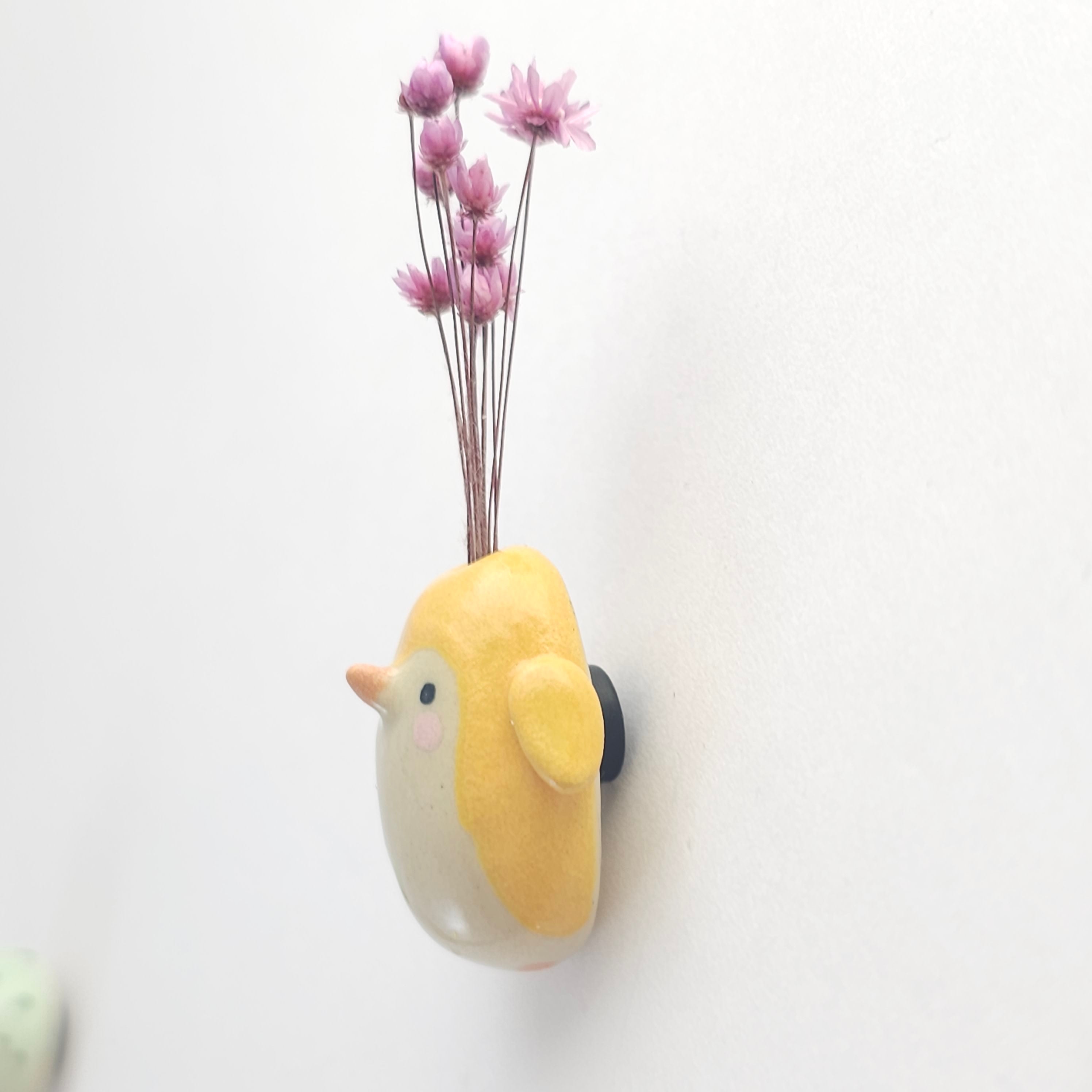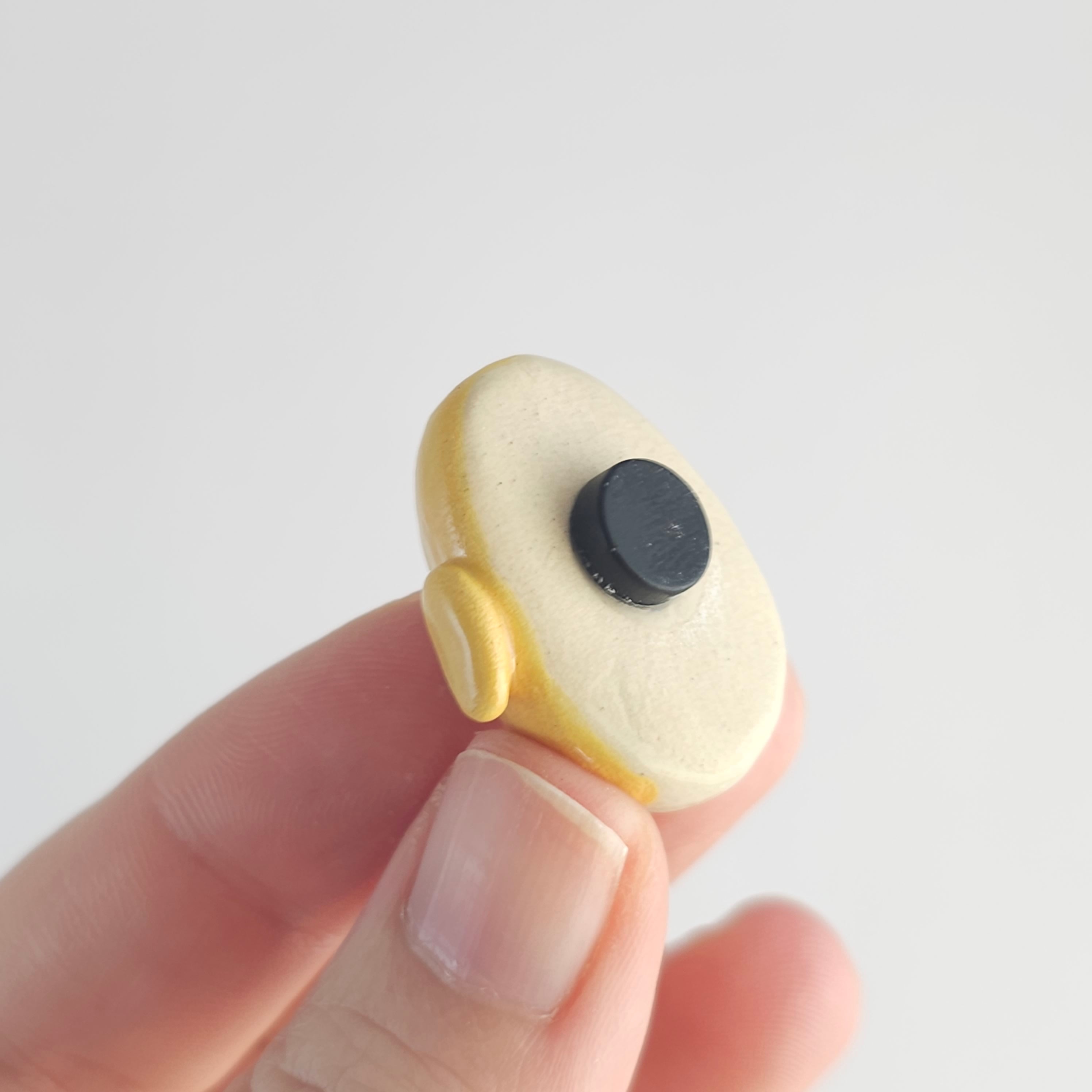 Small, hand built and hand painted ceramic magnet with gold luster details.