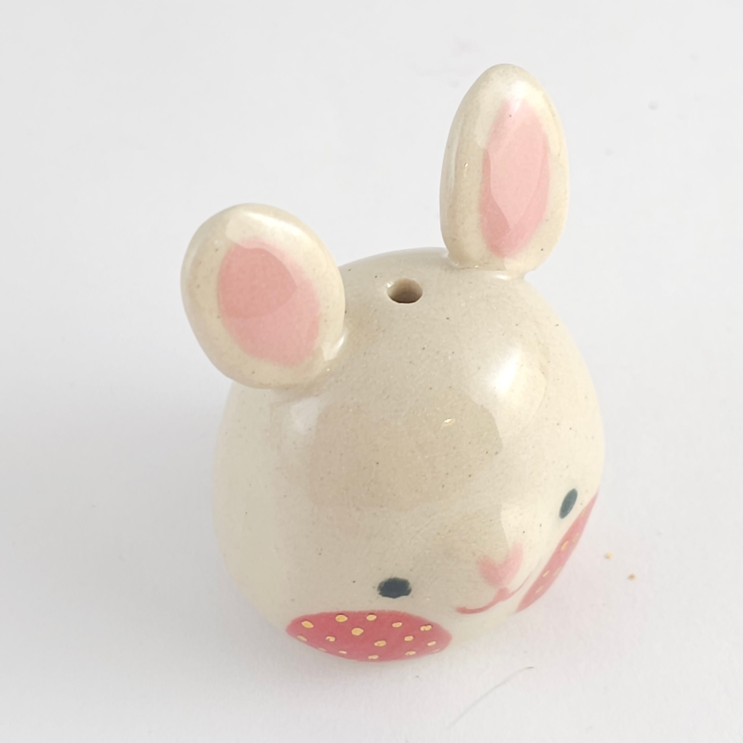 Small, hand built ceramic sculpture. Dipped in transparent glaze and covered with Gold Luster details.