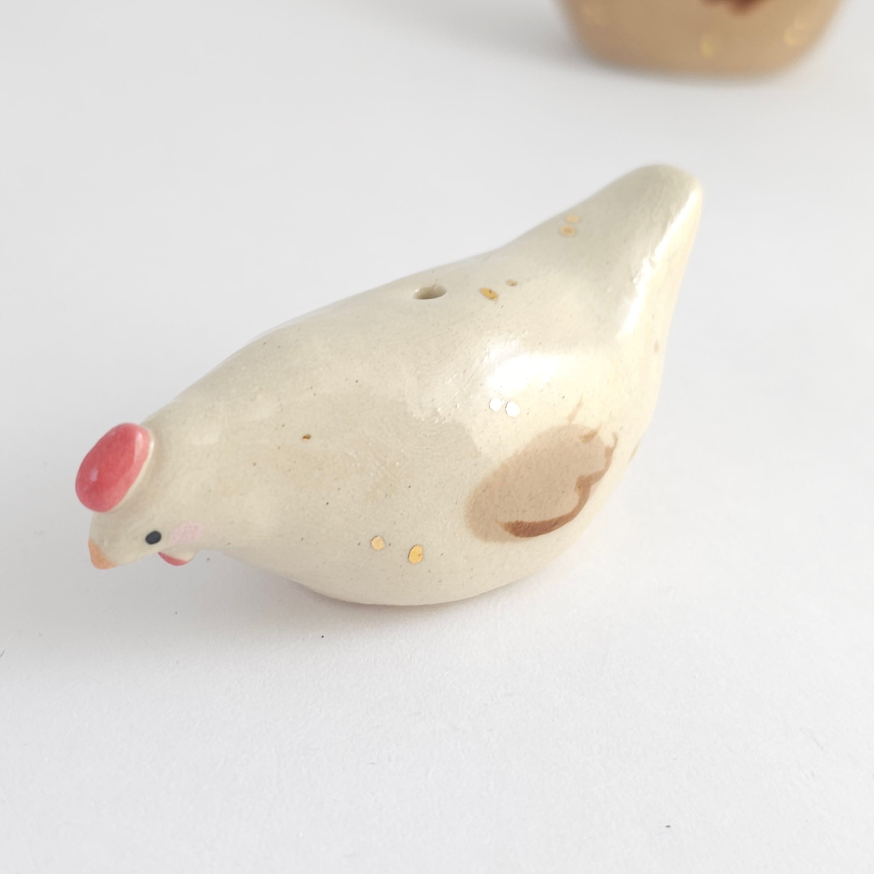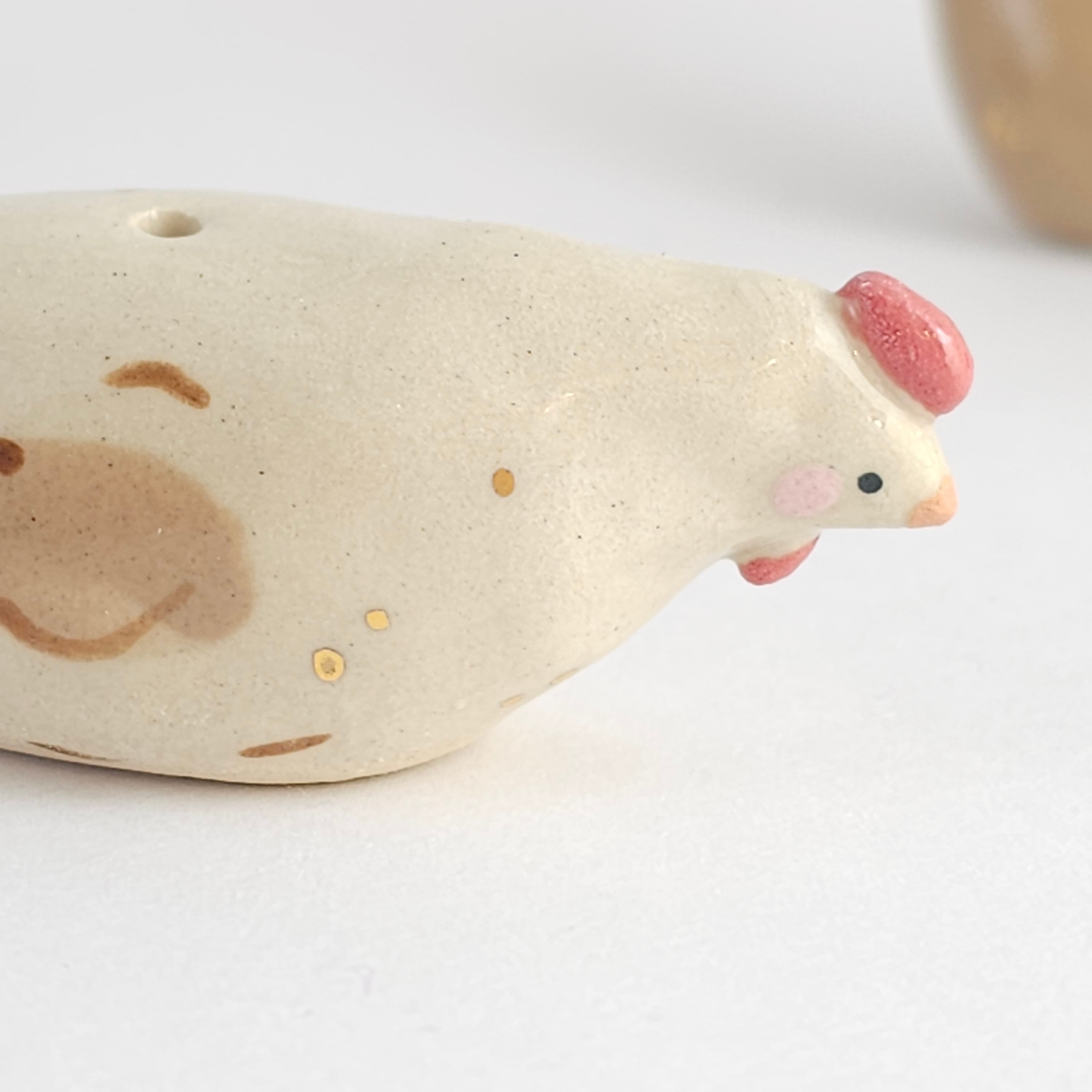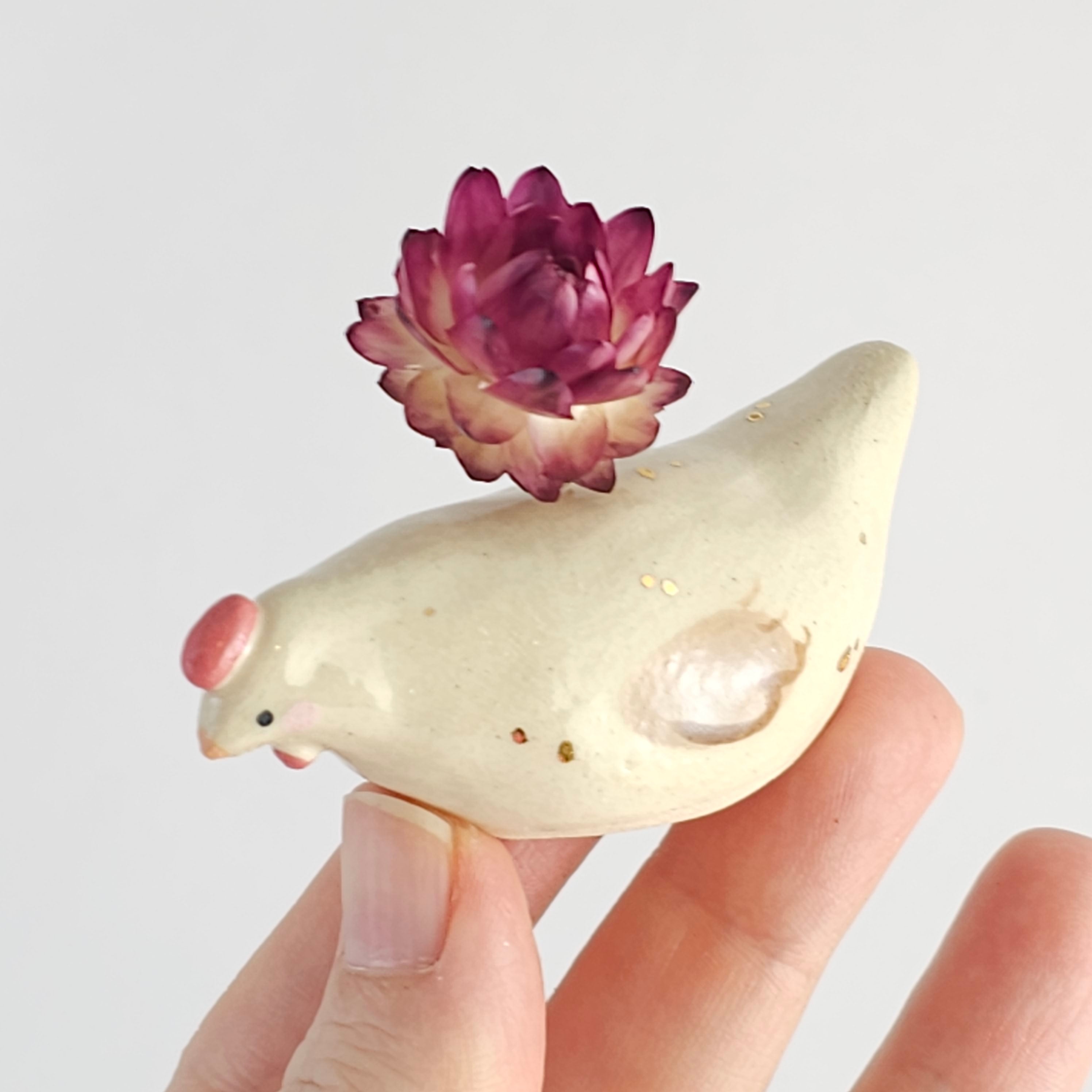 Small, hand built ceramic sculpture. Dipped in transparent glaze and covered with 24-carat Gold Luster details. Has a small hole on top to carry dry flowers.