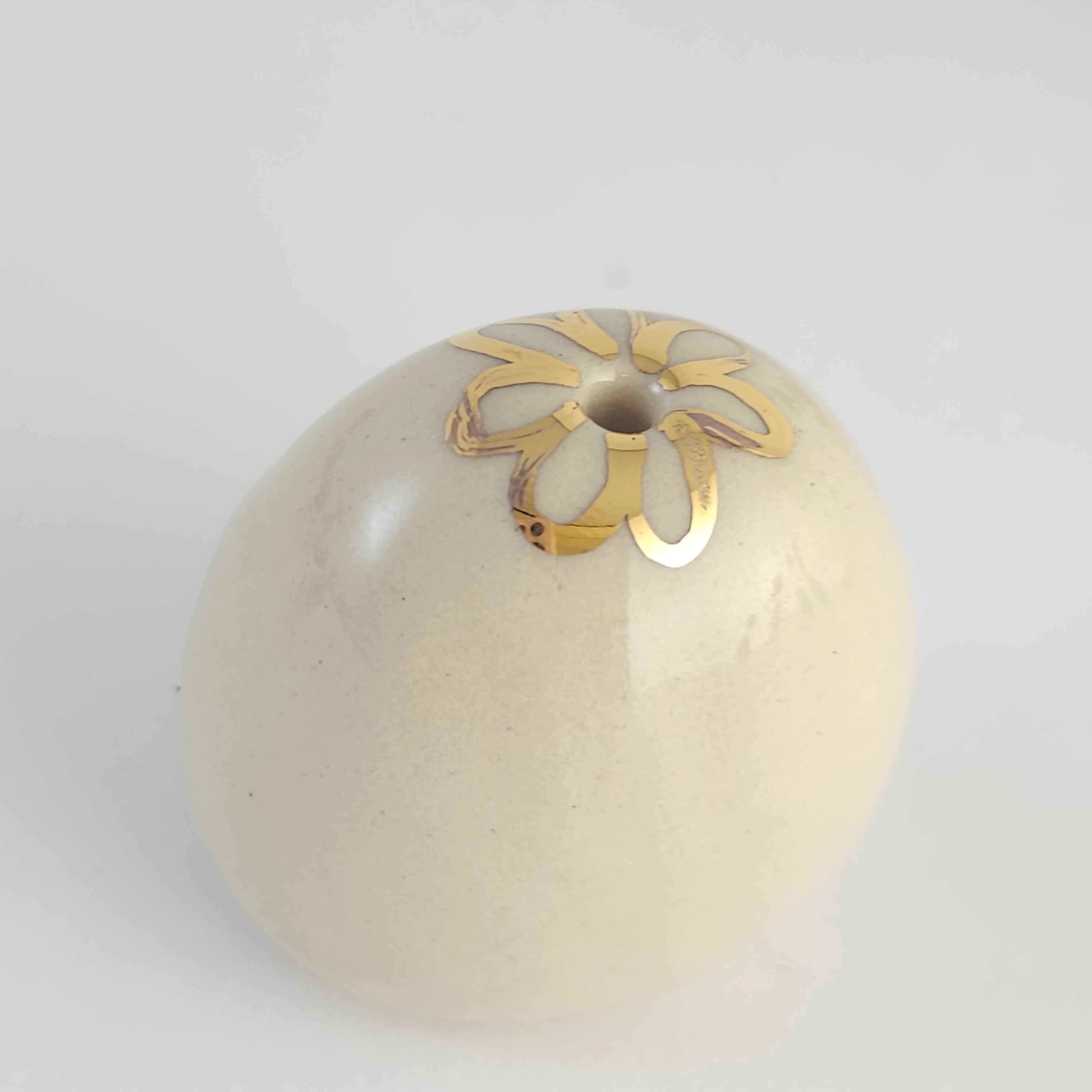 Ceramics from the Golden Dots Collection are painted with luster details when they are finished, and then fired for a third time. The high temperatures in the kiln burn the luster and leave a bright, 24-carat gold layer on top of the glaze