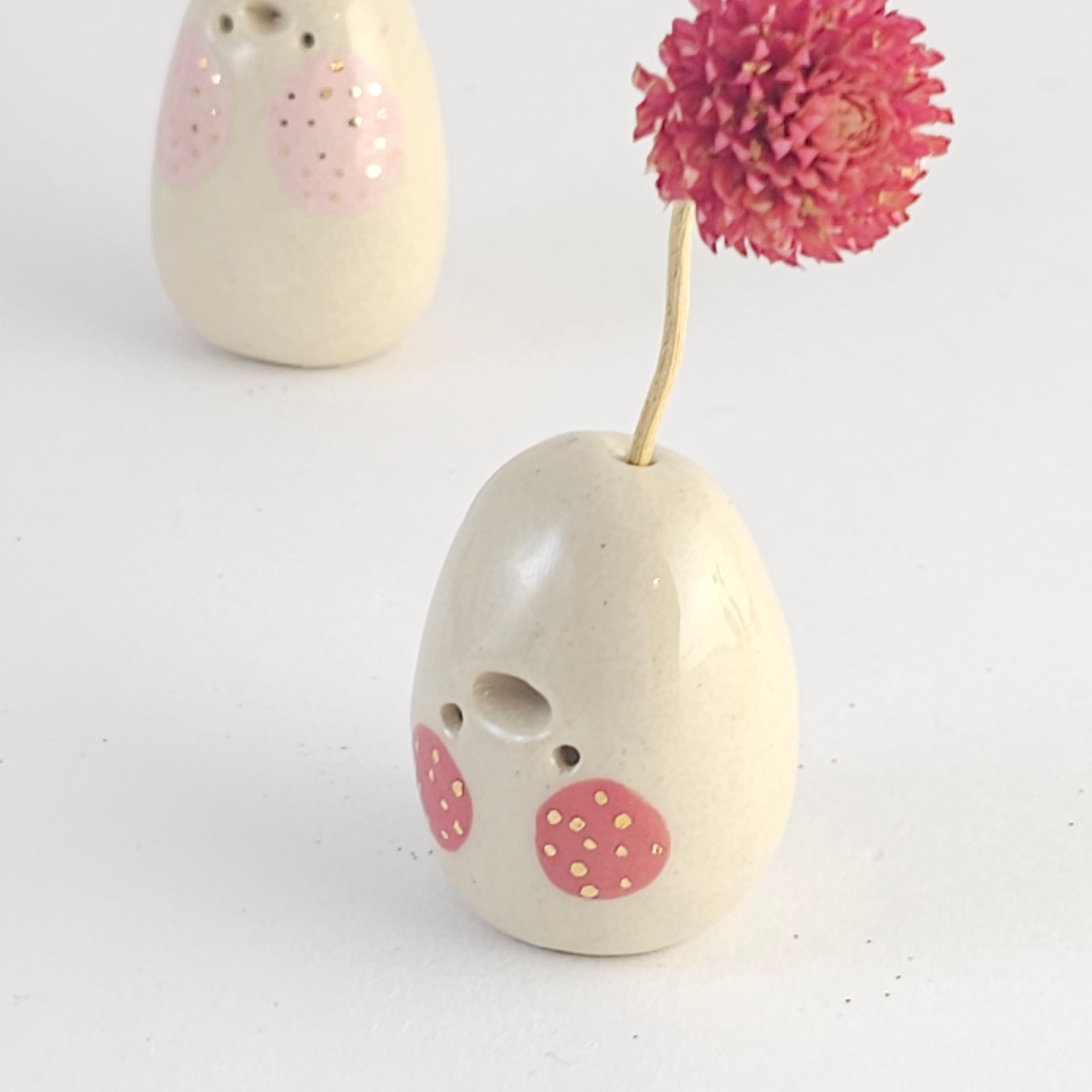 Ceramics from the Golden Dots Collection are painted with luster details when they are finished, and then fired for a third time. The high temperatures in the kiln burn the luster and leave a bright, 24-carat gold layer on top of the glaze
