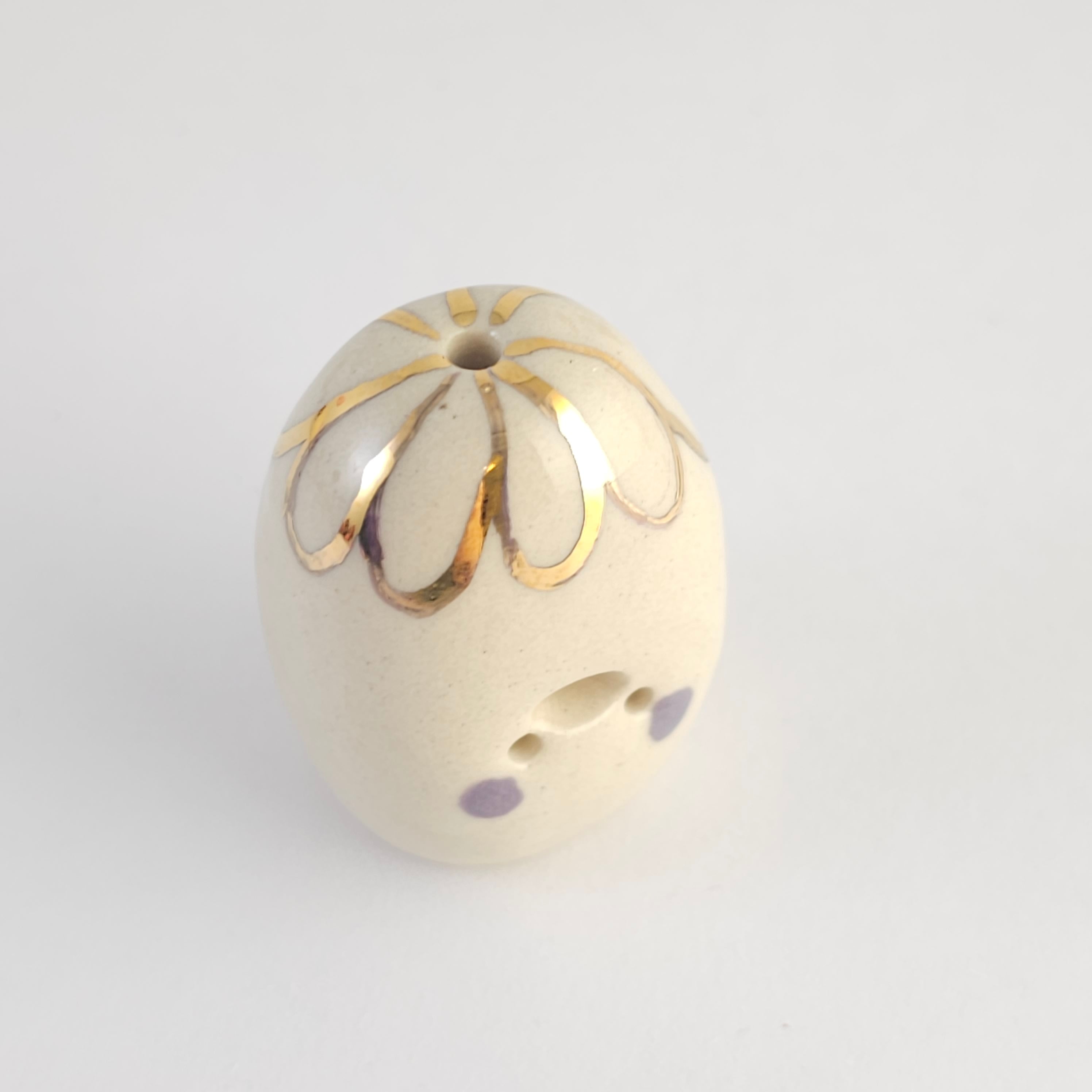 Ceramics from the Golden Dots Collection are painted with luster details when they are finished, and then fired for a third time. The high temperatures in the kiln burn the luster and leave a bright, 24-carat gold layer on top of the glaze
