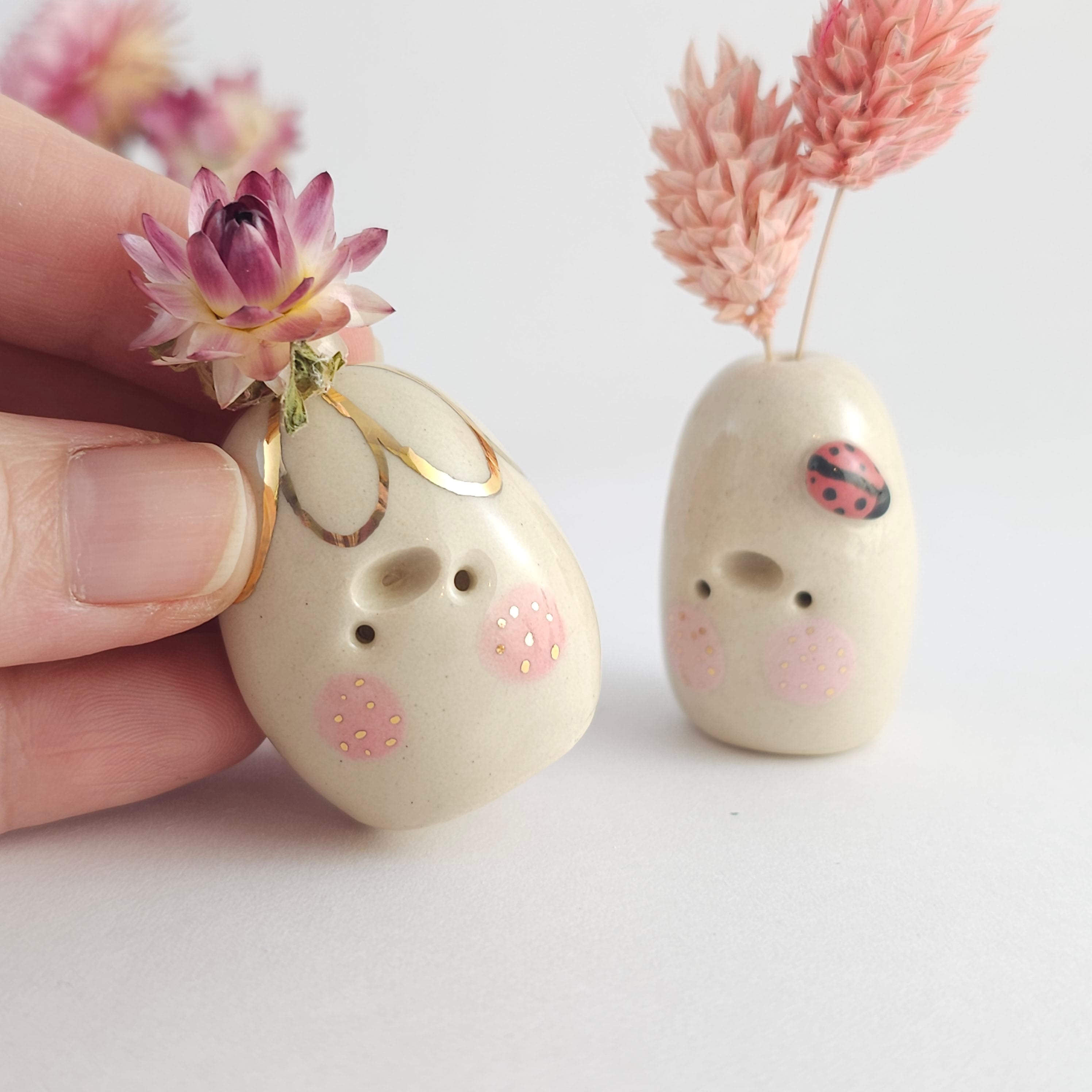 Lucky potatoes are small, handmade sculptures, made to bring luck and cheer to whoever owns them. Each potato includes an illustrated card with a small description (see image), making them great pieces to gift (or to keep to yourself:)
