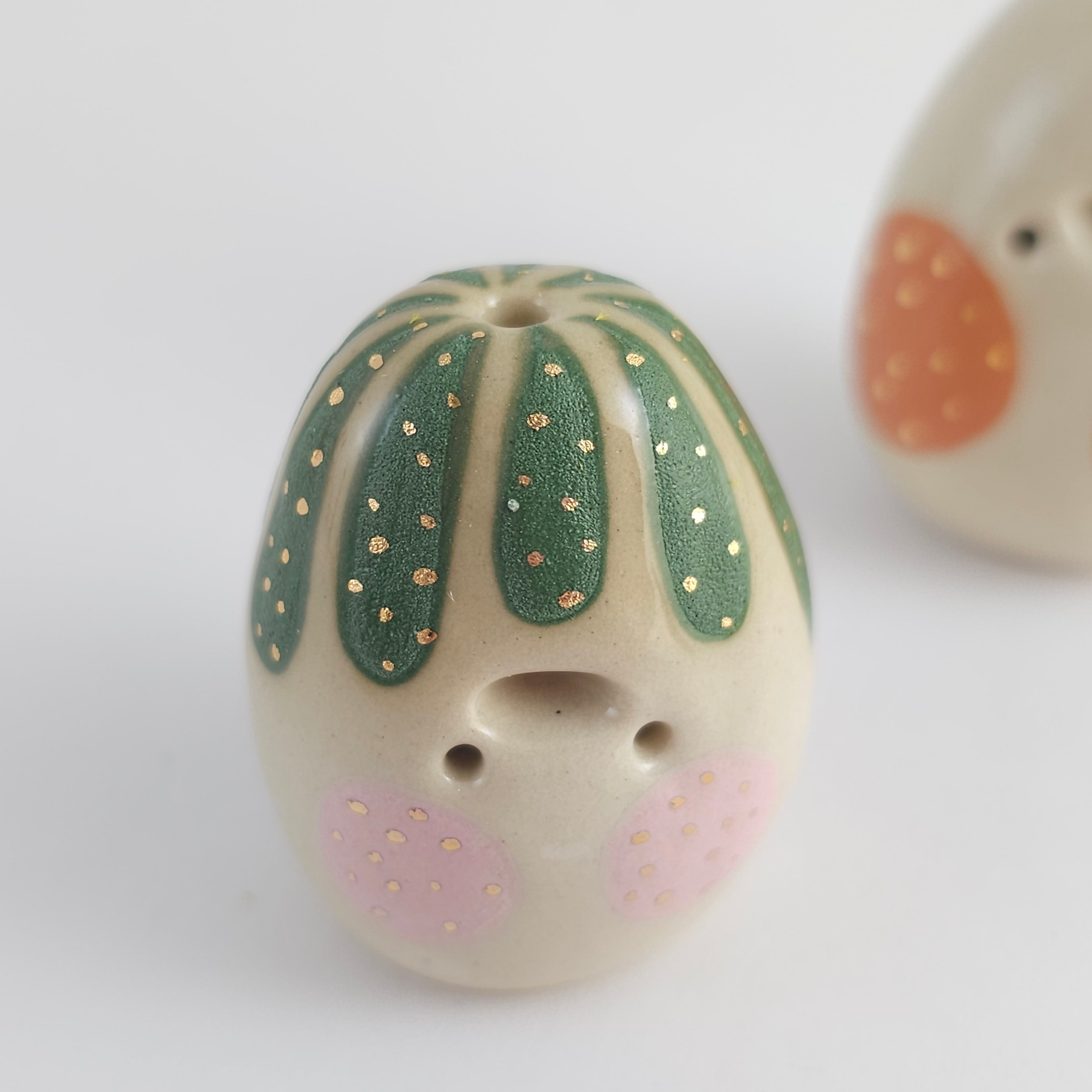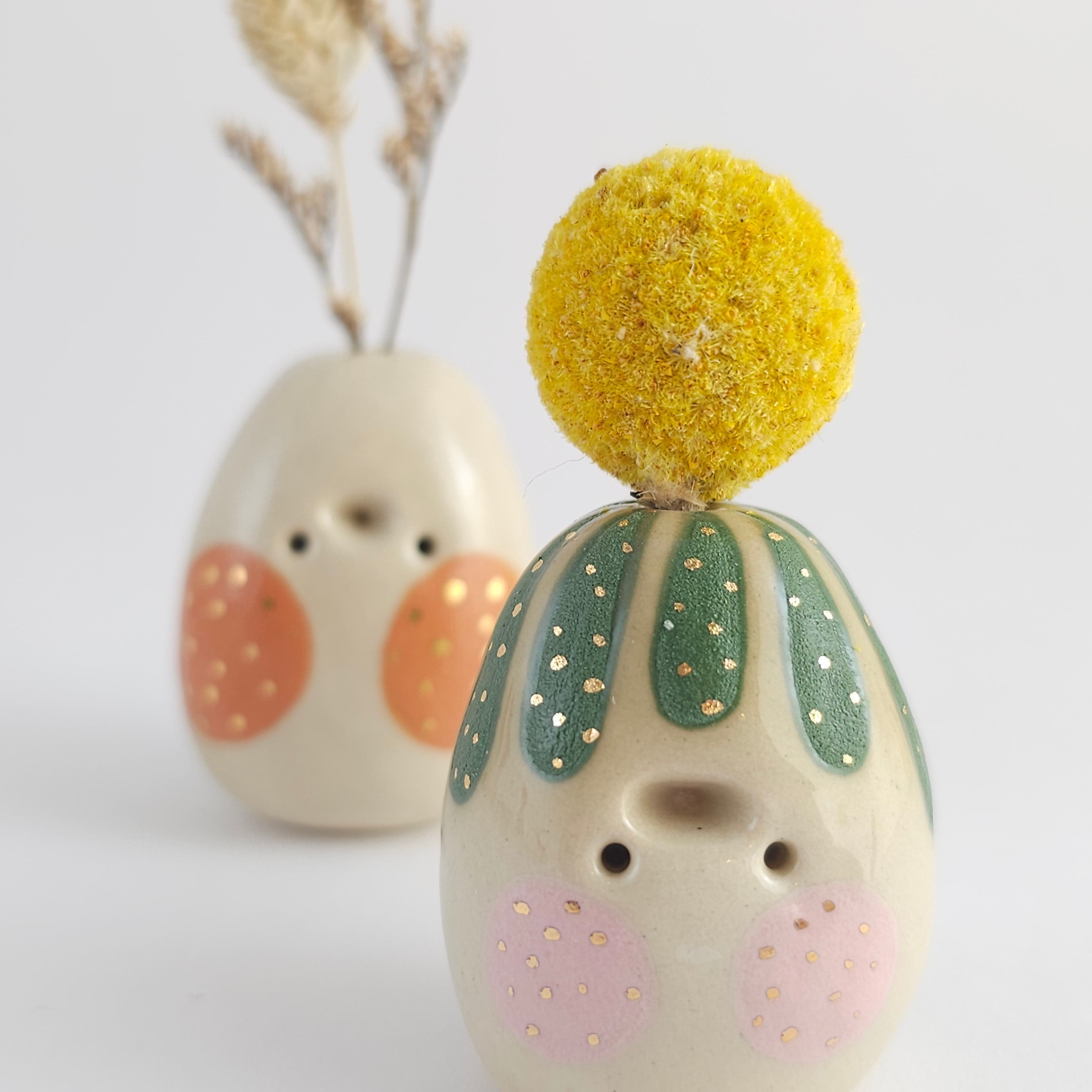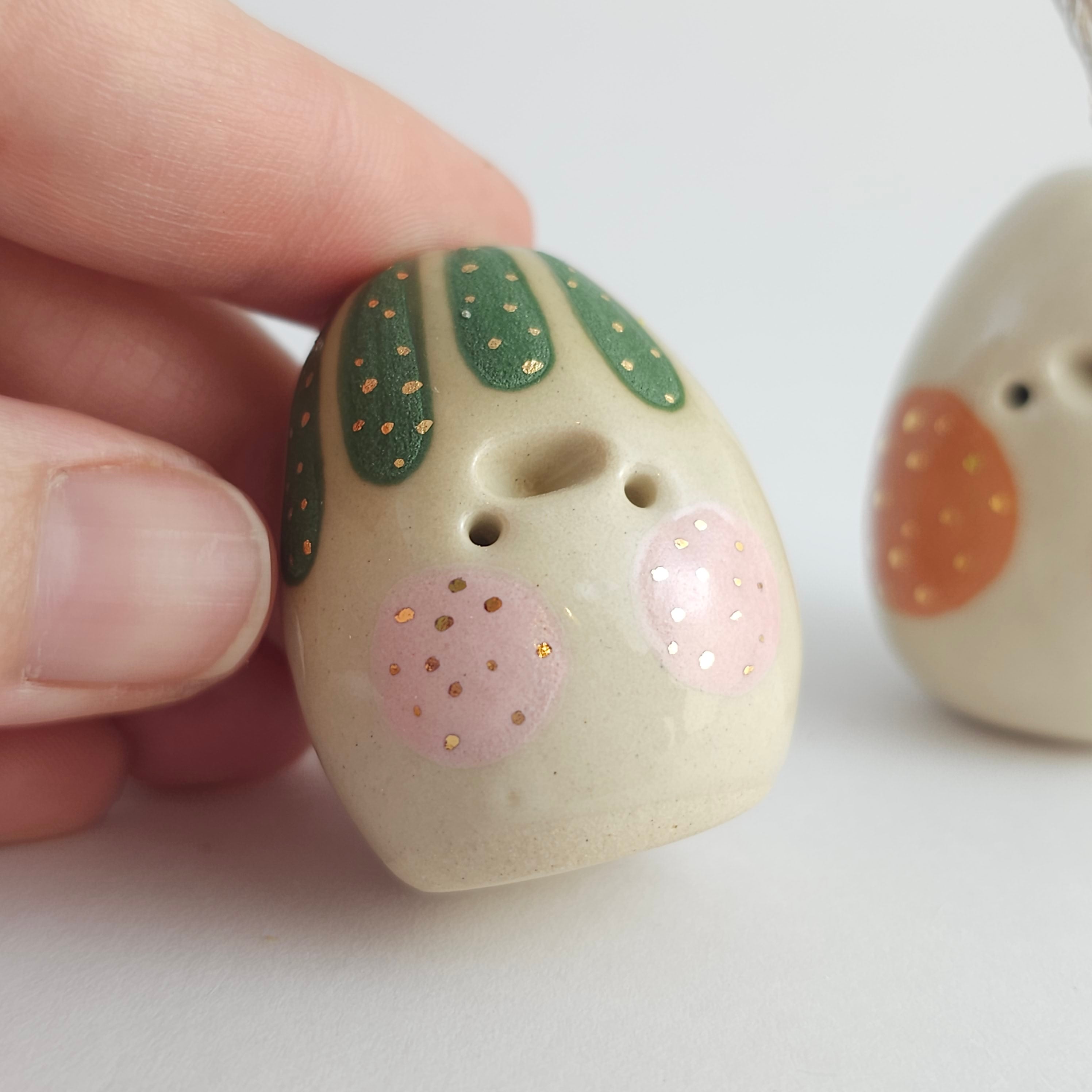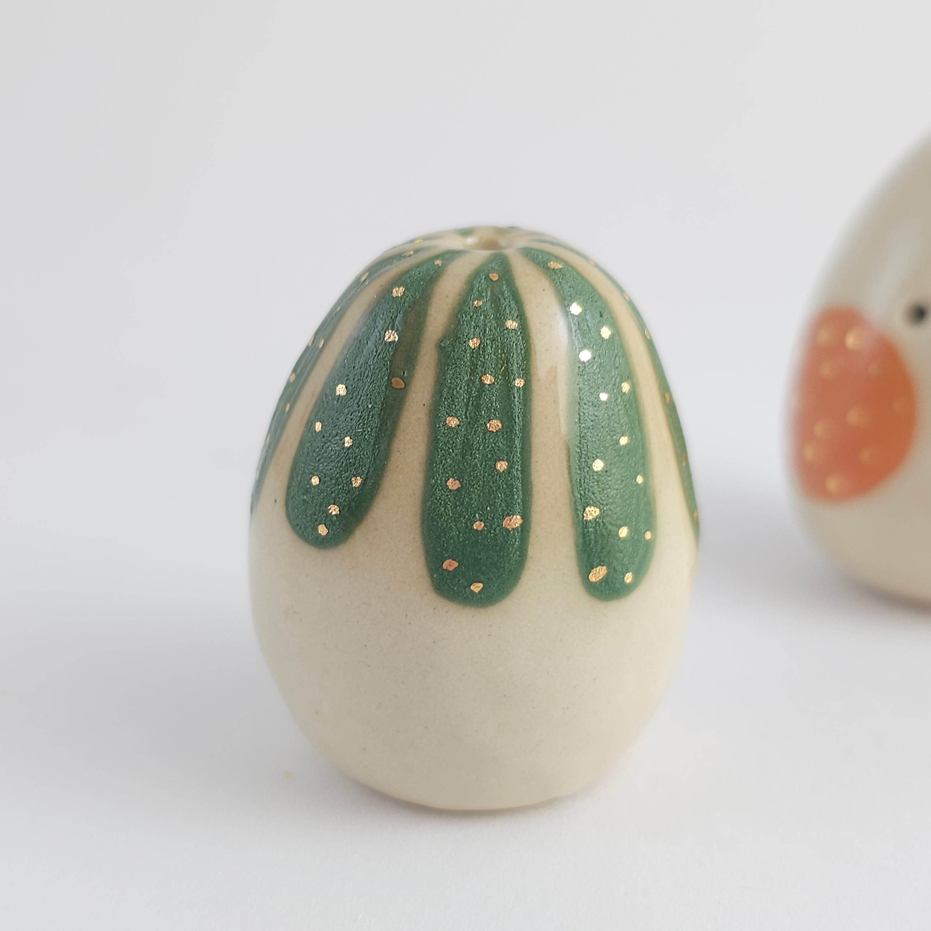 Small, hand built ceramic sculpture with 24-carat gold luster details