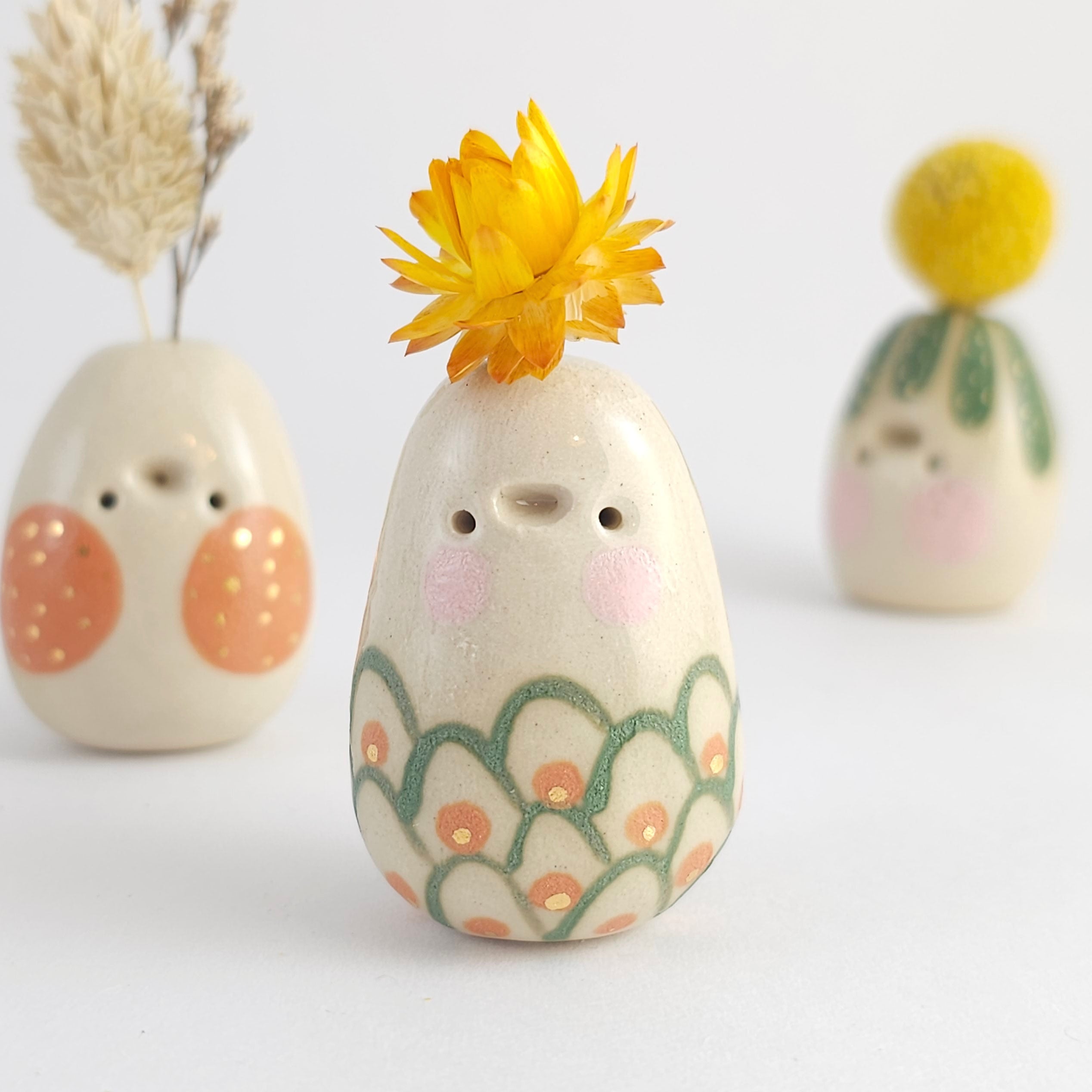 Small, hand built ceramic sculpture with 24-carat gold luster details