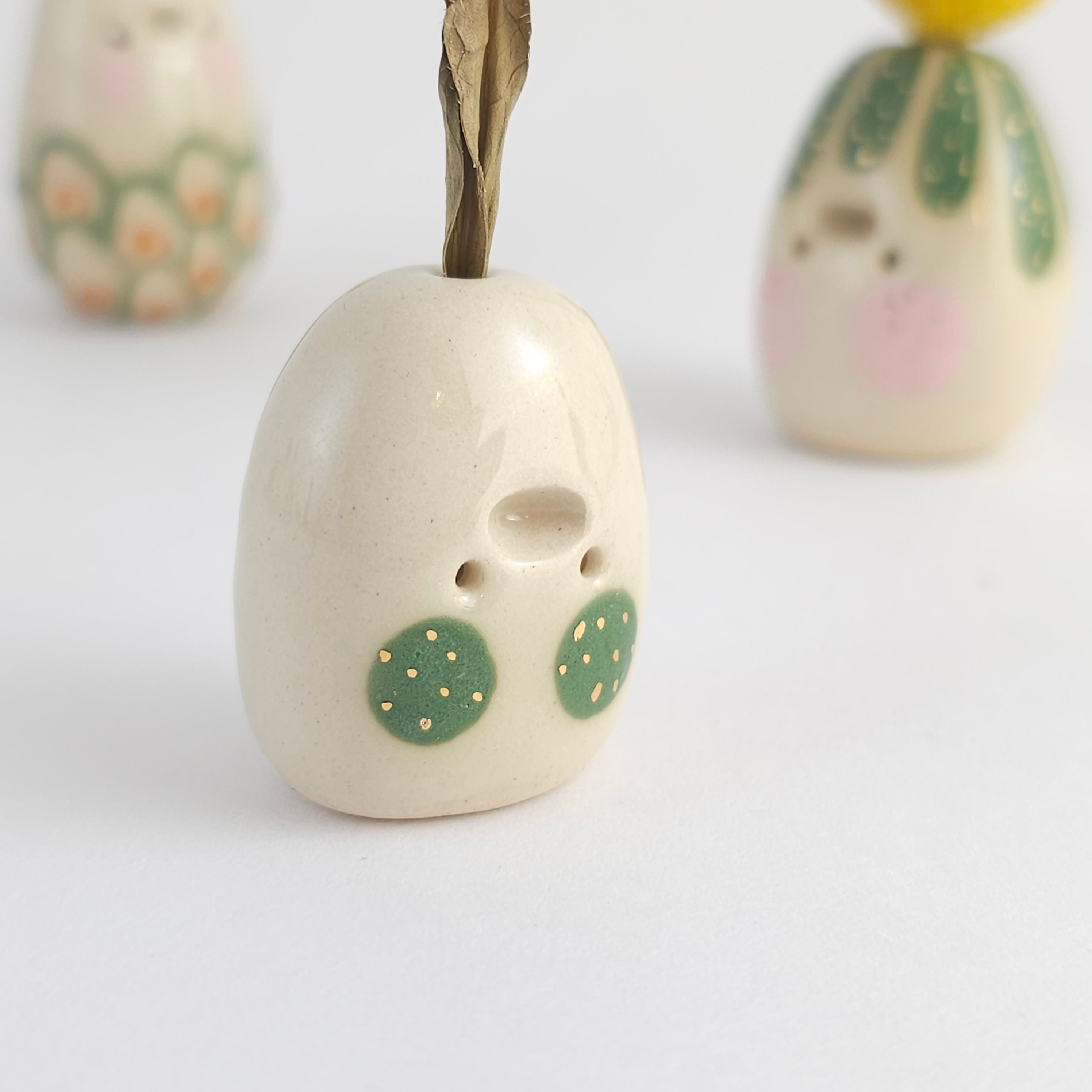Small, hand built ceramic sculpture with 24-carat gold luster details