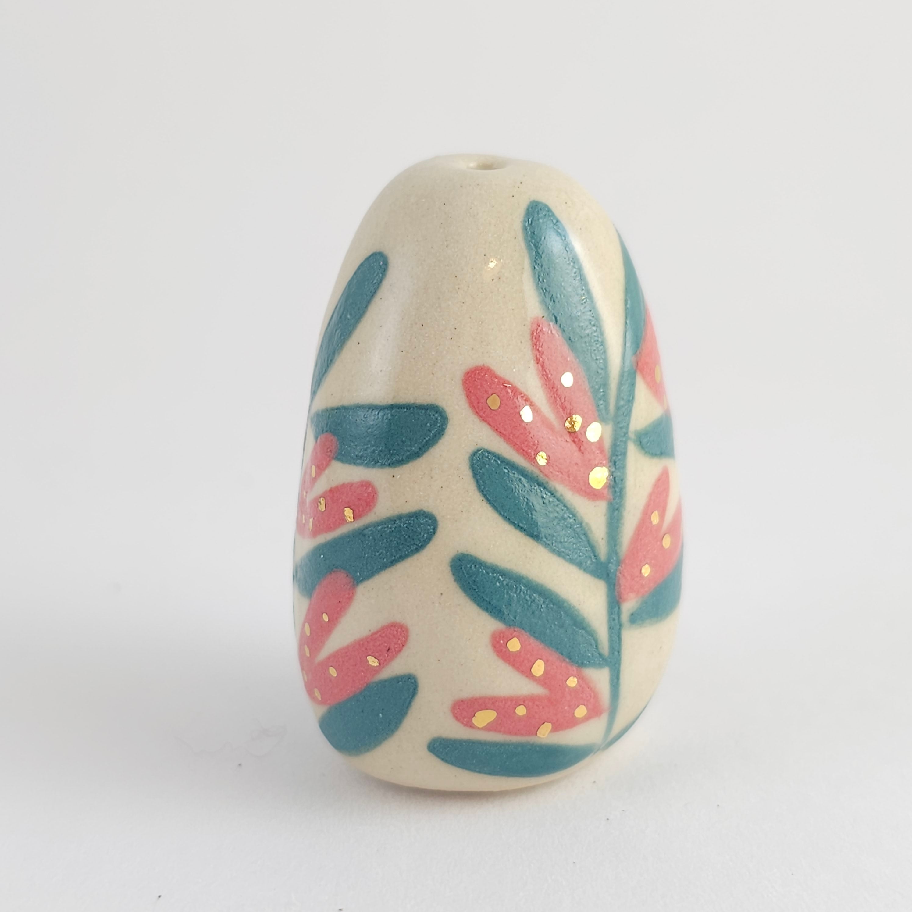 Small, hand built ceramic sculpture with 24-carat gold luster details