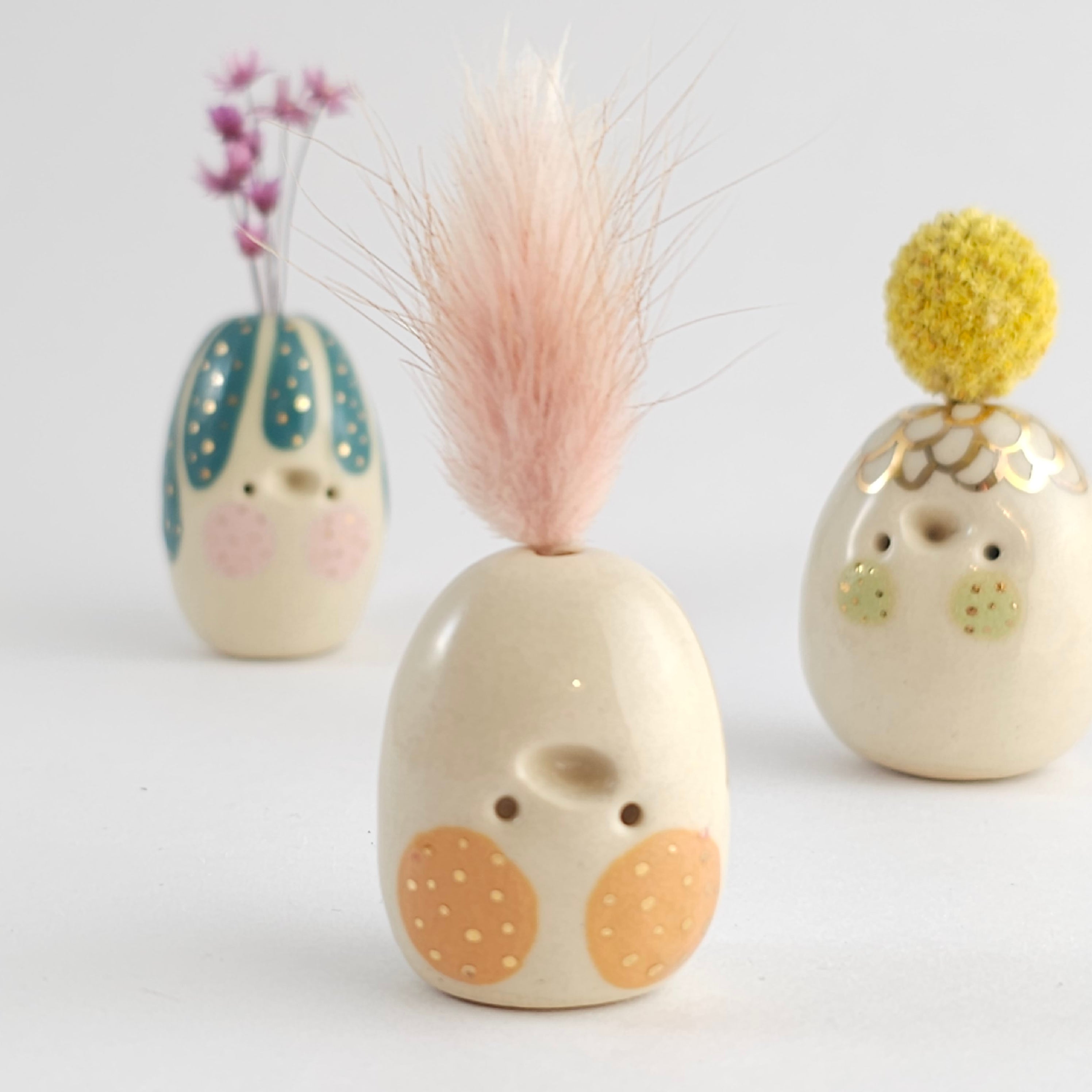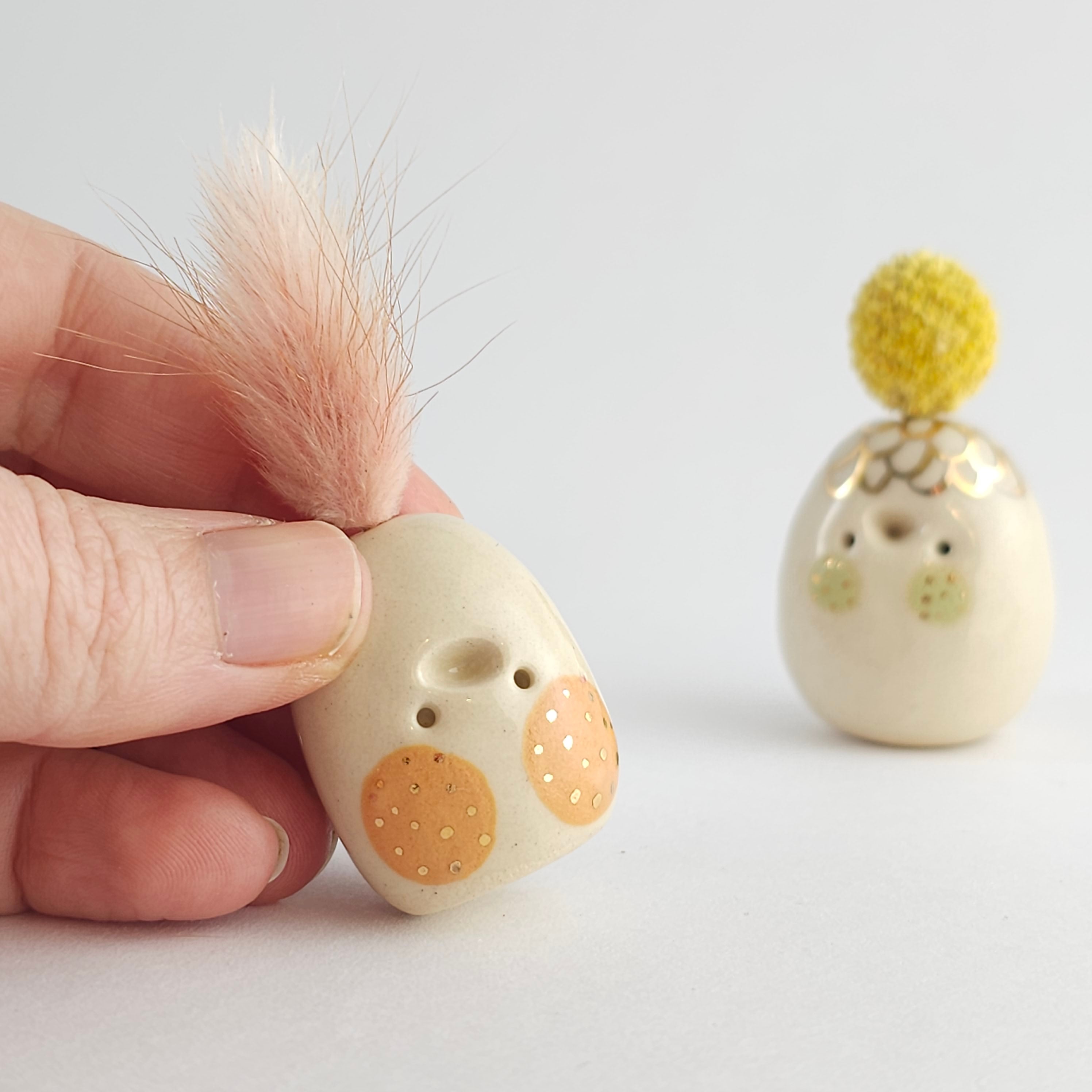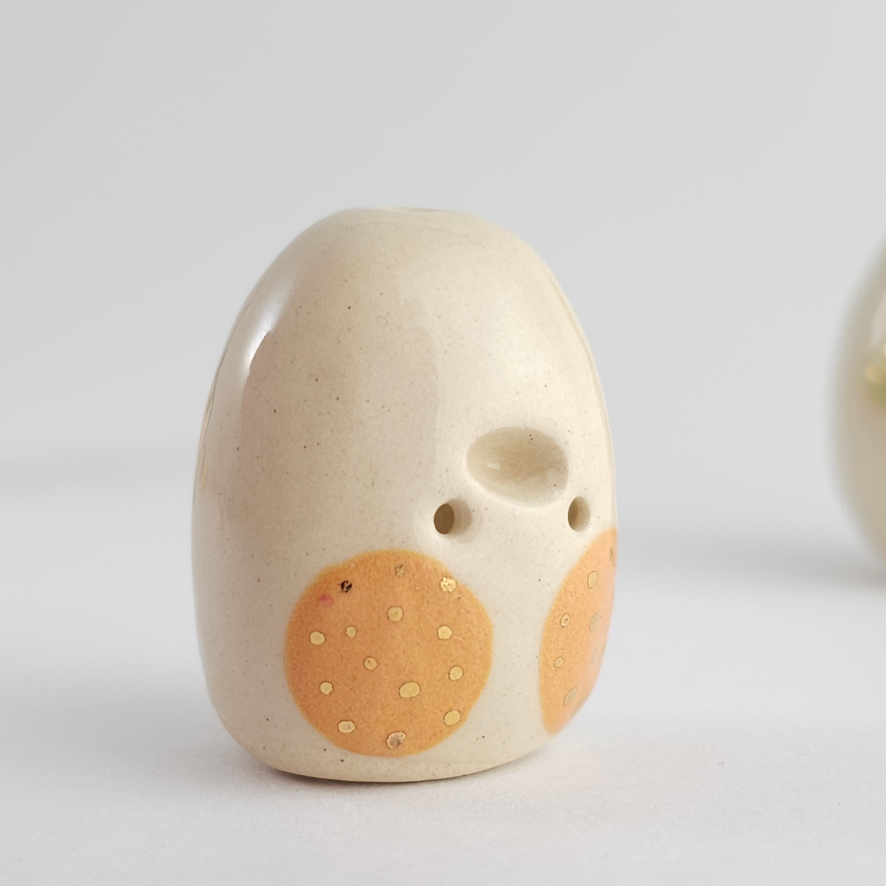 Small, hand built ceramic sculpture with 24-carat gold luster details