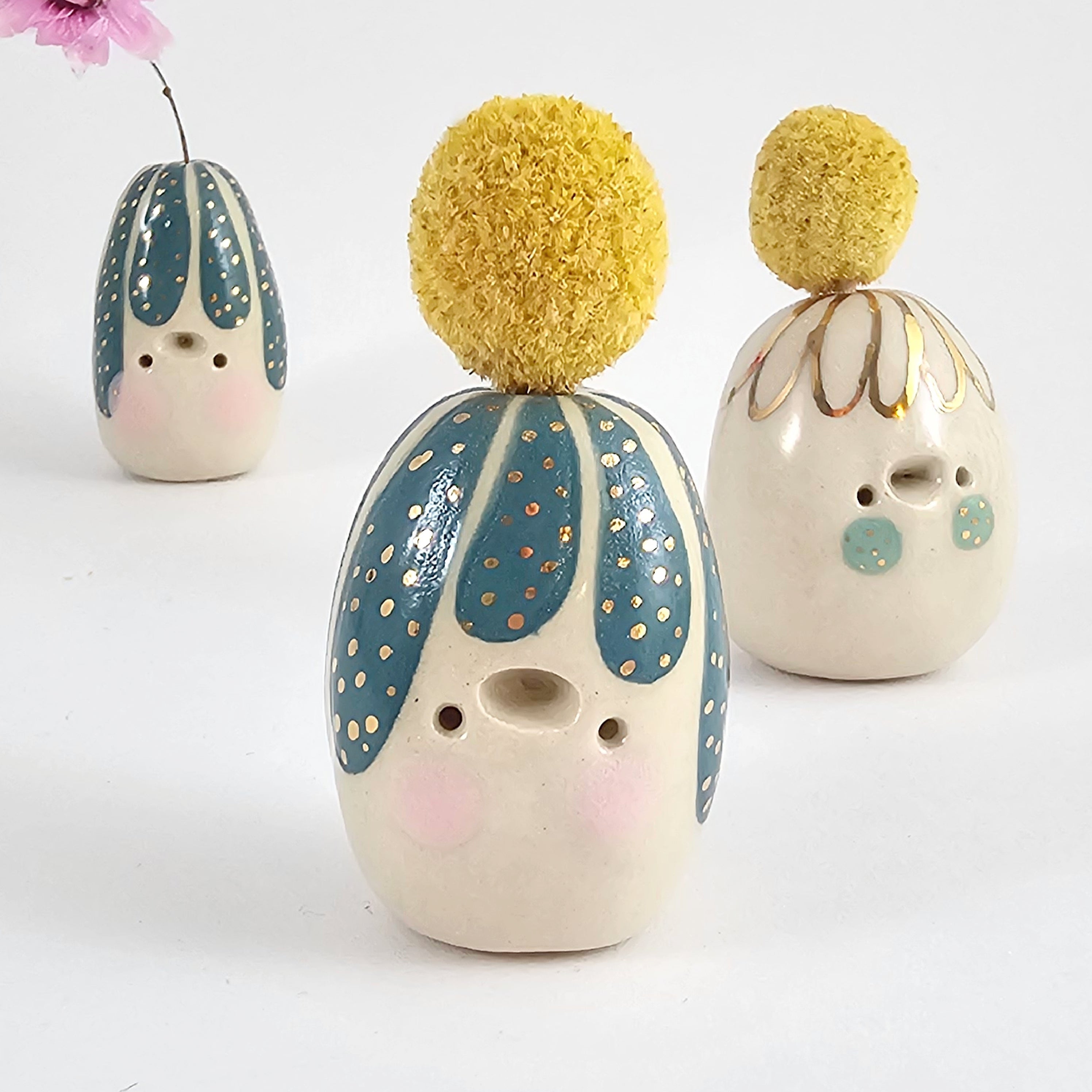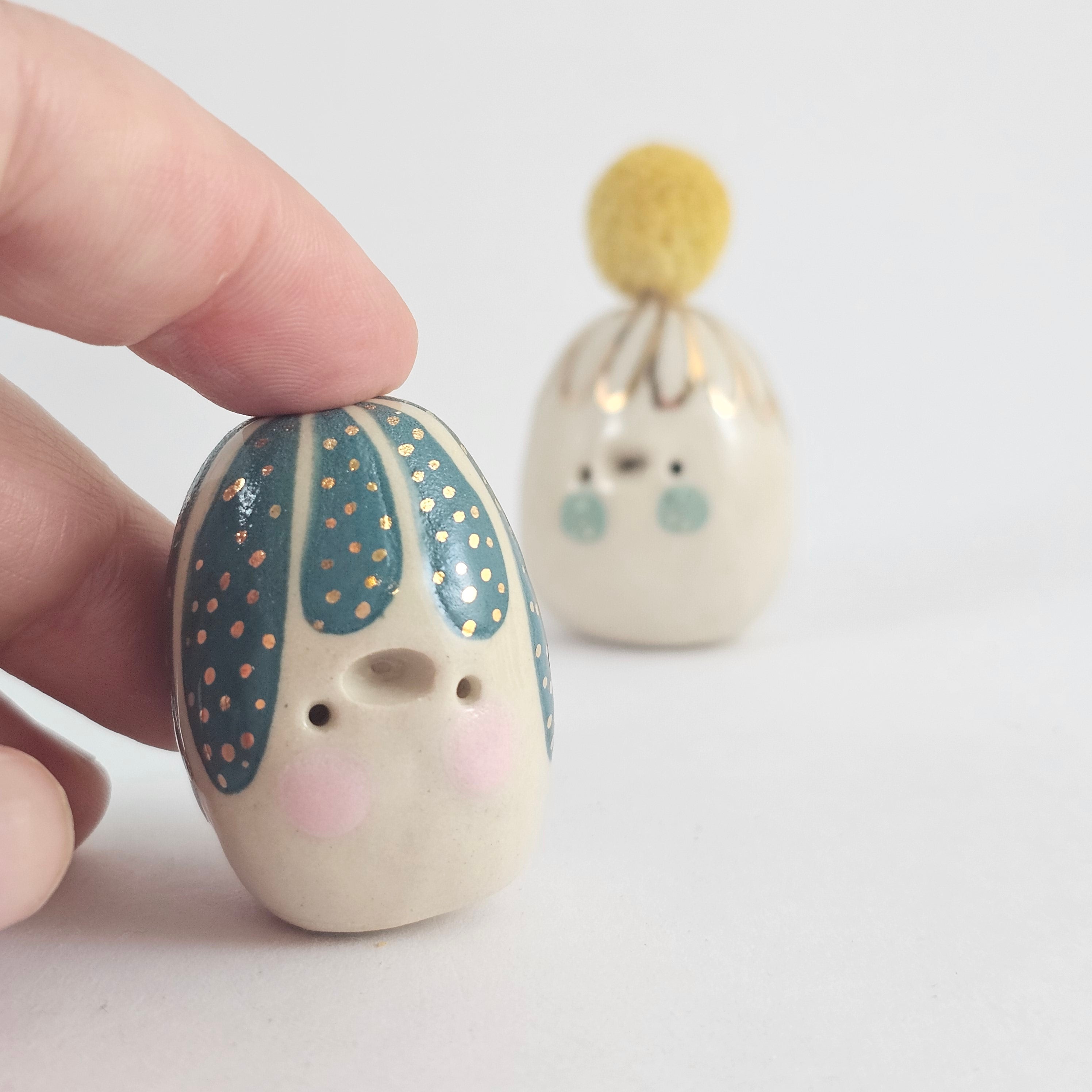 Small, hand built ceramic sculpture with 24-carat gold luster details