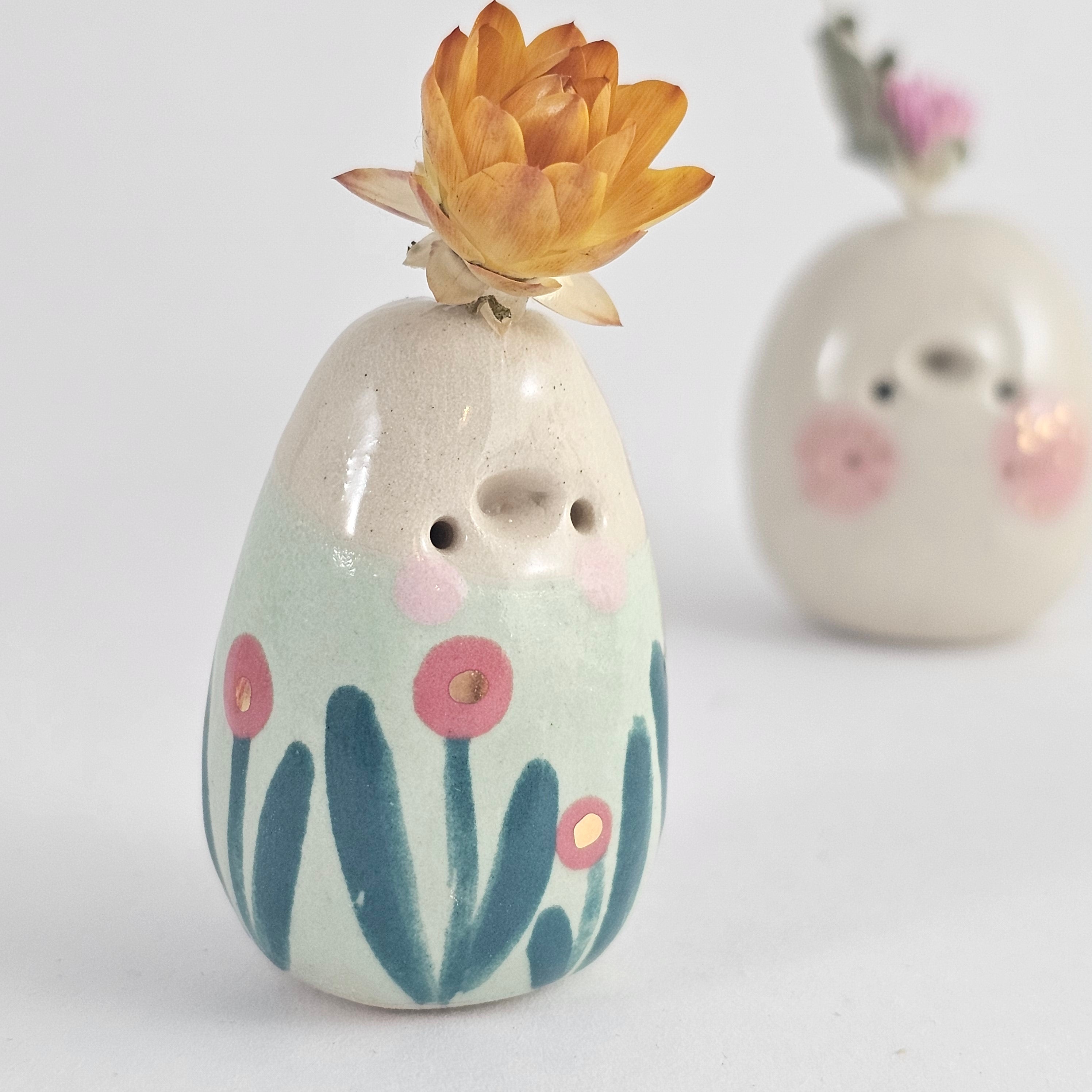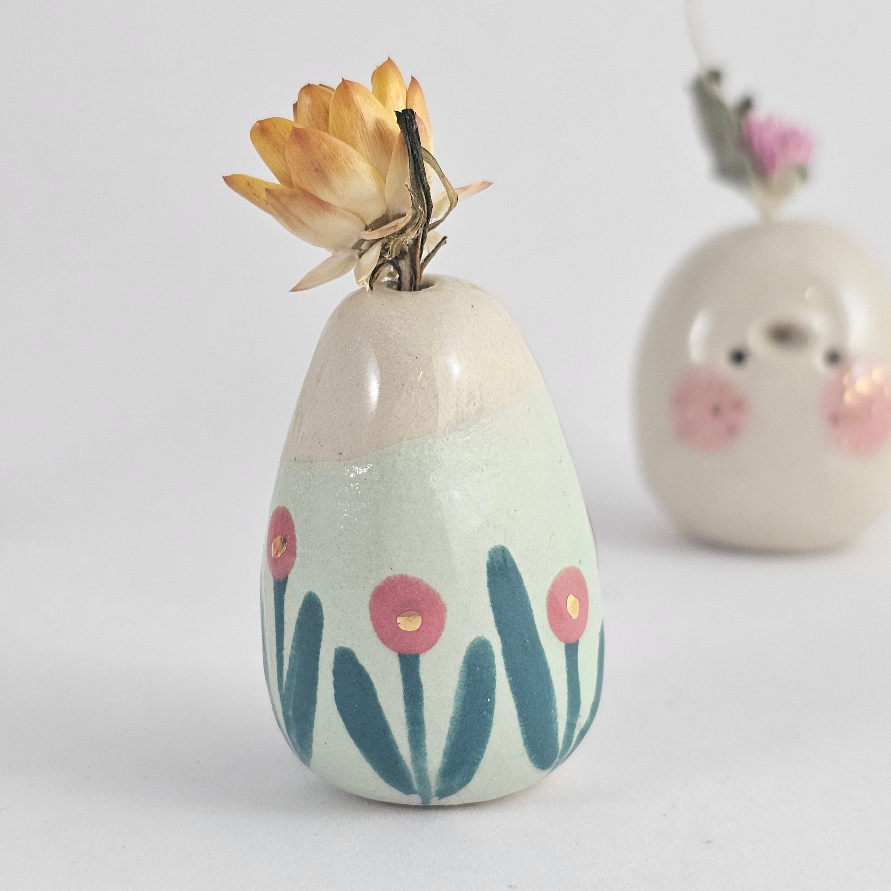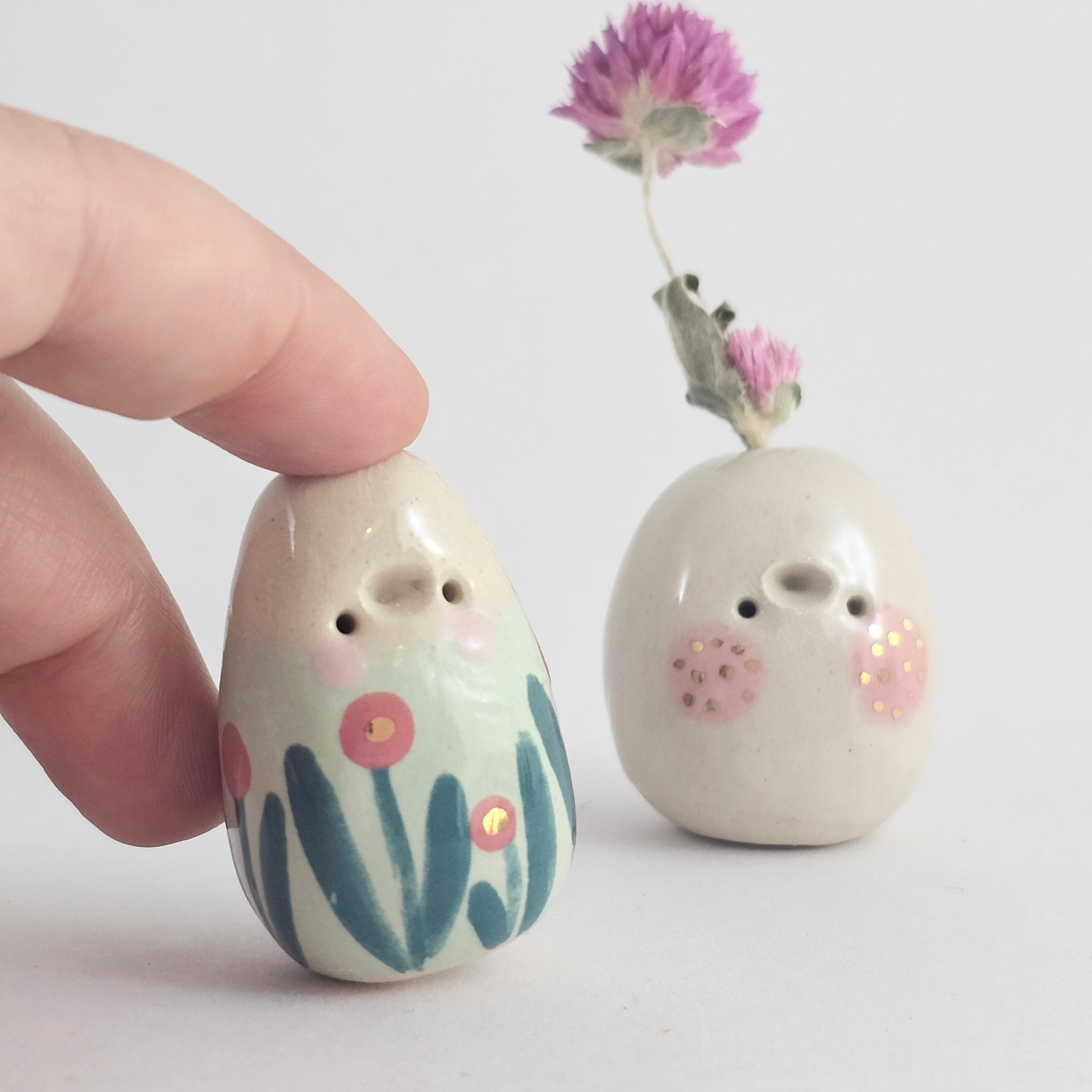 Small, hand built ceramic sculpture with 24-carat gold luster details