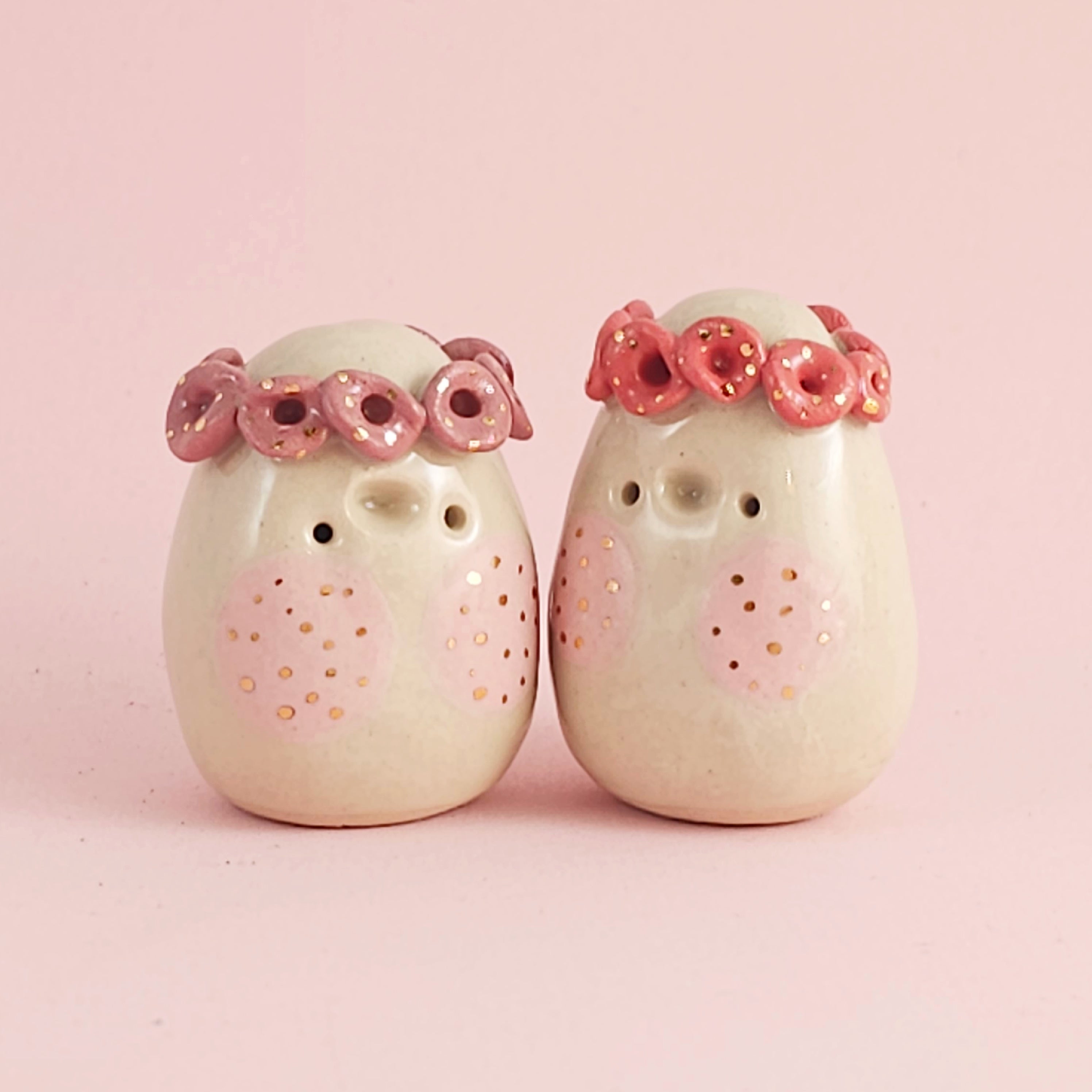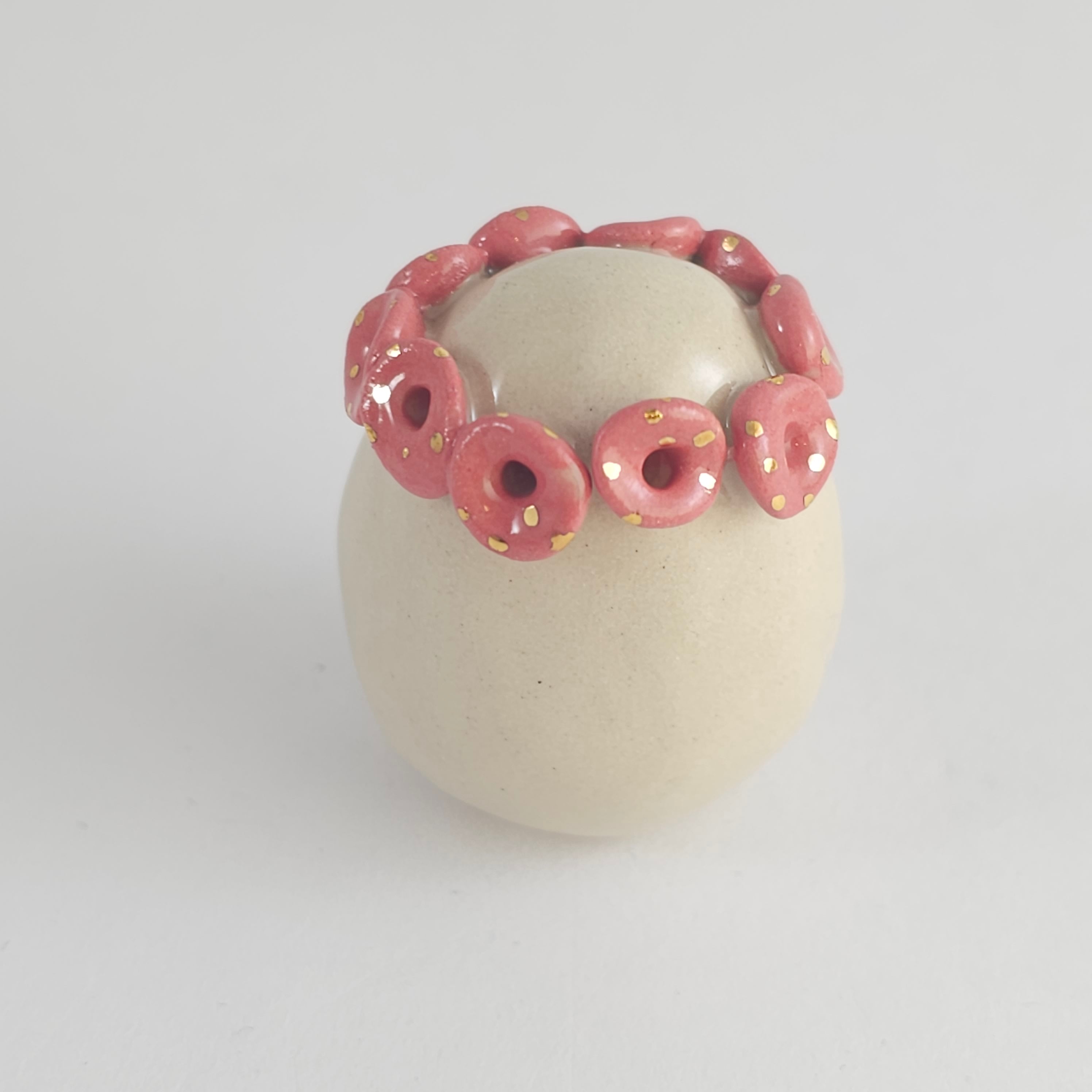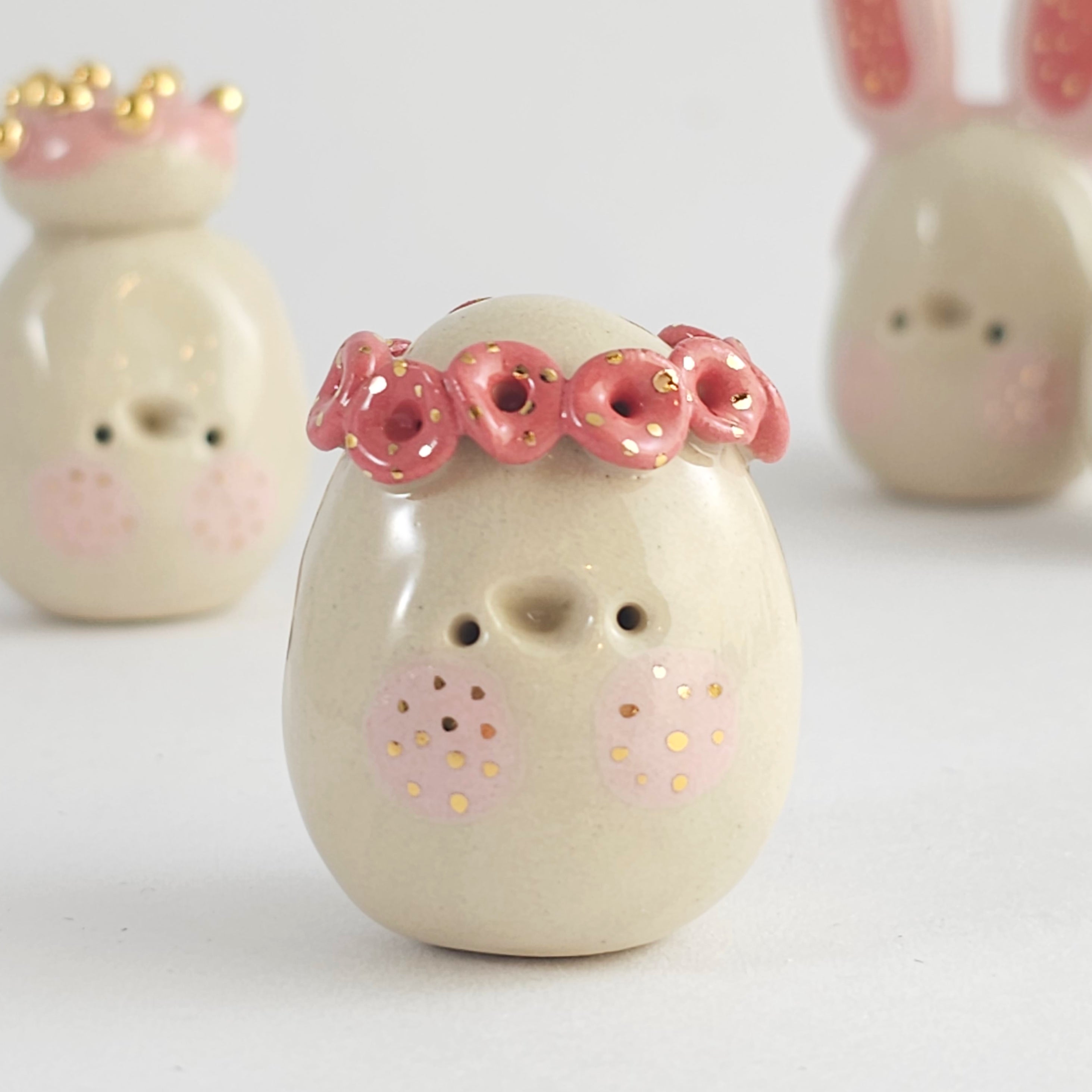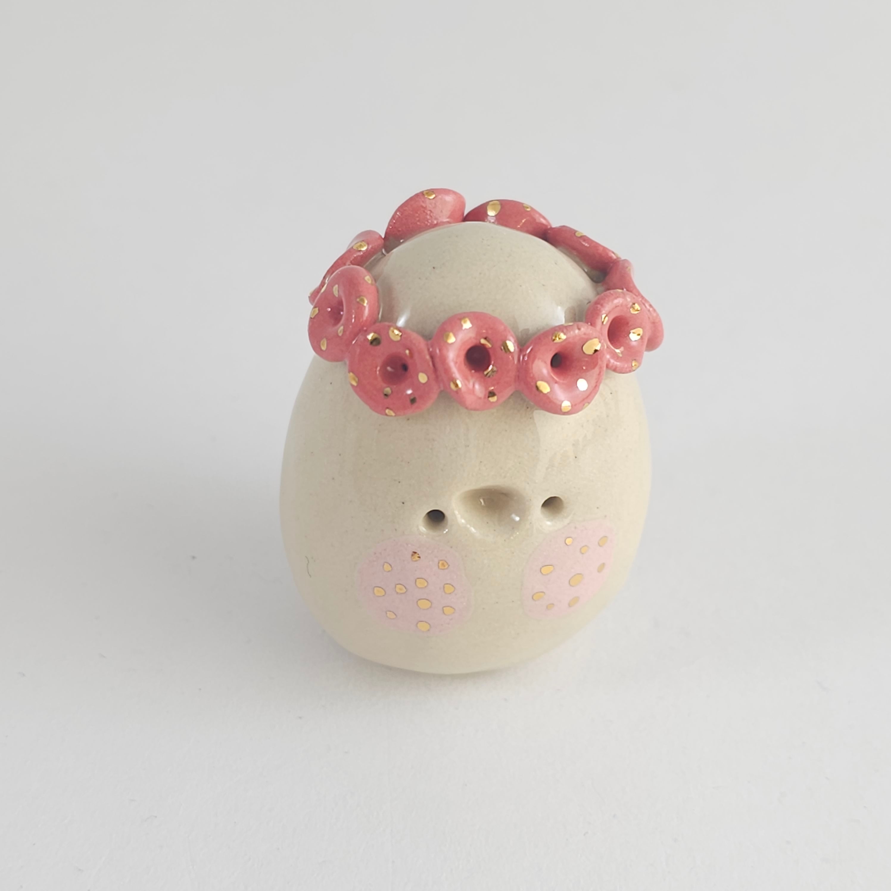 Small, hand built ceramic sculpture with 24-carat gold luster details