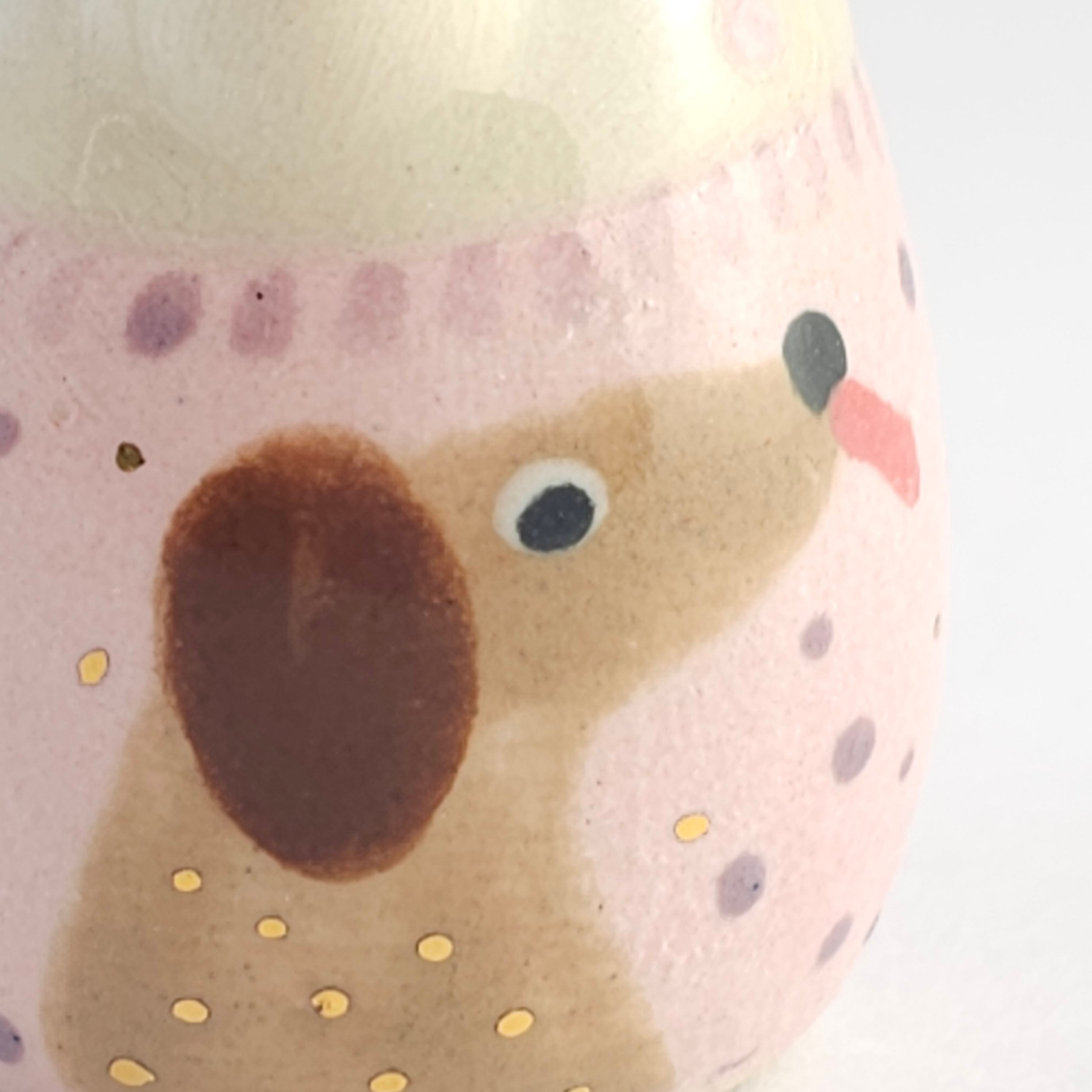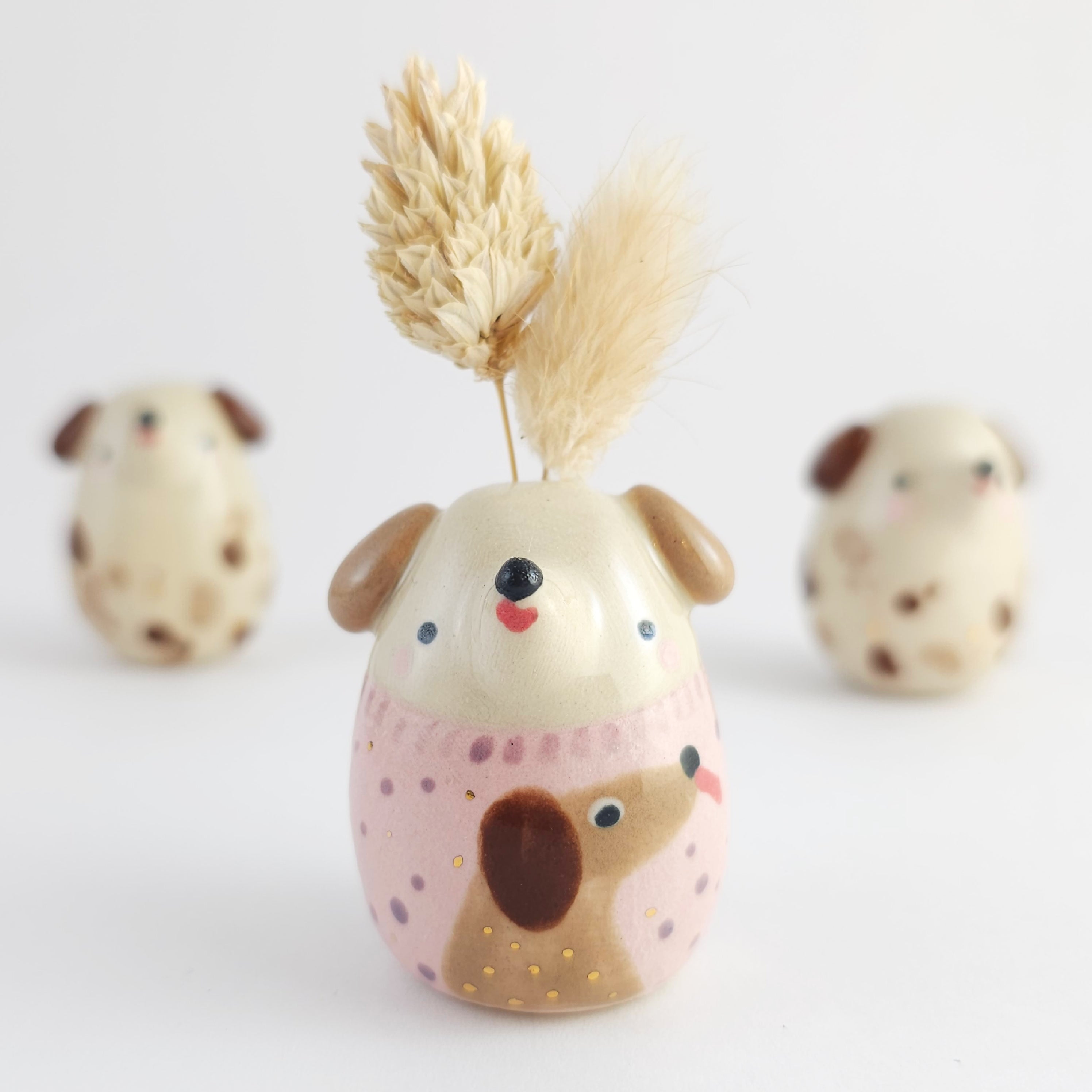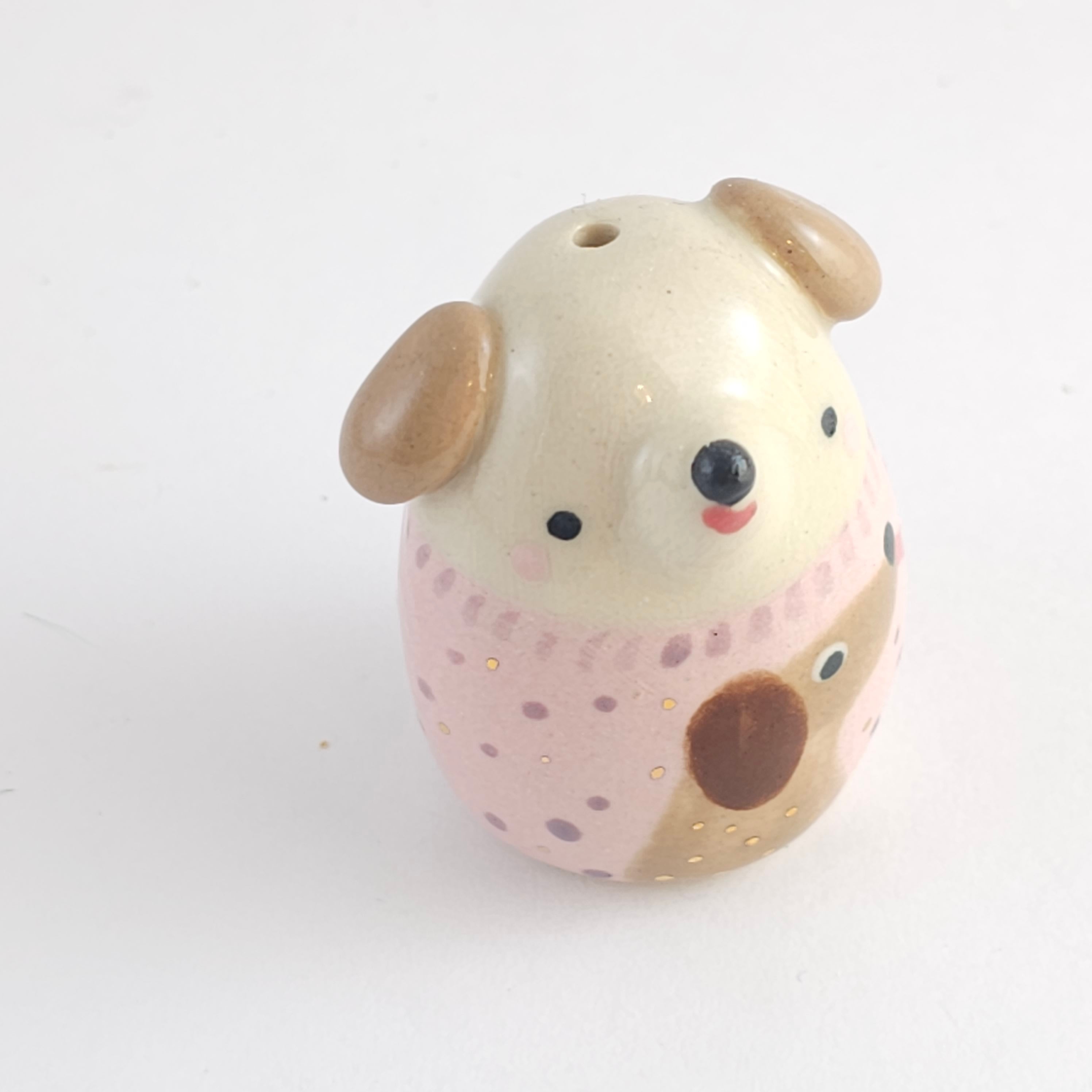 The brown pup on the sweater has a slightly transparent brushstroke mark in his neck.