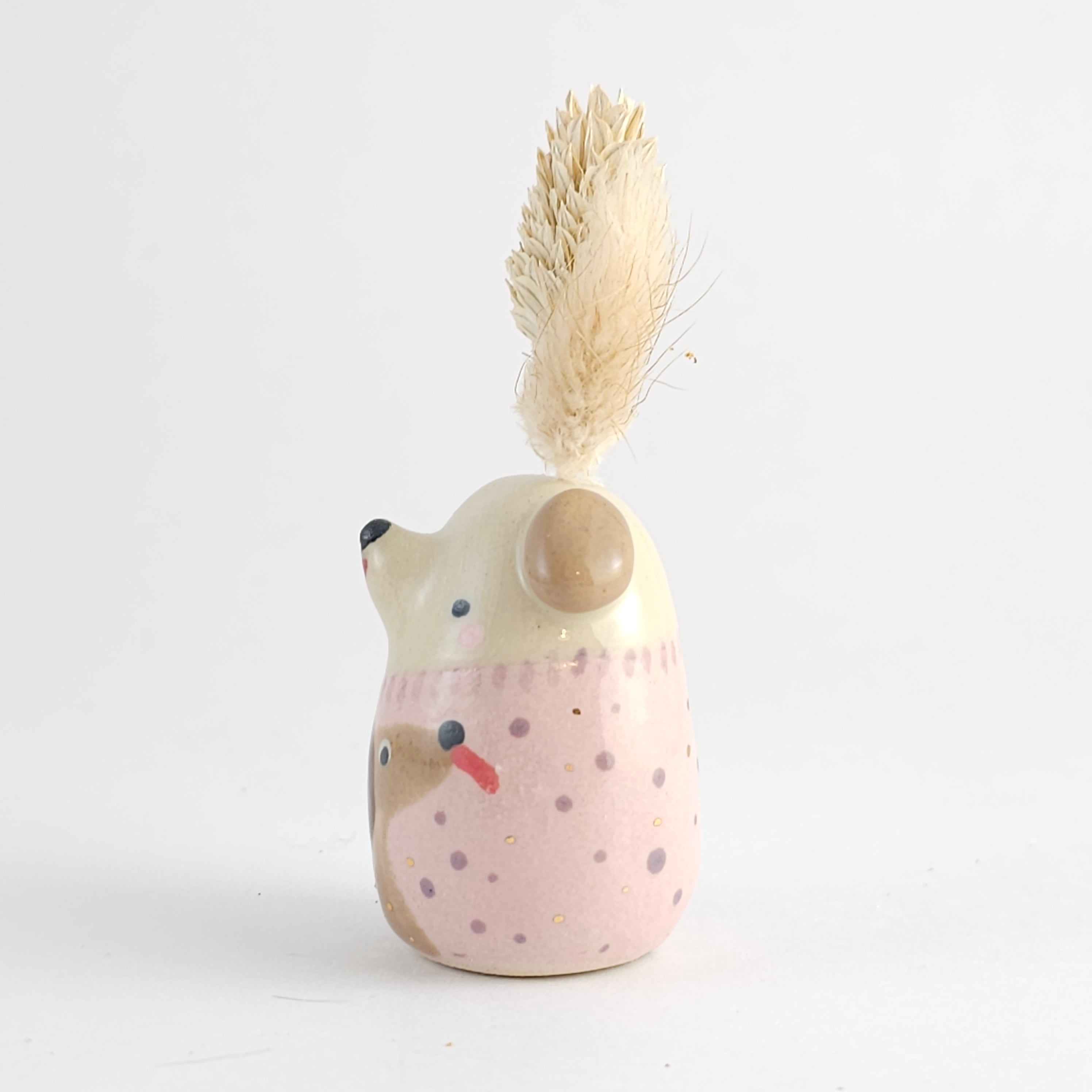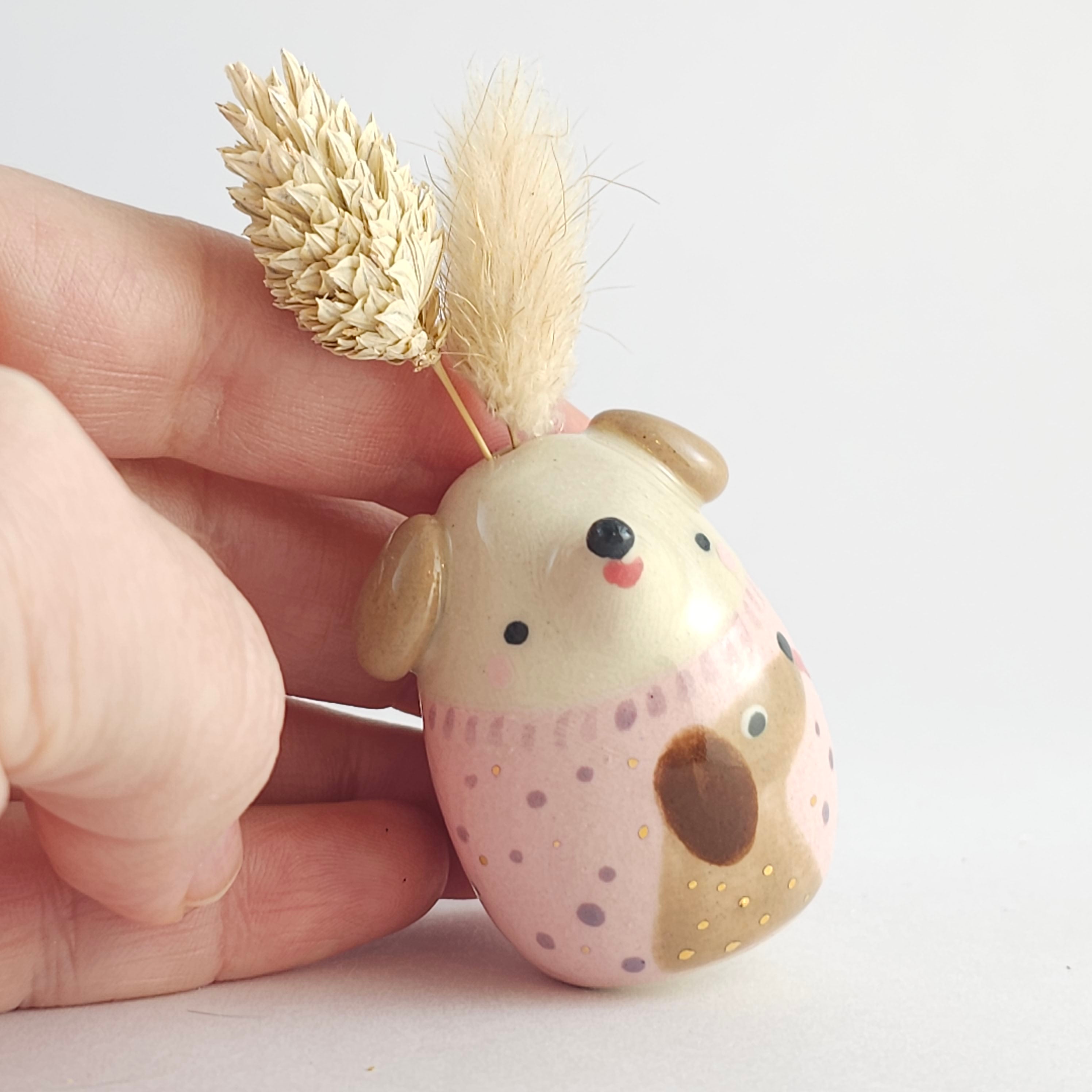 Small, hand built ceramic sculpture. Dipped in transparent glaze and covered with Gold Luster details.
