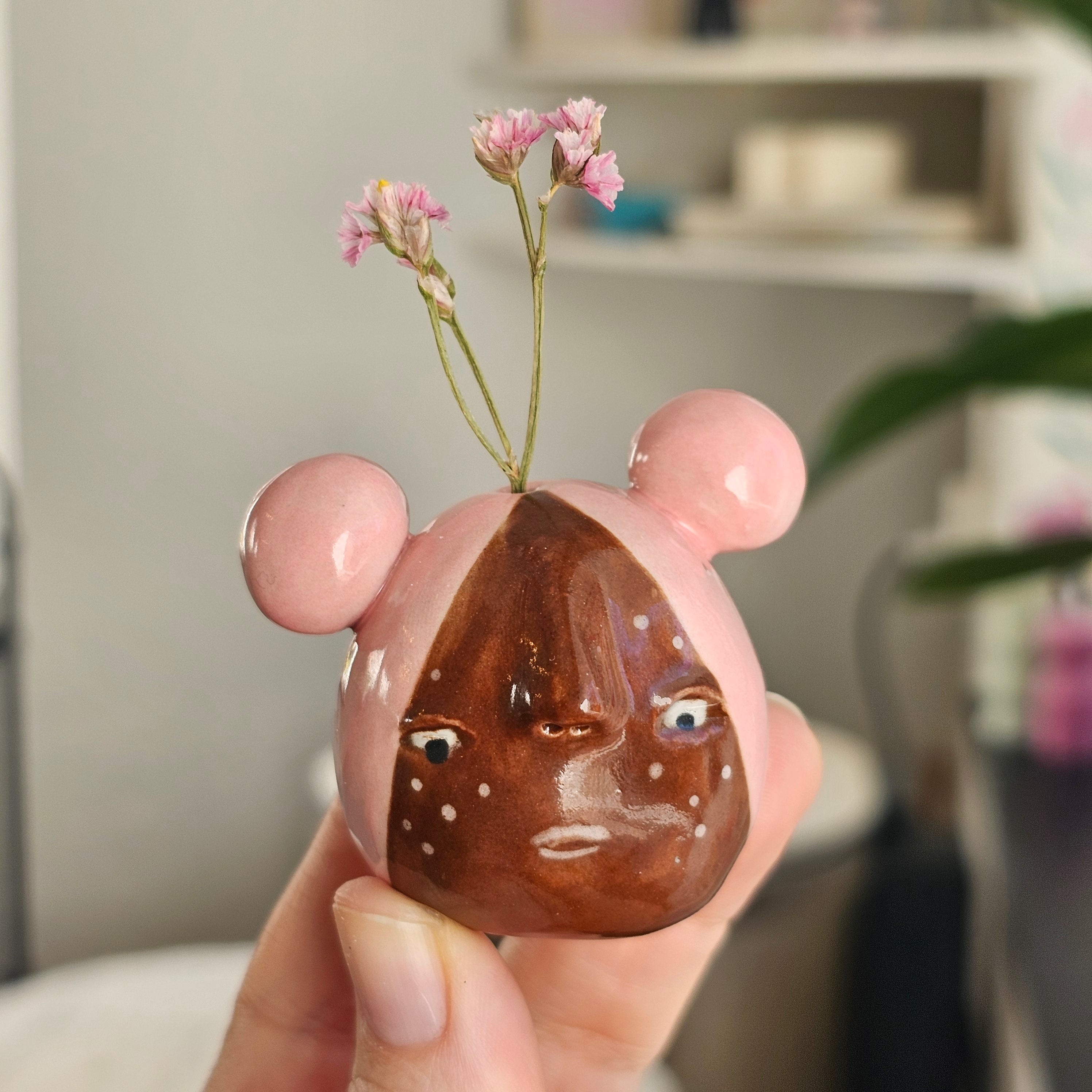 Has a small hole on top, suitable for dry flowers.
