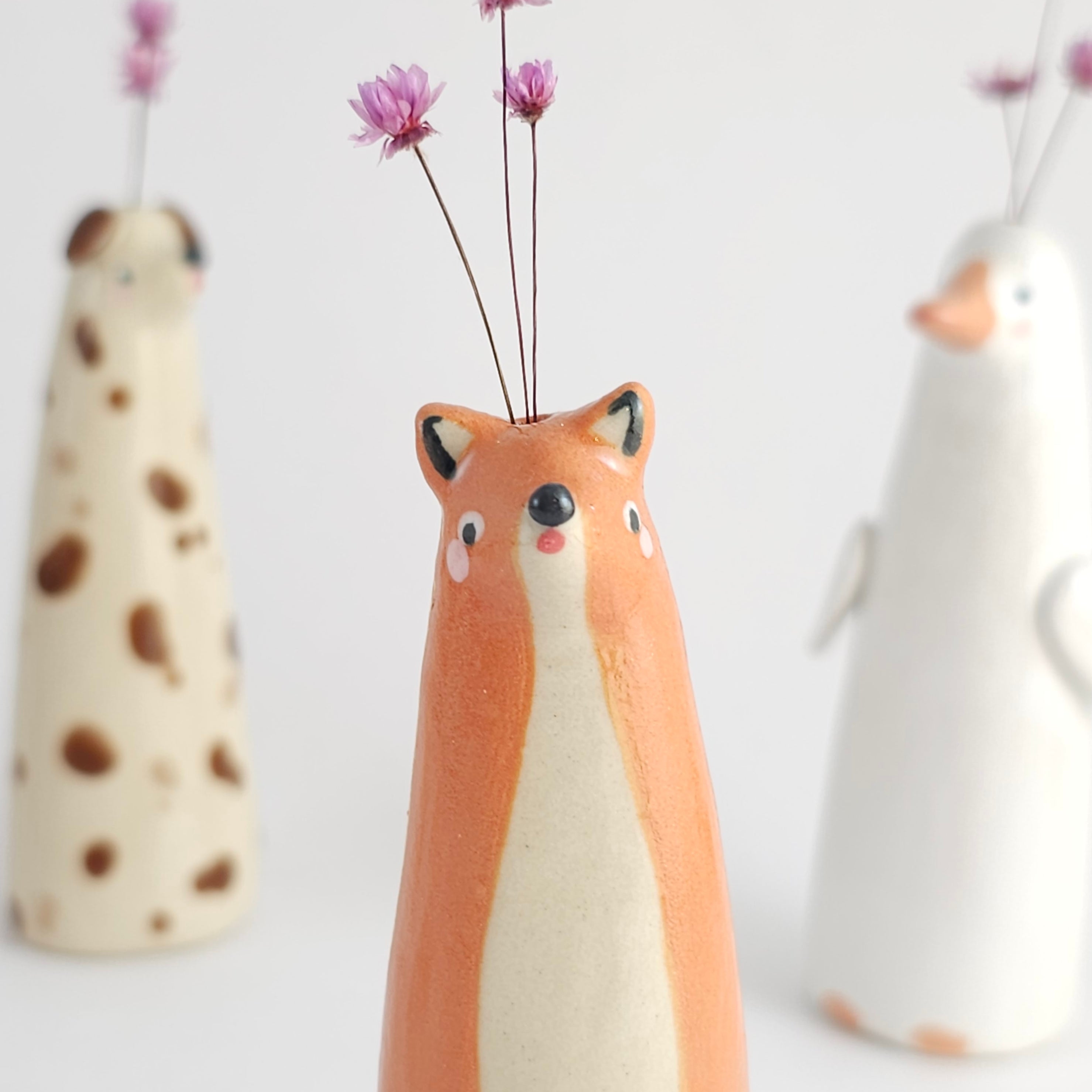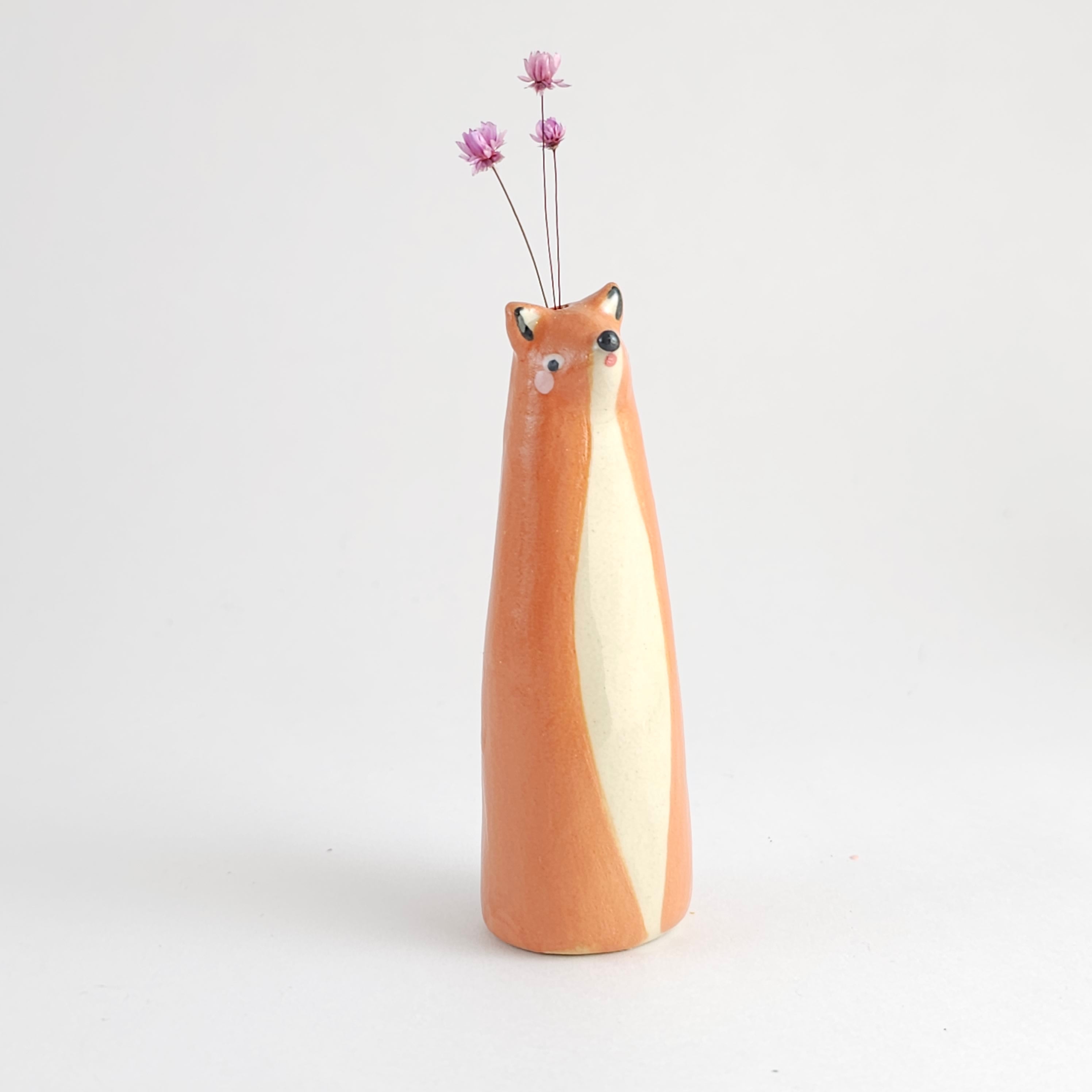 Hand built & hand painted ceramic vase, dipped in a transparent glaze.