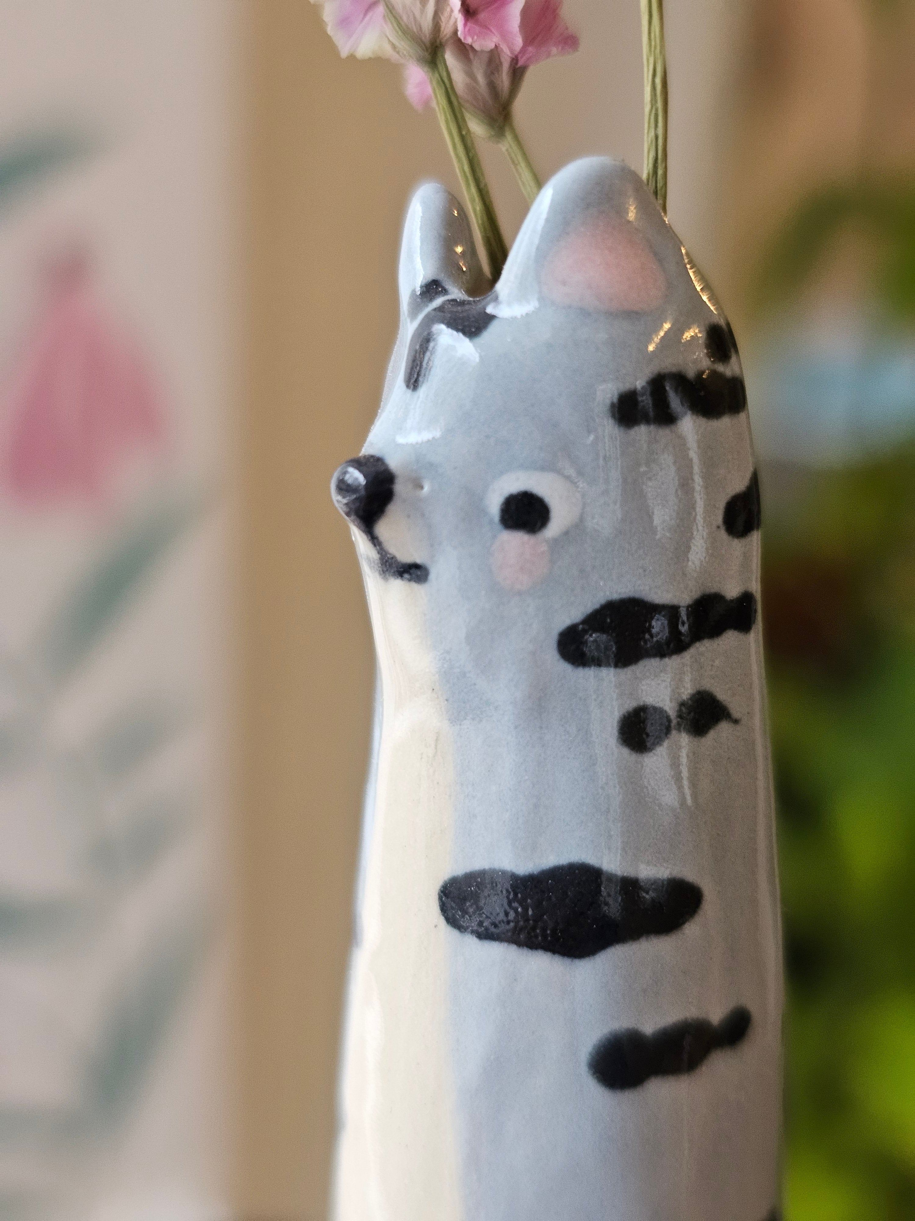 Hand built & hand painted ceramic vase, dipped in a transparent glaze.