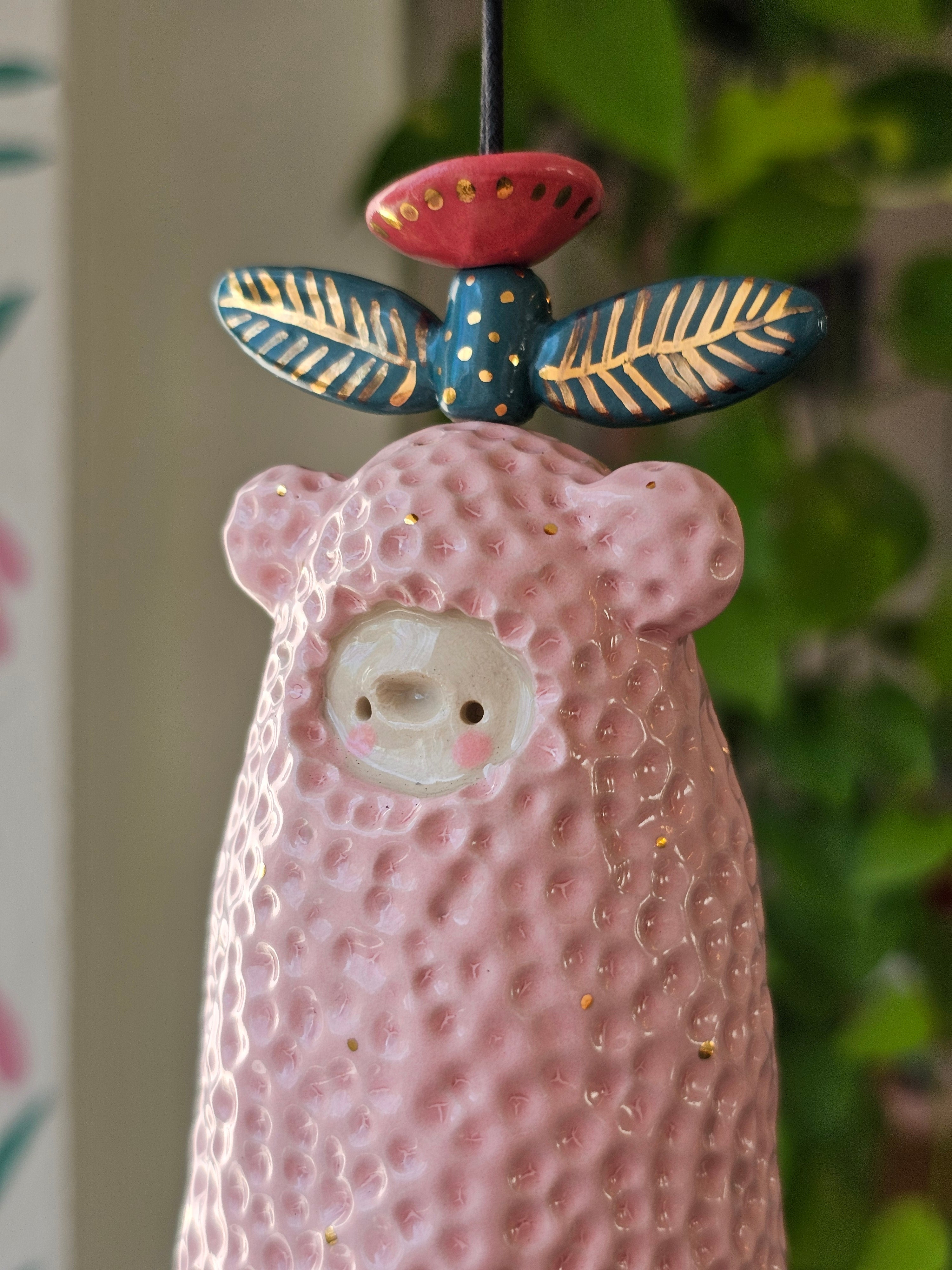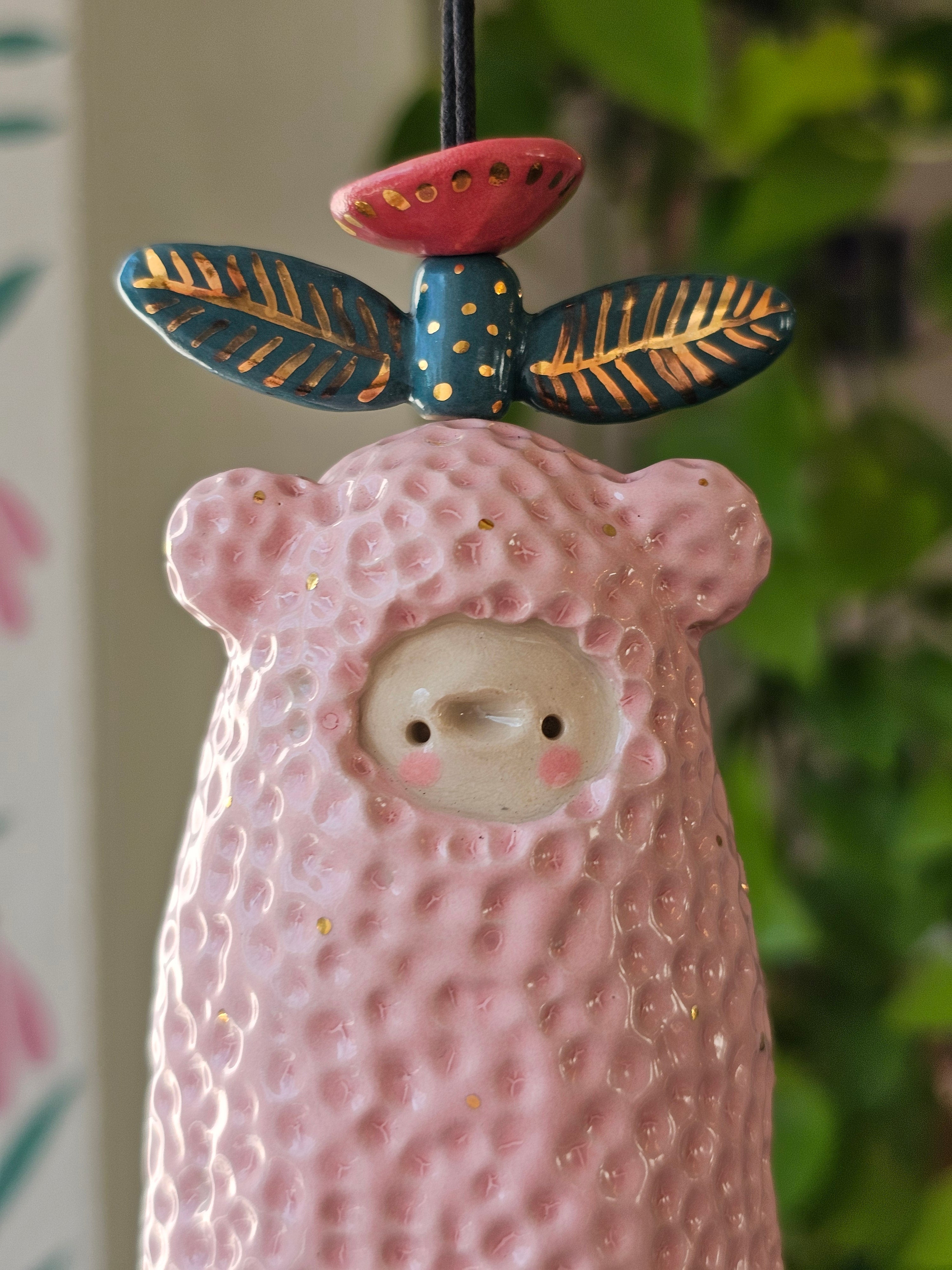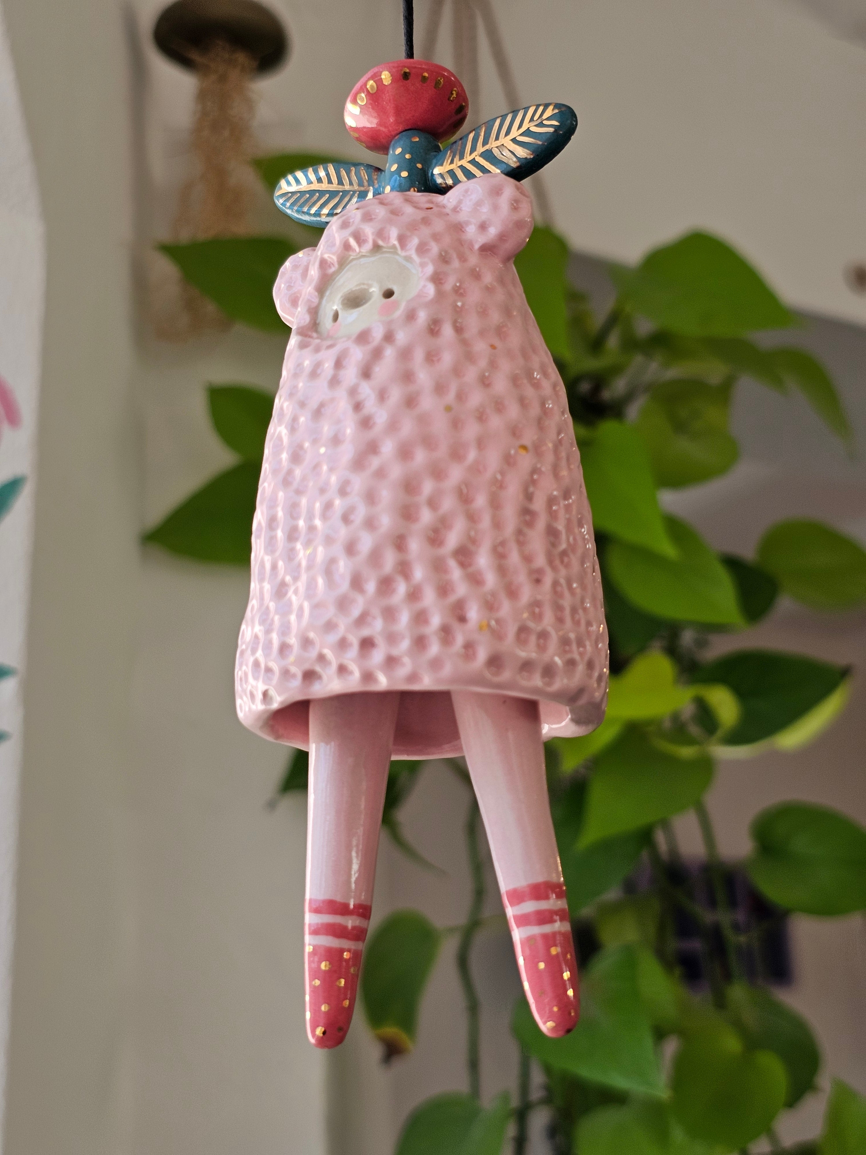 Every piece of this ceramic bell is 100% handmade. After building them by hand, I sculpt and paint them with lots of care, giving each bell its own unique character.