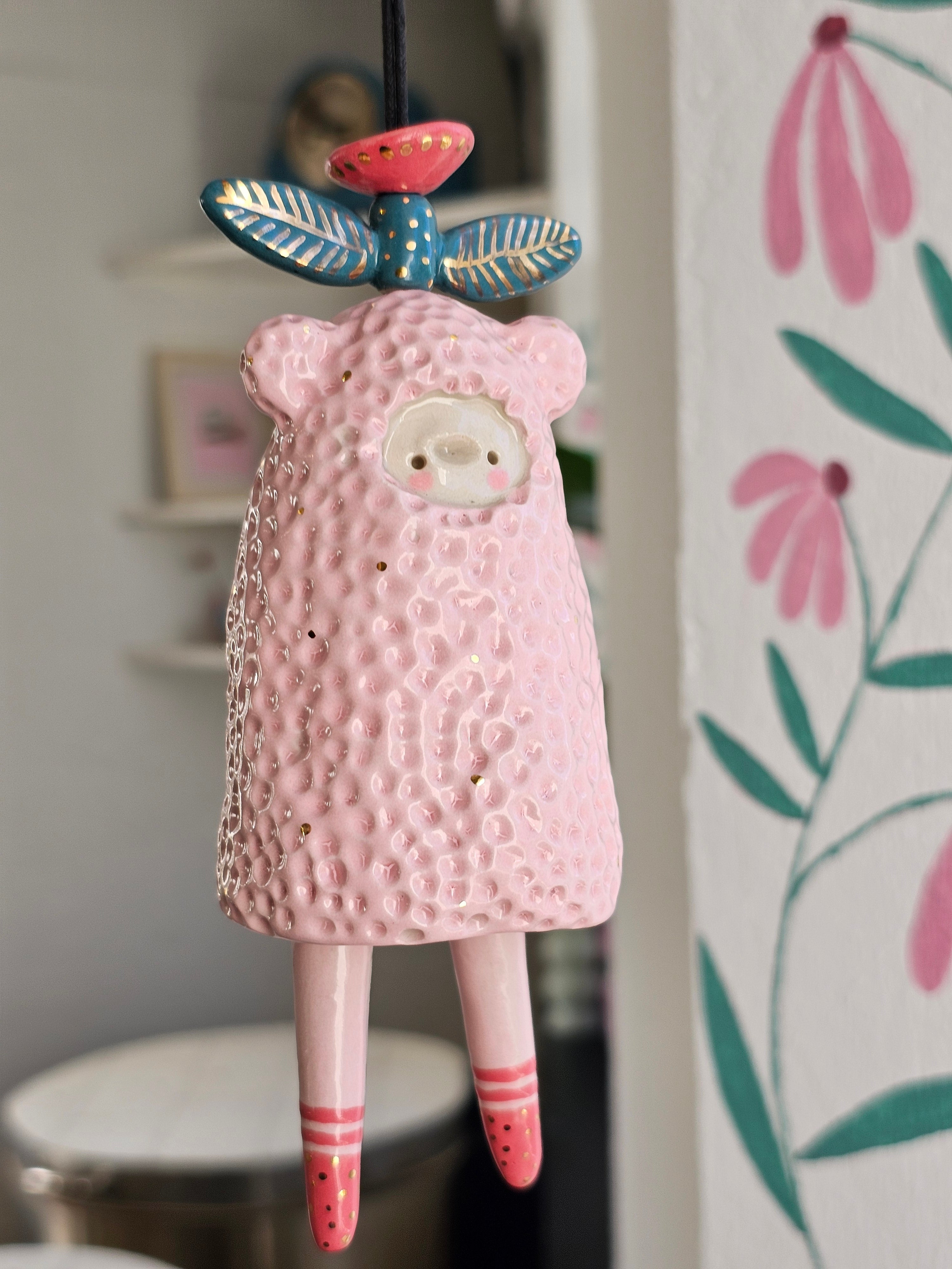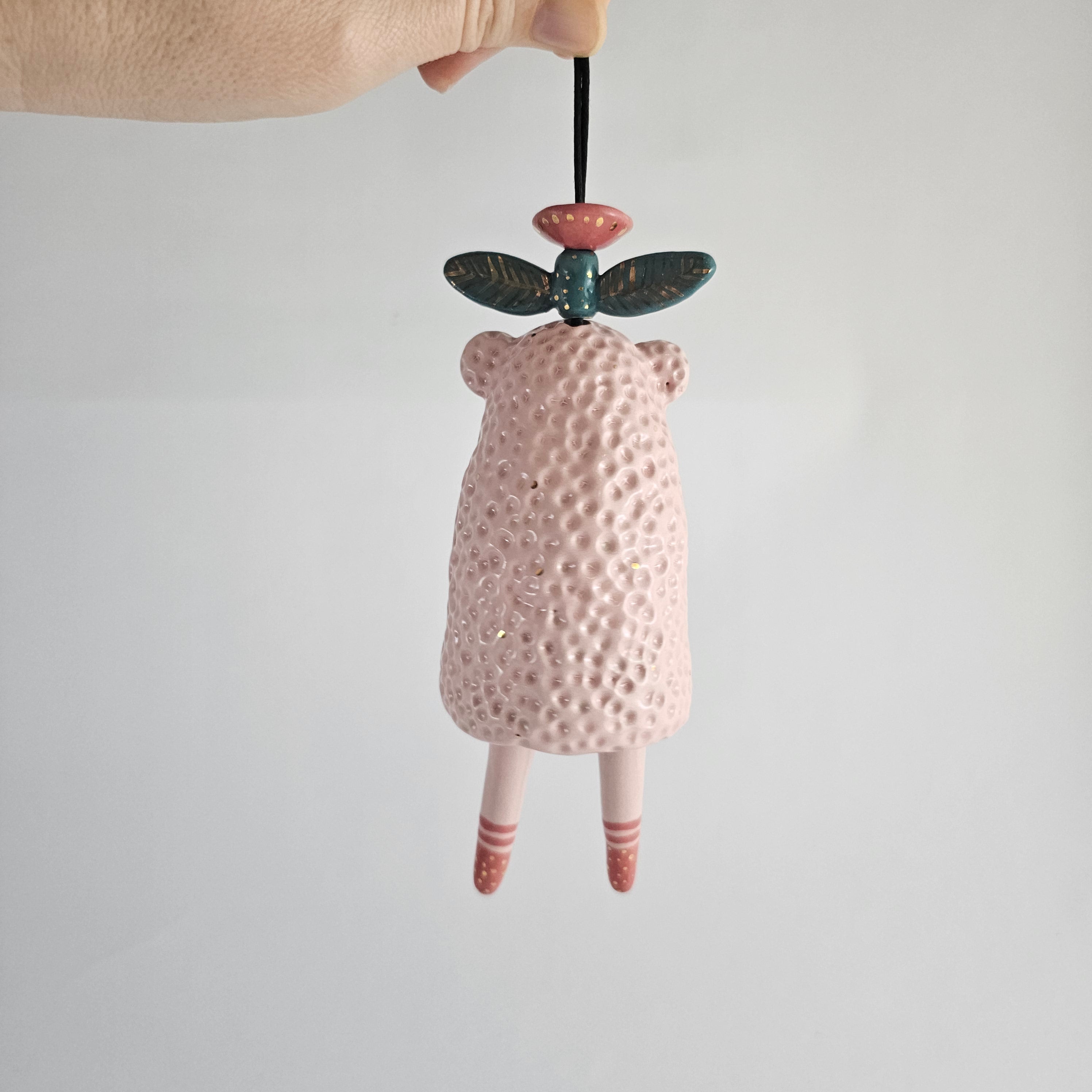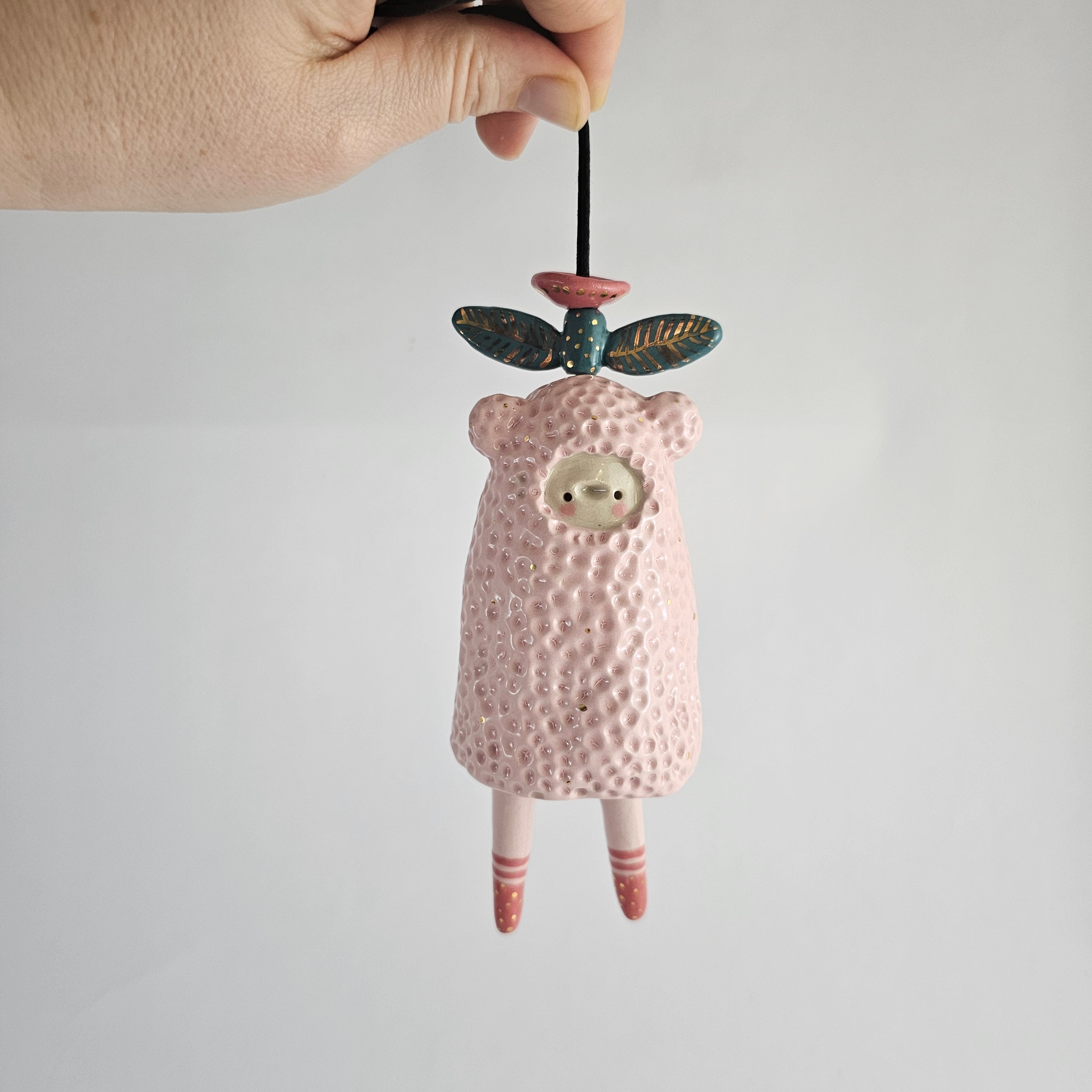 Every piece of this ceramic bell is 100% handmade. After building them by hand, I sculpt and paint them with lots of care, giving each bell its own unique character.