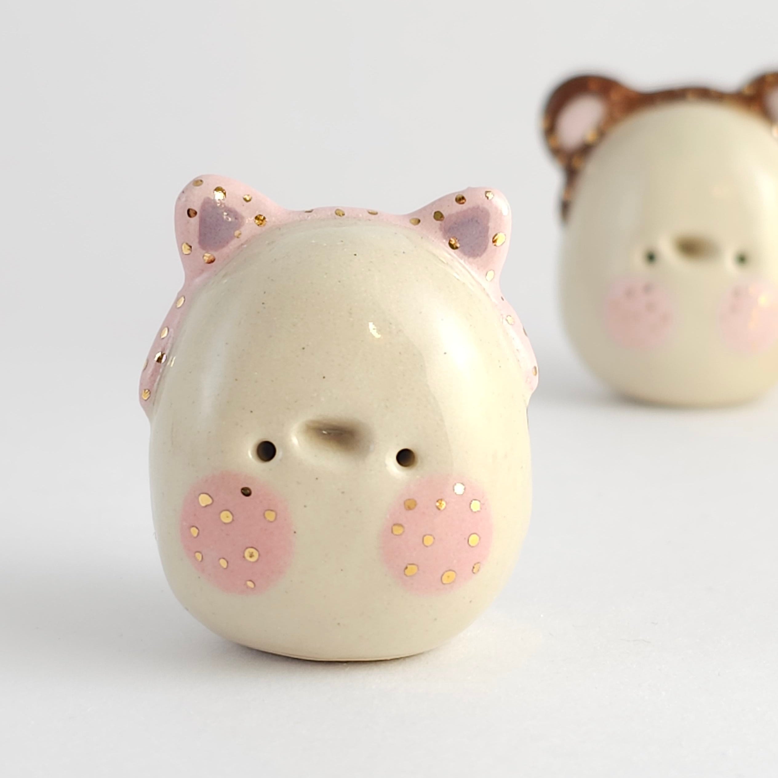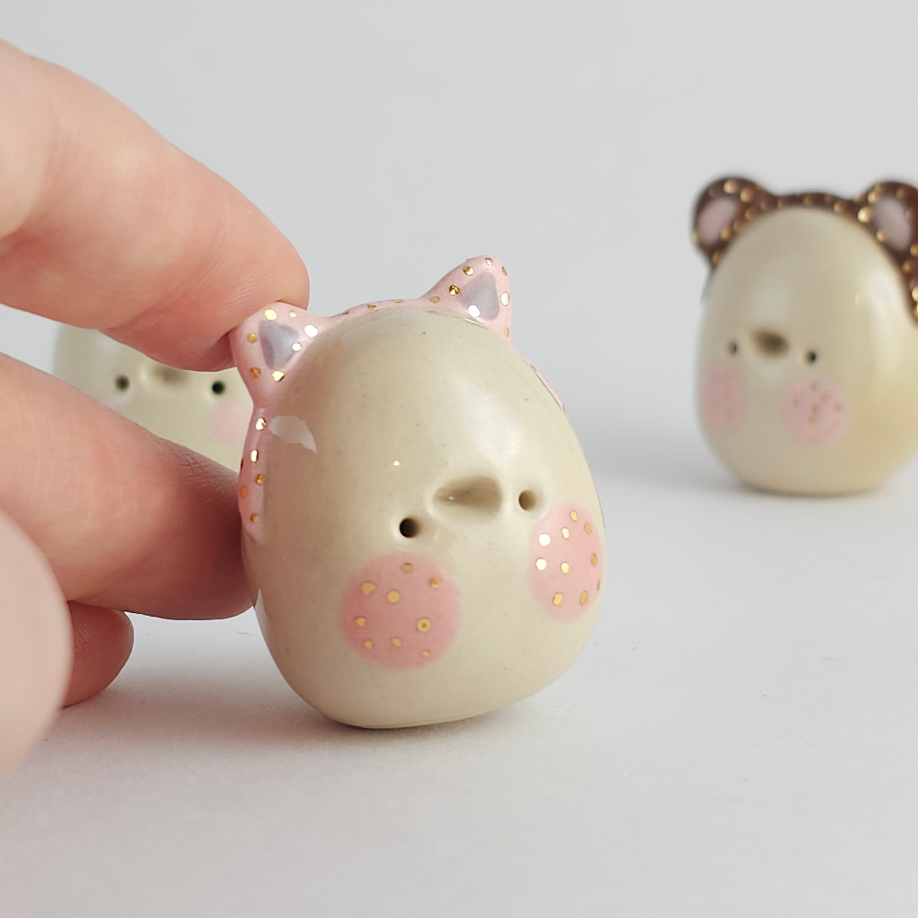 Small, hand built ceramic sculpture with 24-carat gold luster details