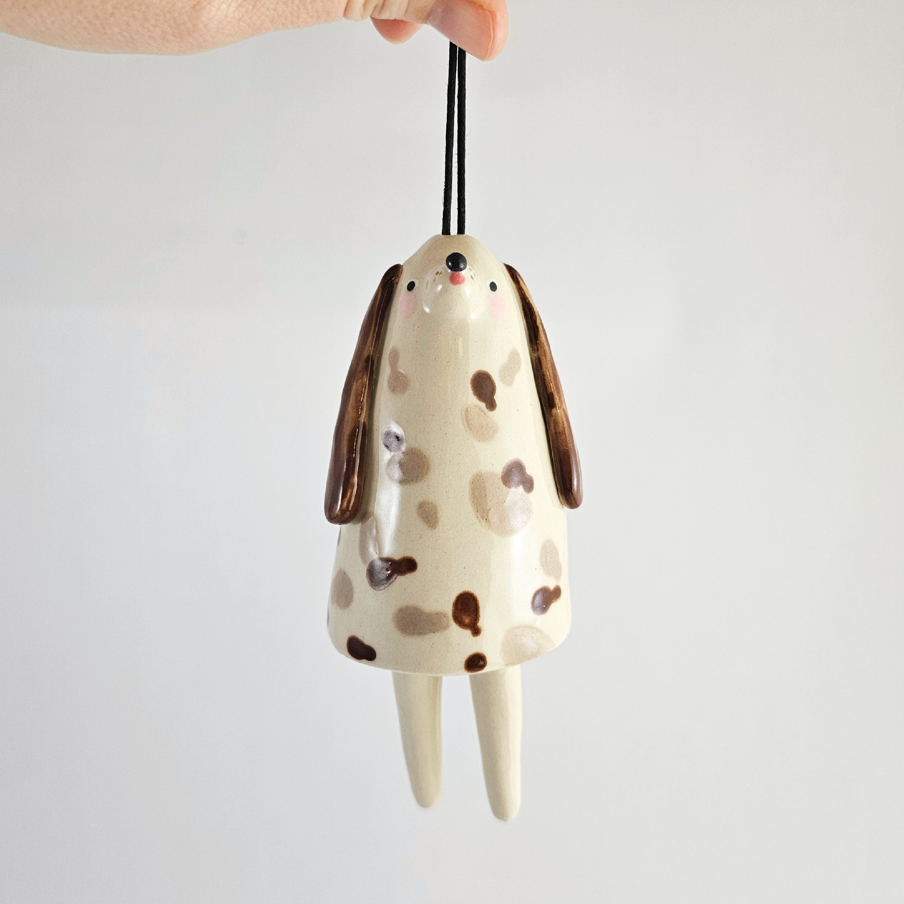 Every piece of this ceramic bell is 100% handmade. After building them by hand, I sculpt and paint them with lots of care, giving each bell its own unique character.