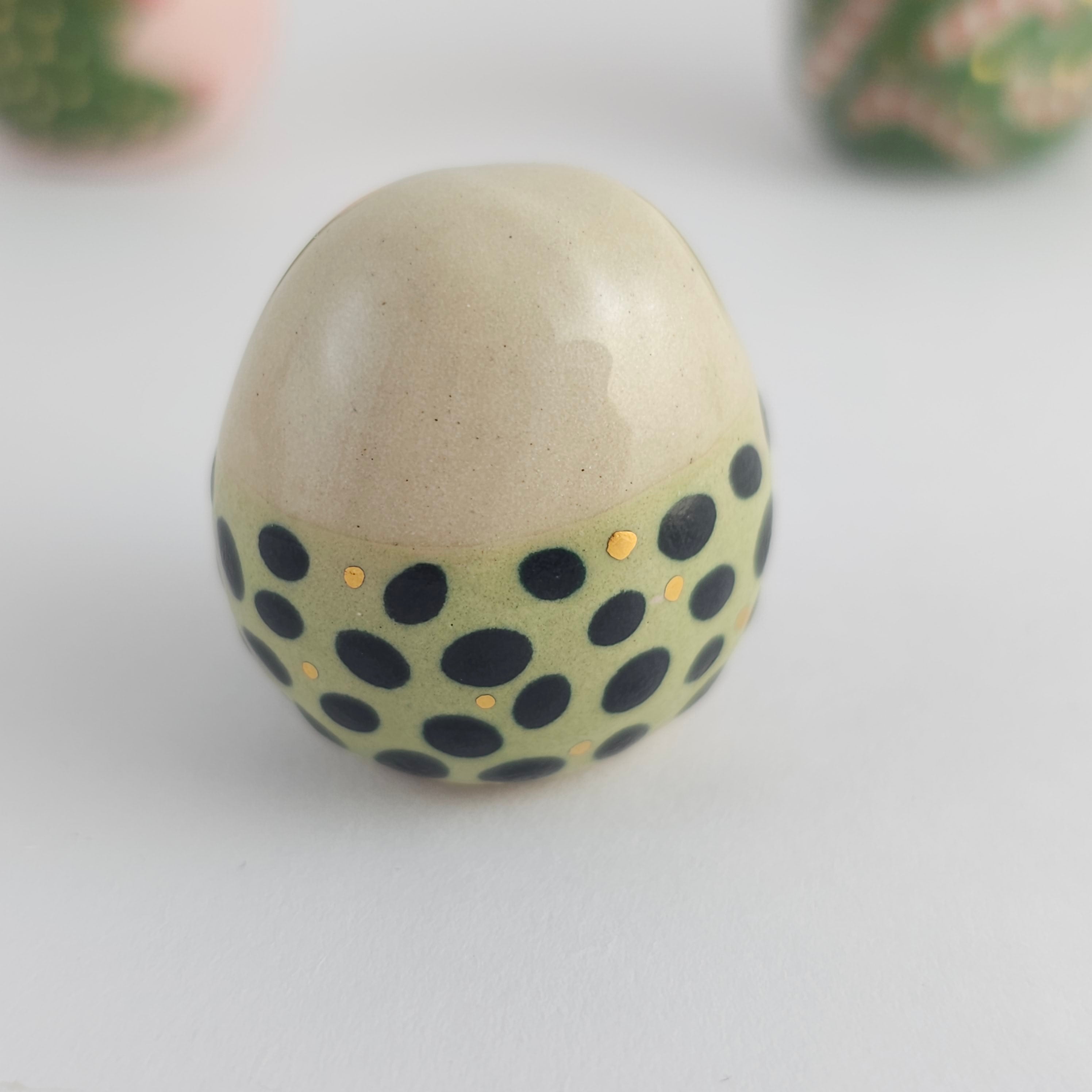 Small, hand built ceramic sculpture with 24-carat gold luster details