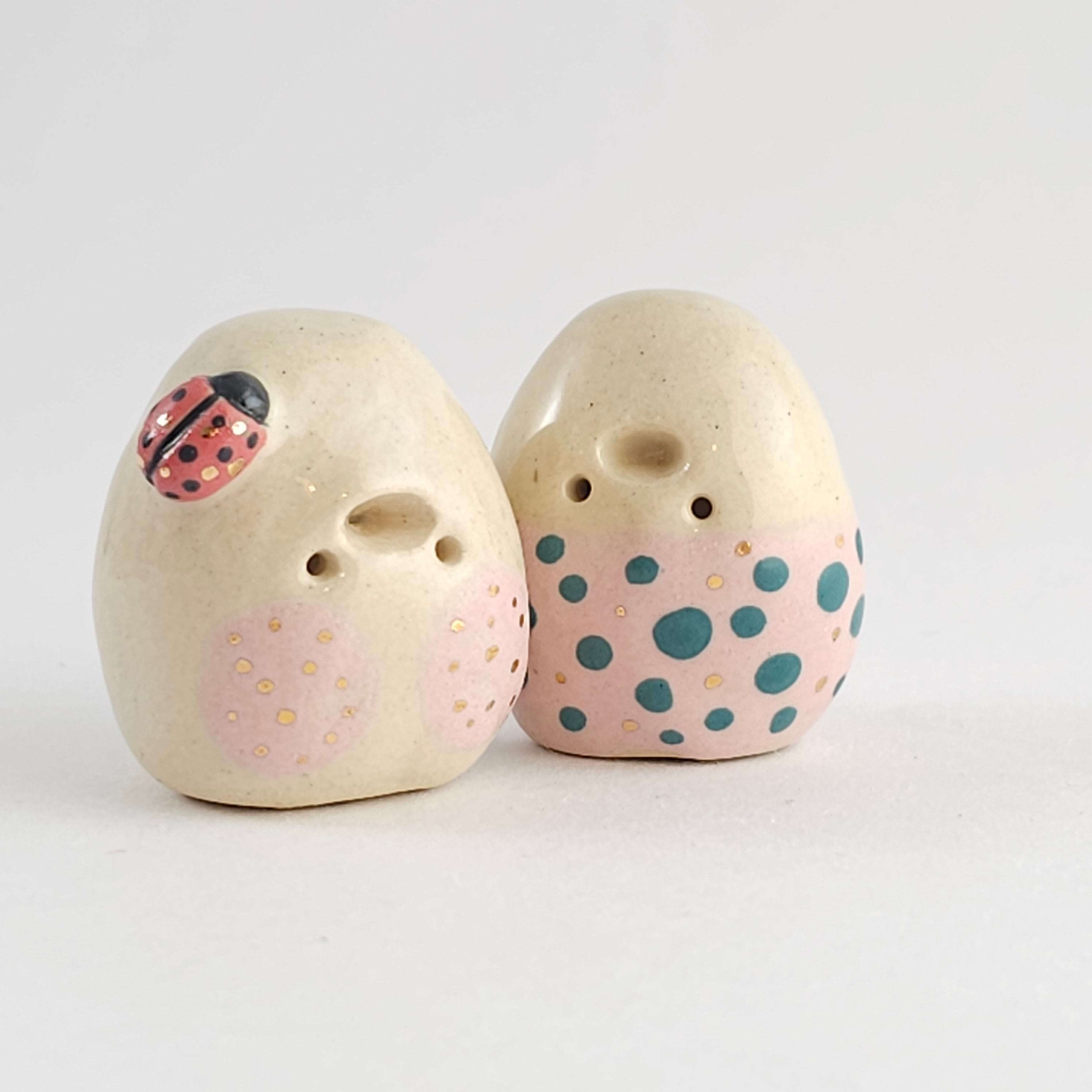 Small, hand built ceramic sculpture with 24-carat gold luster details