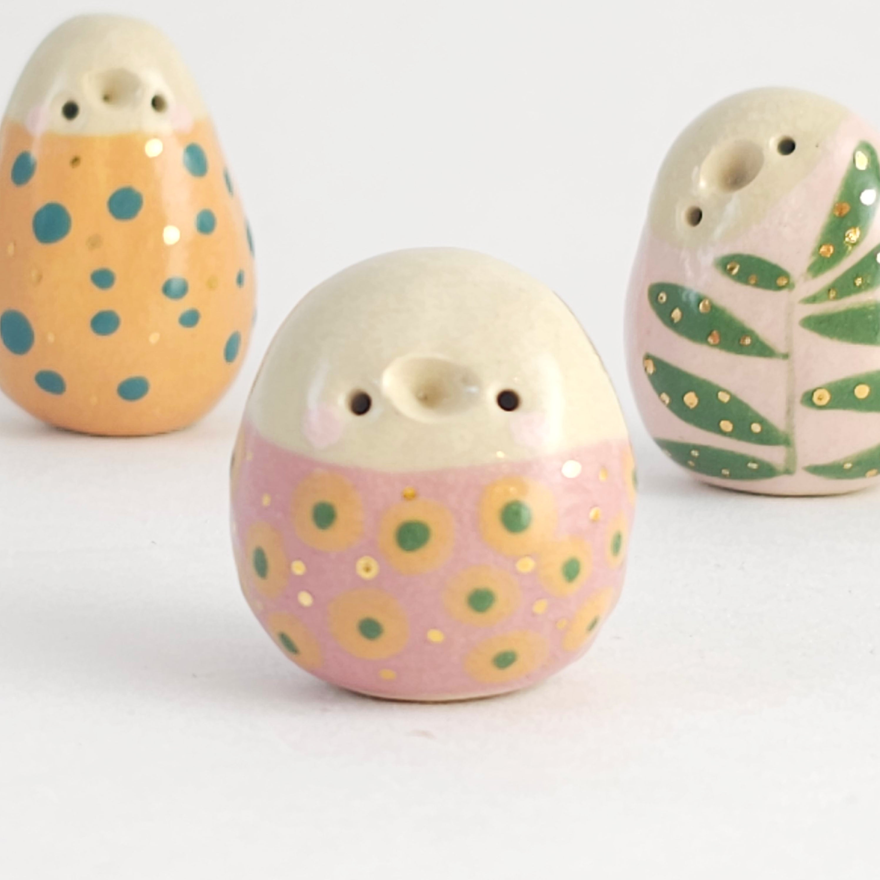 Small, hand built ceramic sculpture with 24-carat gold luster details