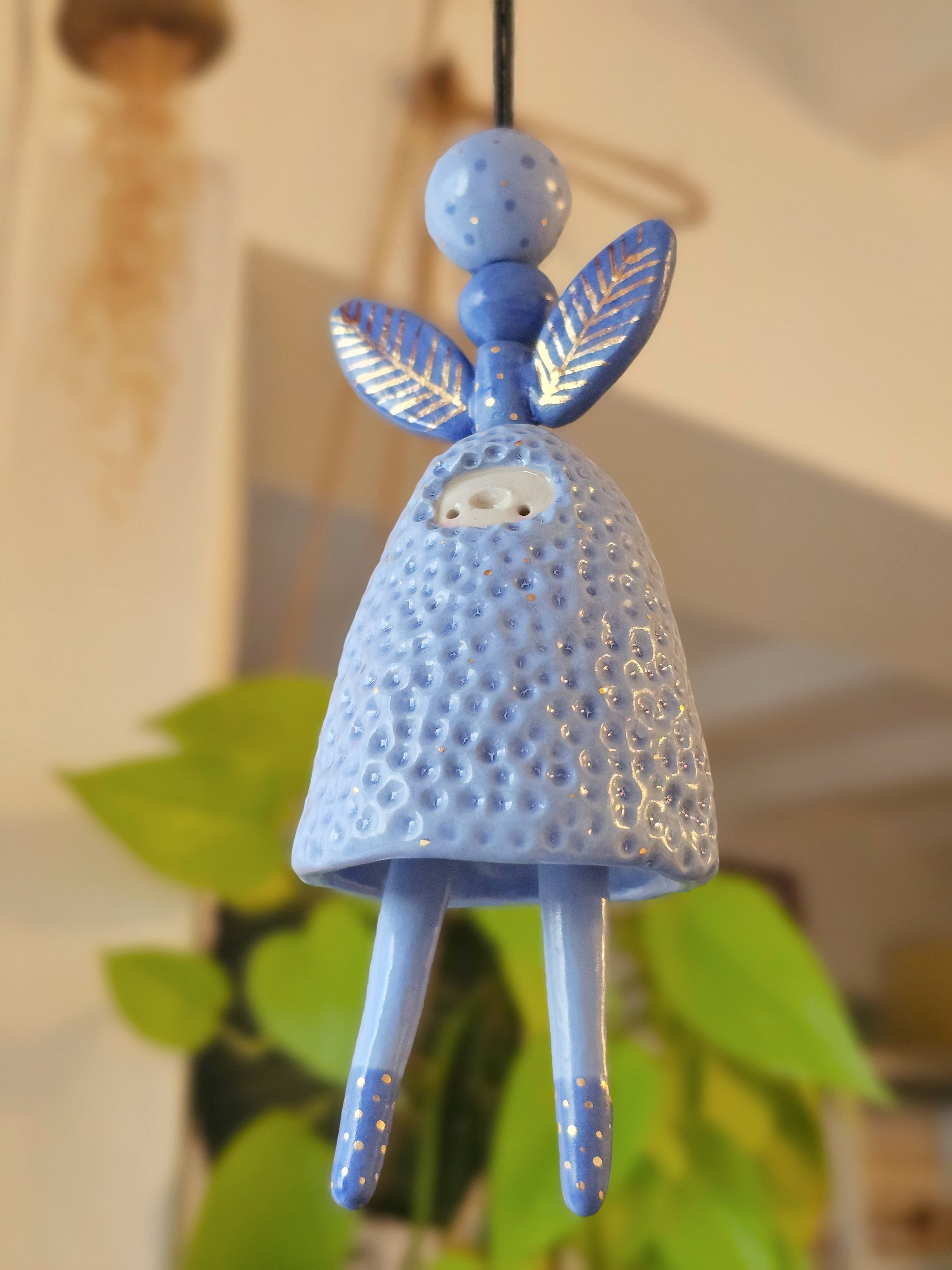 Every piece of this ceramic bell is 100% handmade. After building them by hand, I sculpt and paint them with lots of care, giving each bell its own unique character.