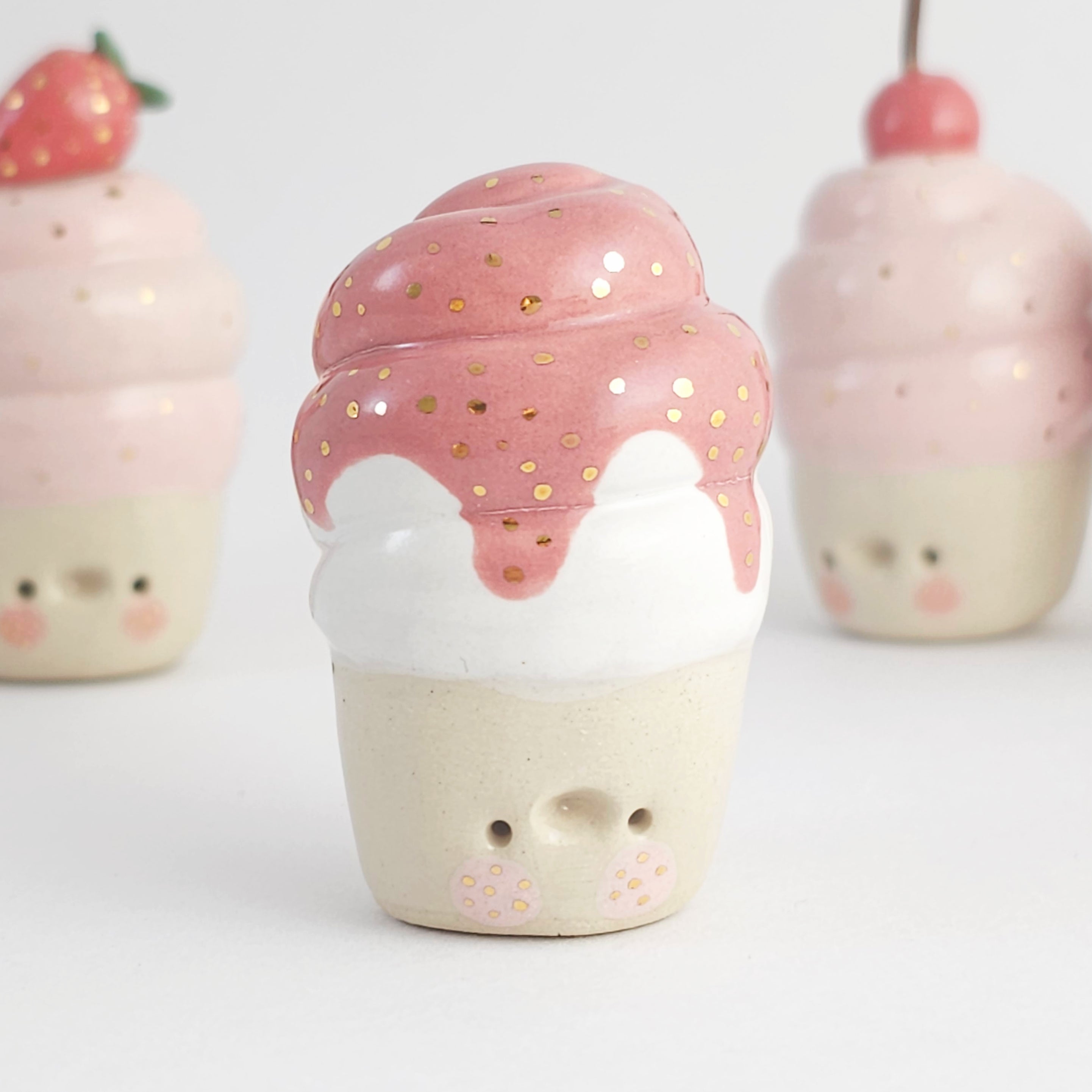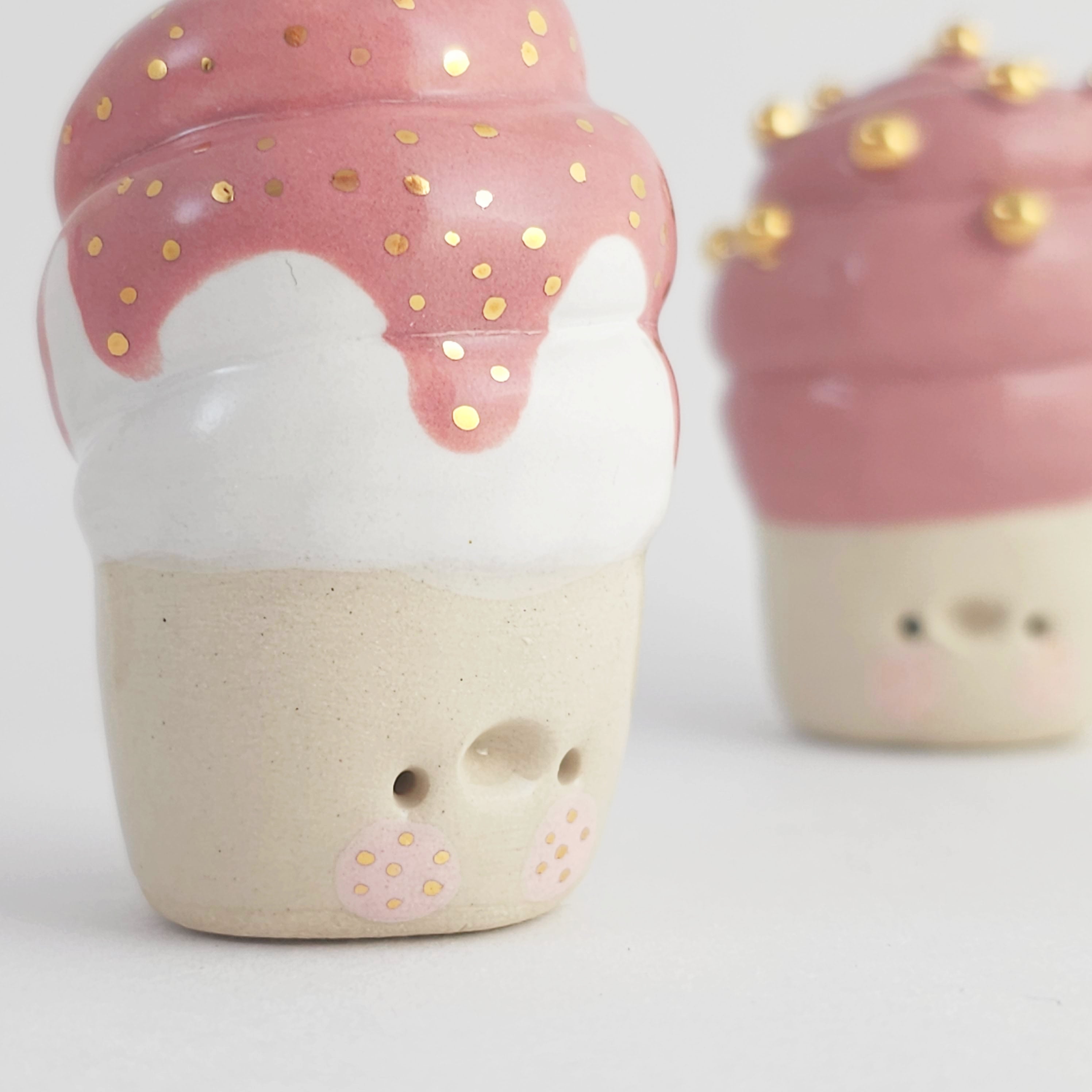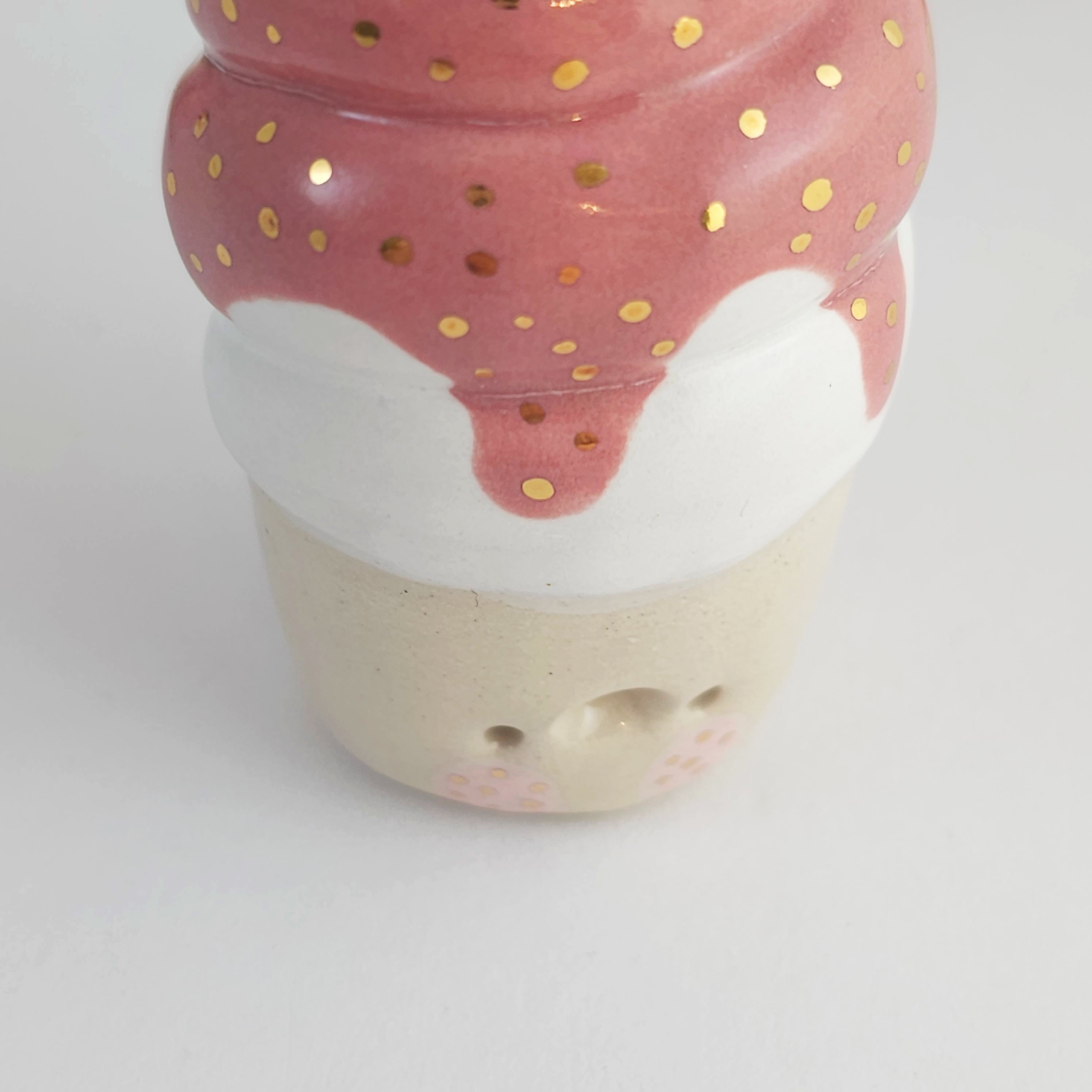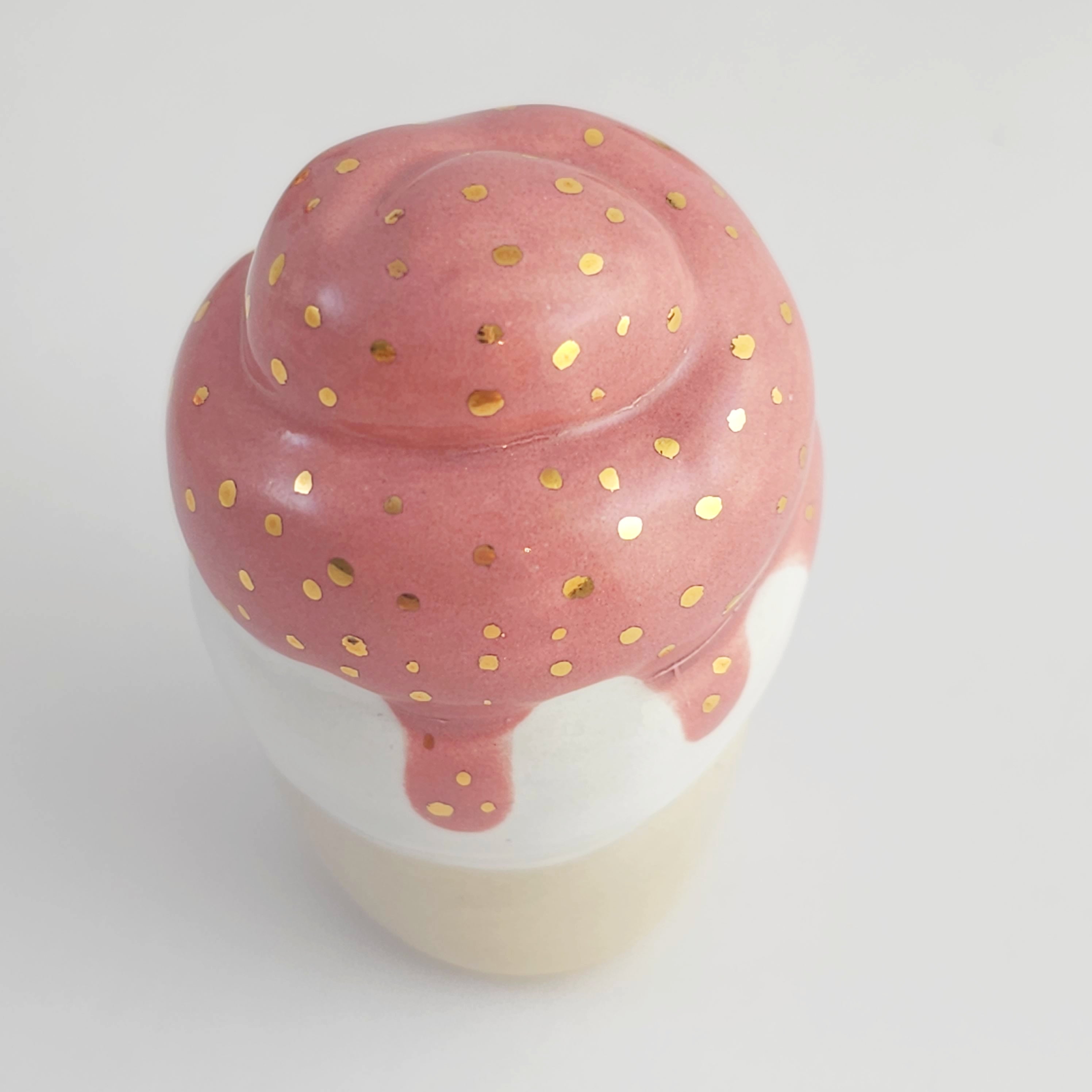 Small, hand built ceramic sculpture with 24-karat gold luster details