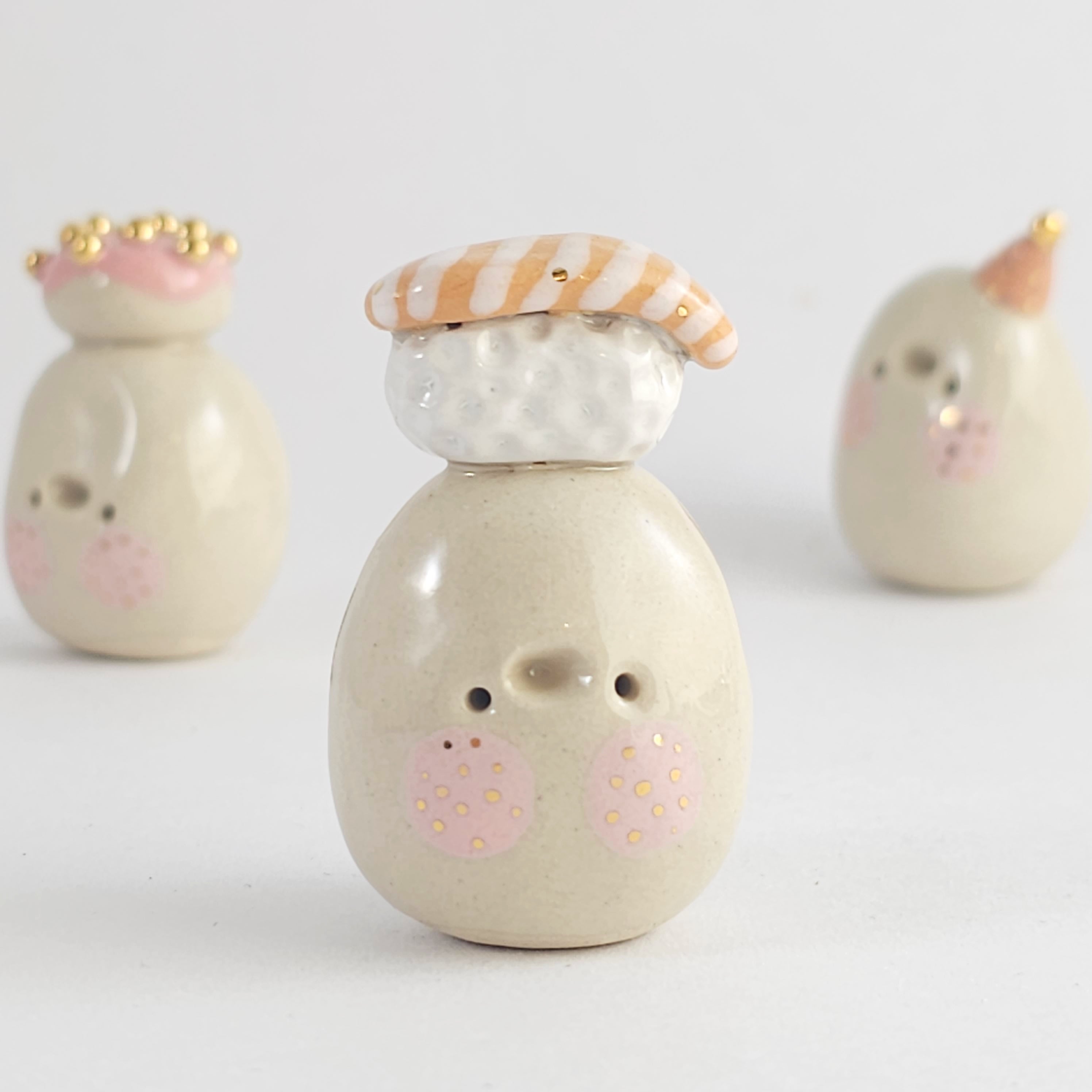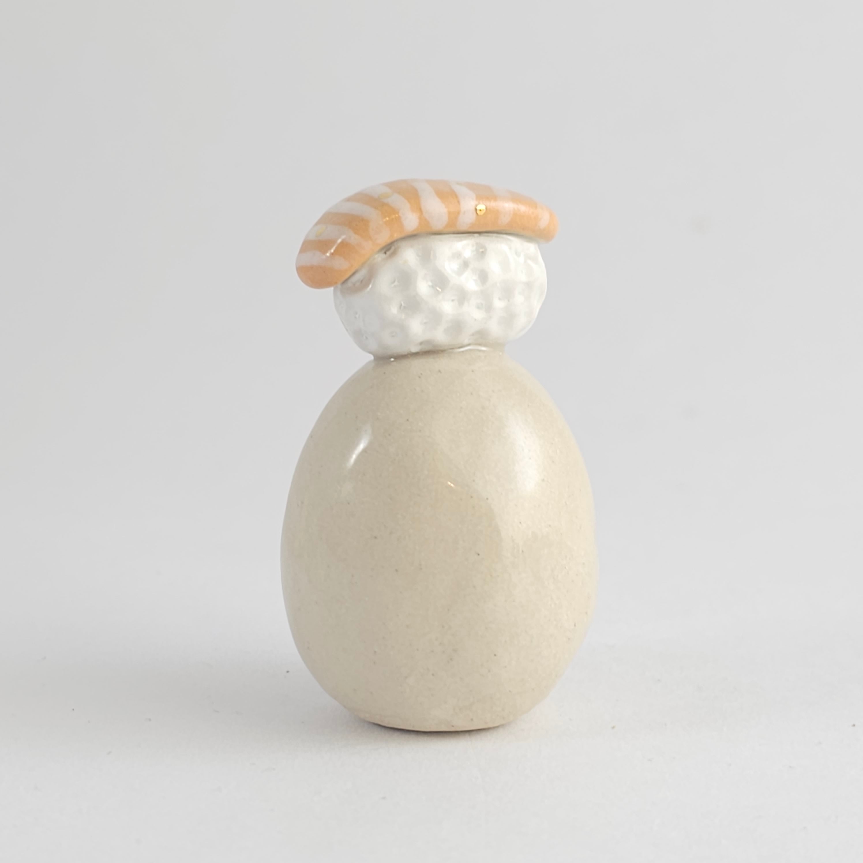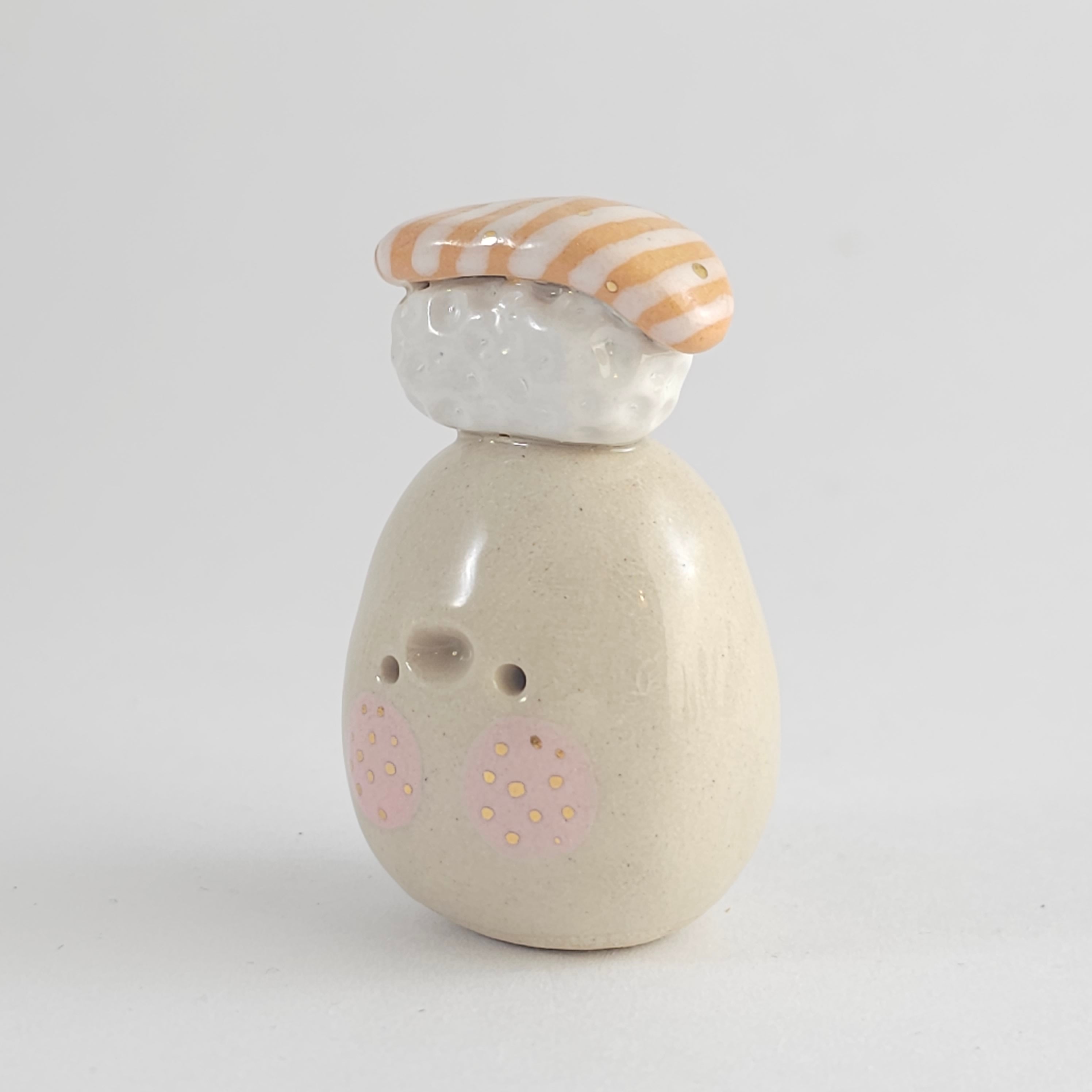 Small, hand built ceramic sculpture with 24-carat gold luster details