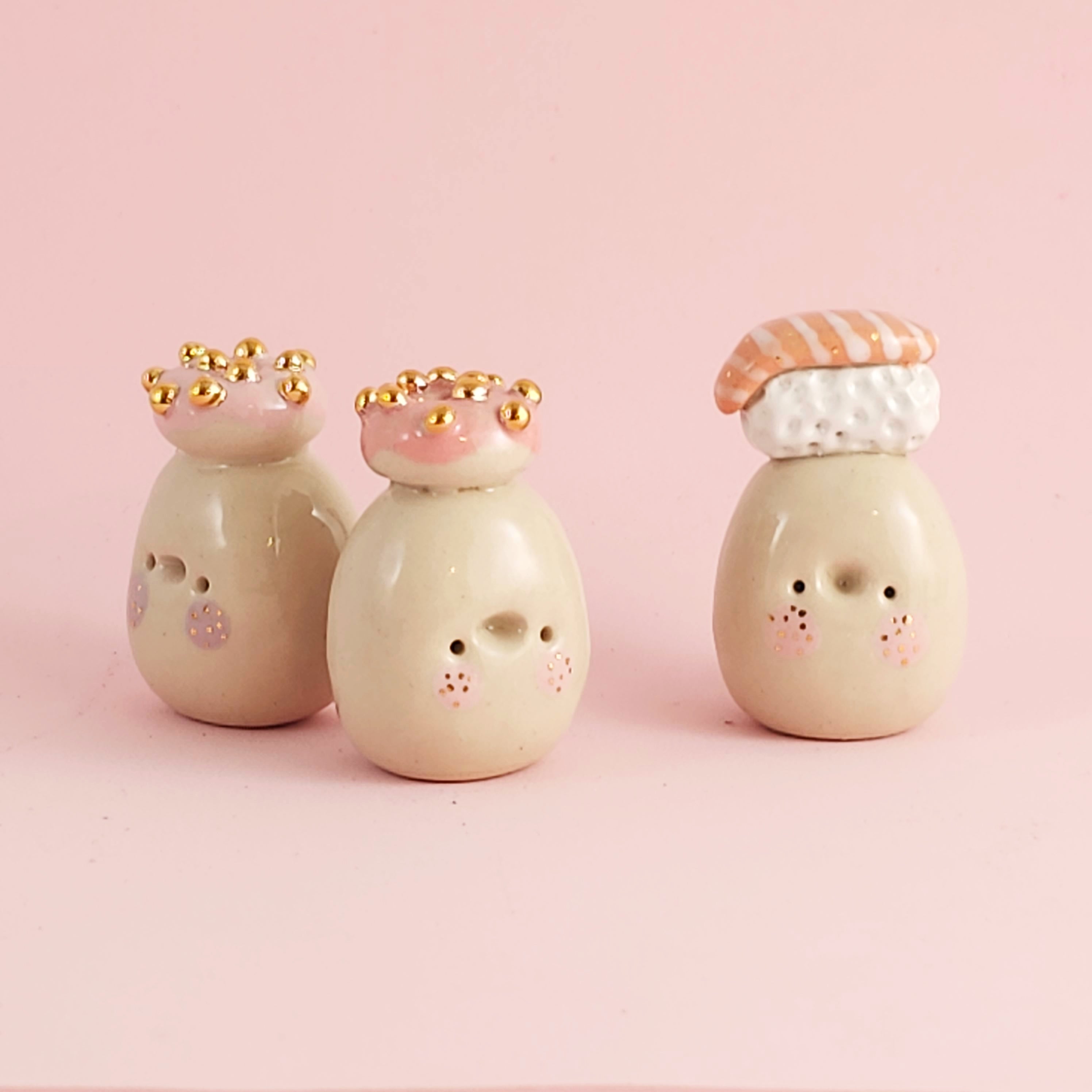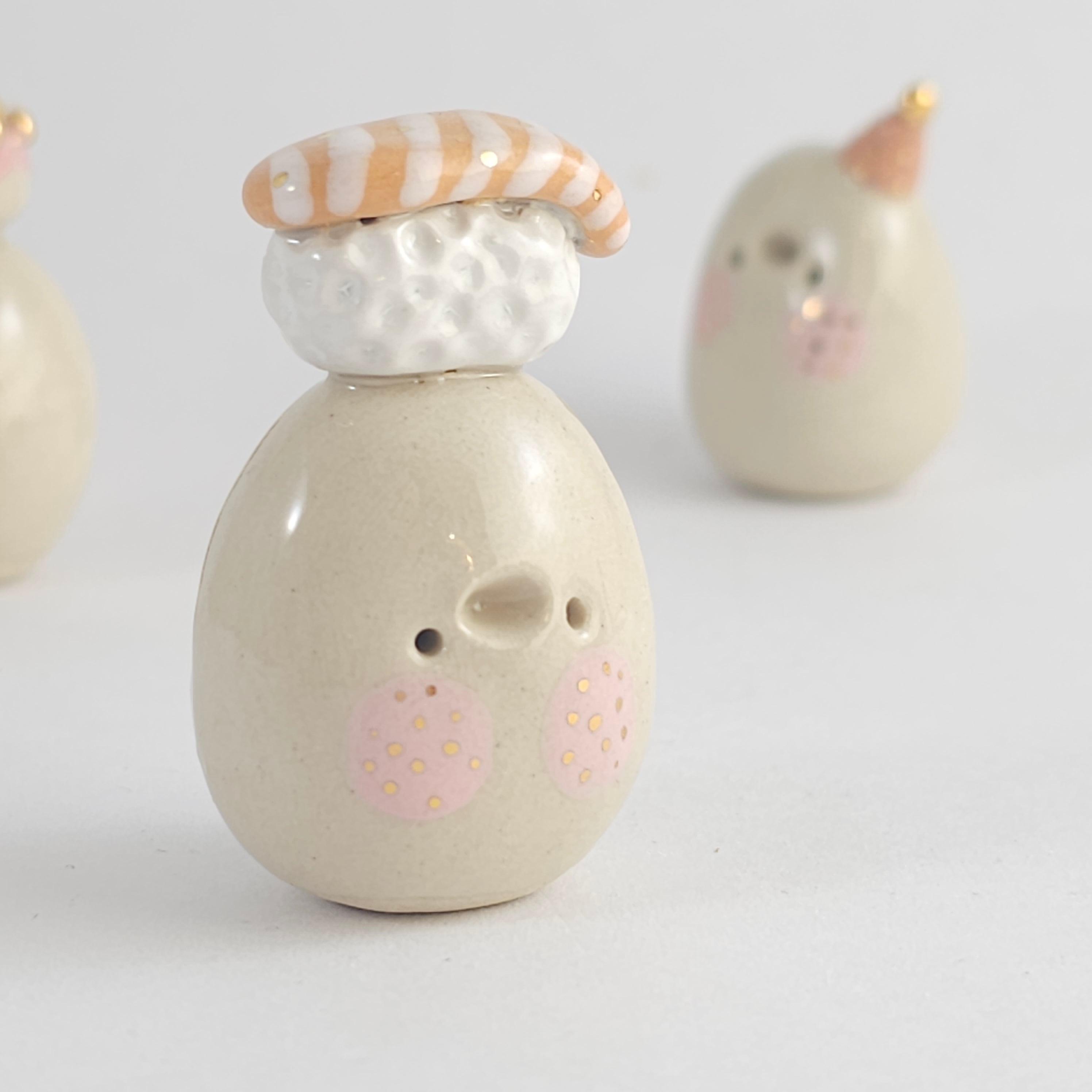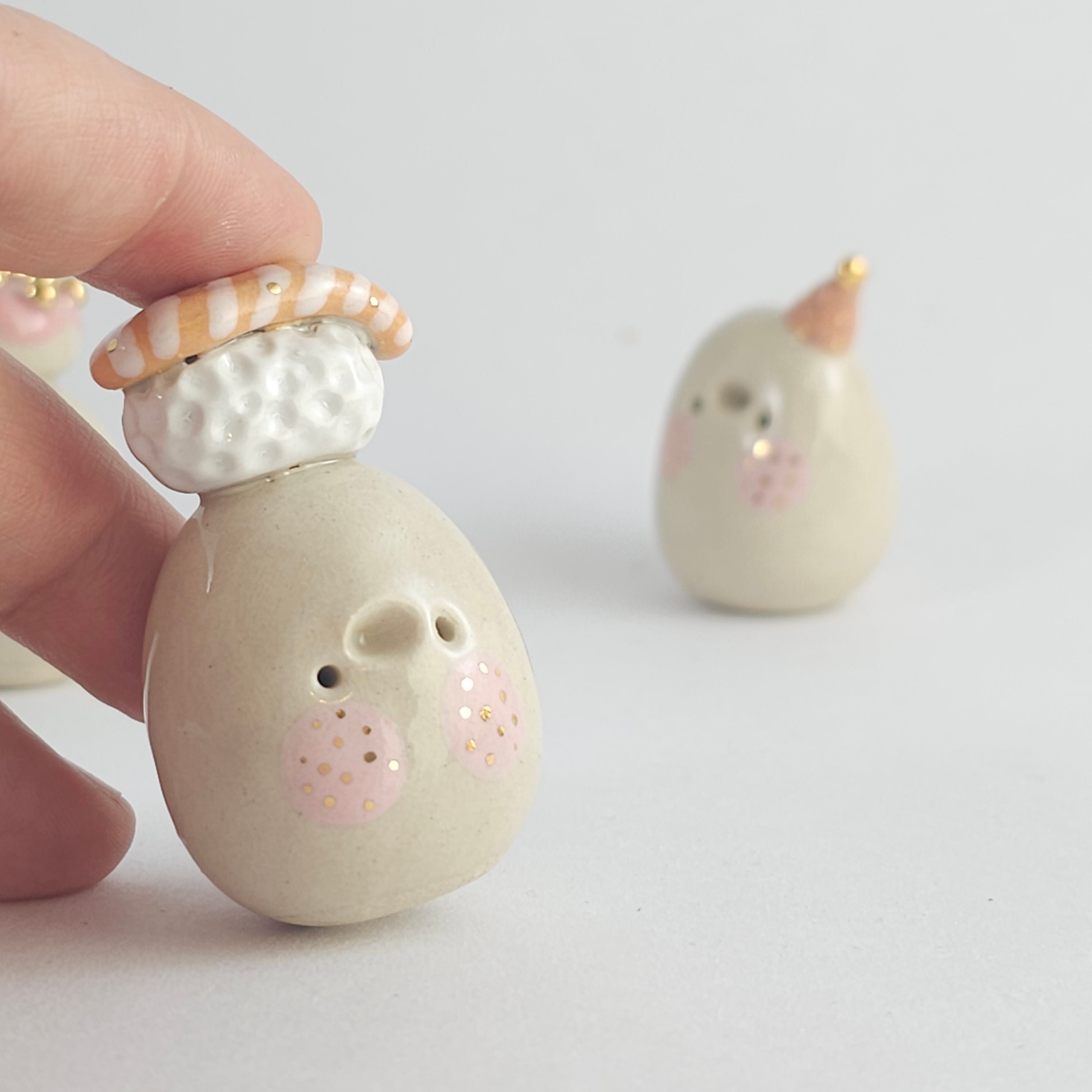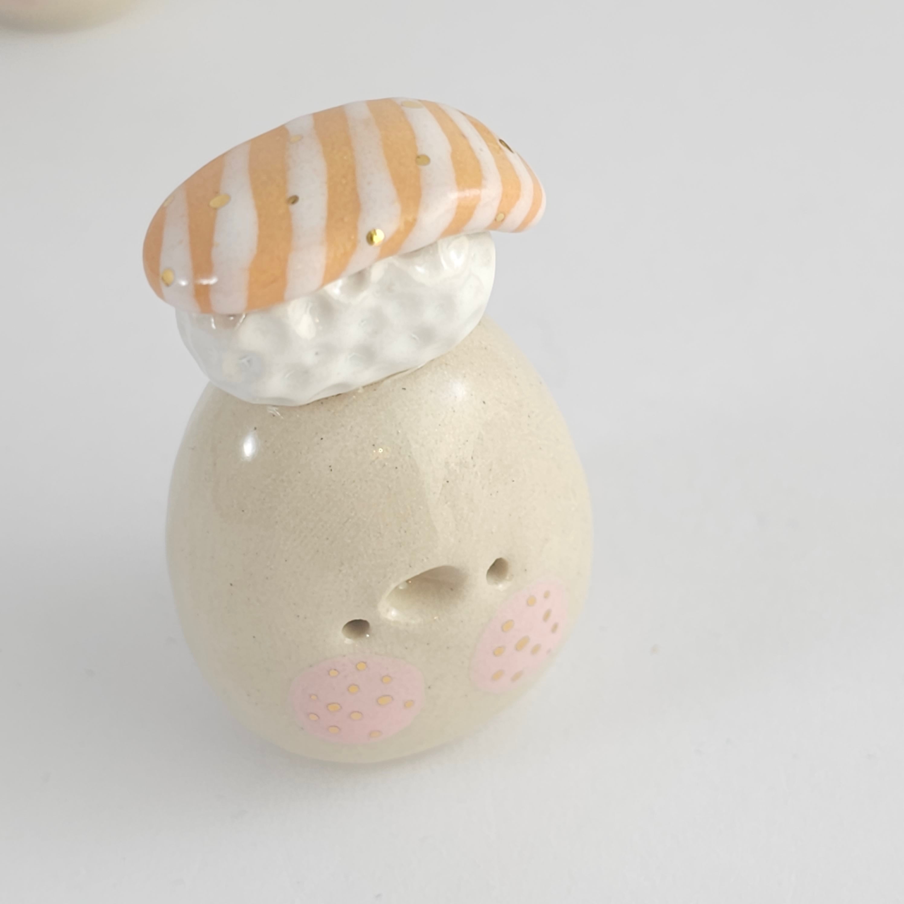 Small, hand built ceramic sculpture with 24-carat gold luster details