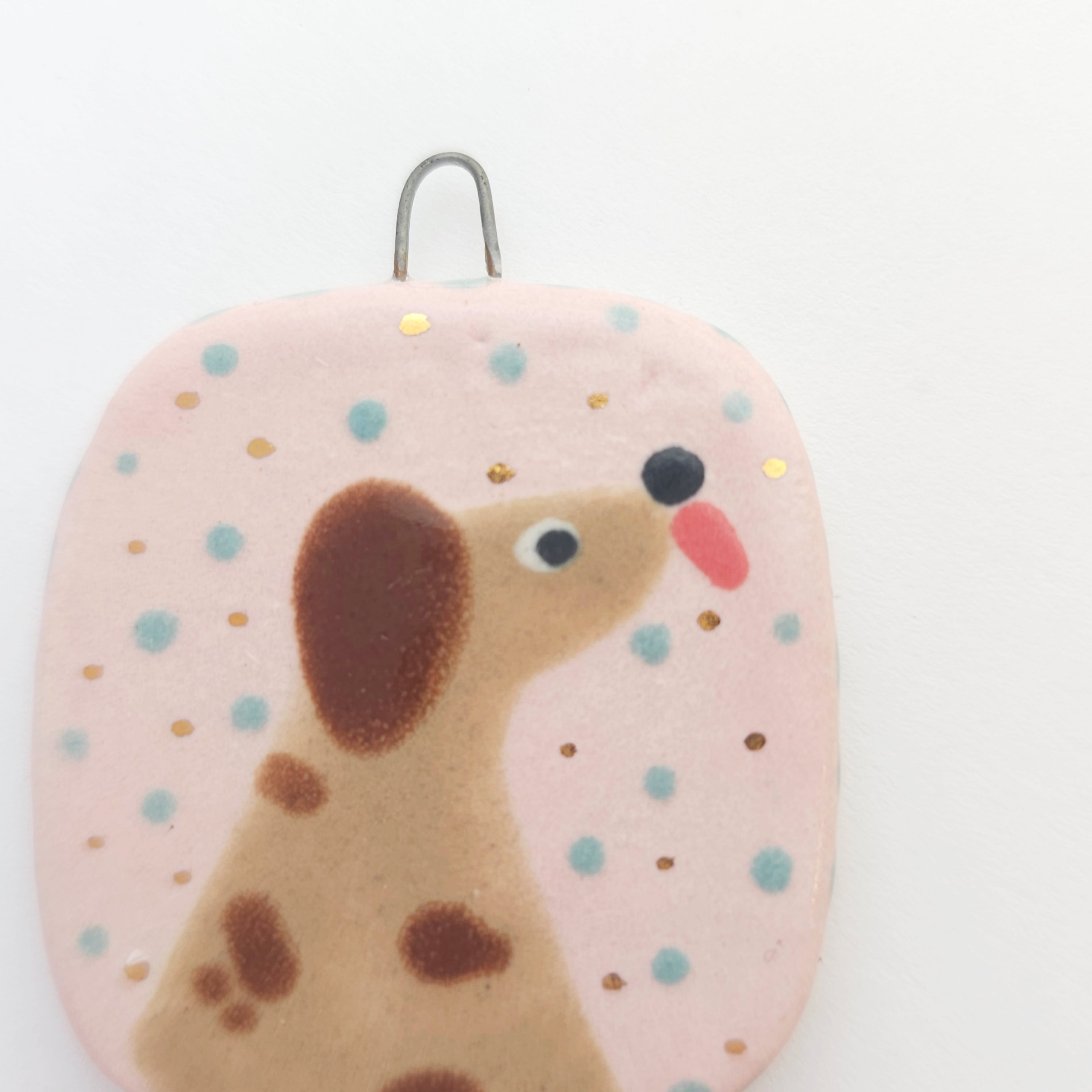 Hand sculpted & hand painted wall ornament, dipped in a transparent glaze.