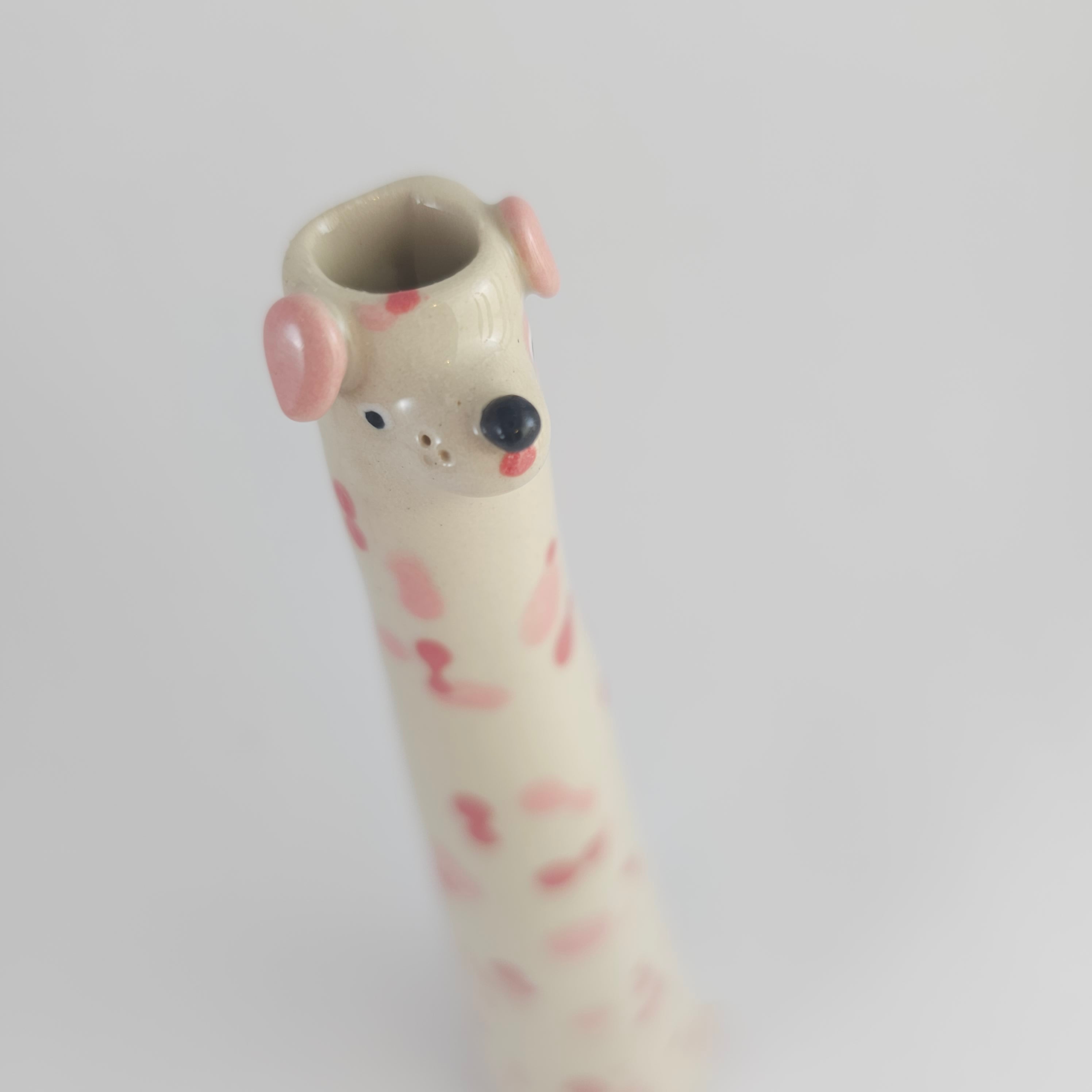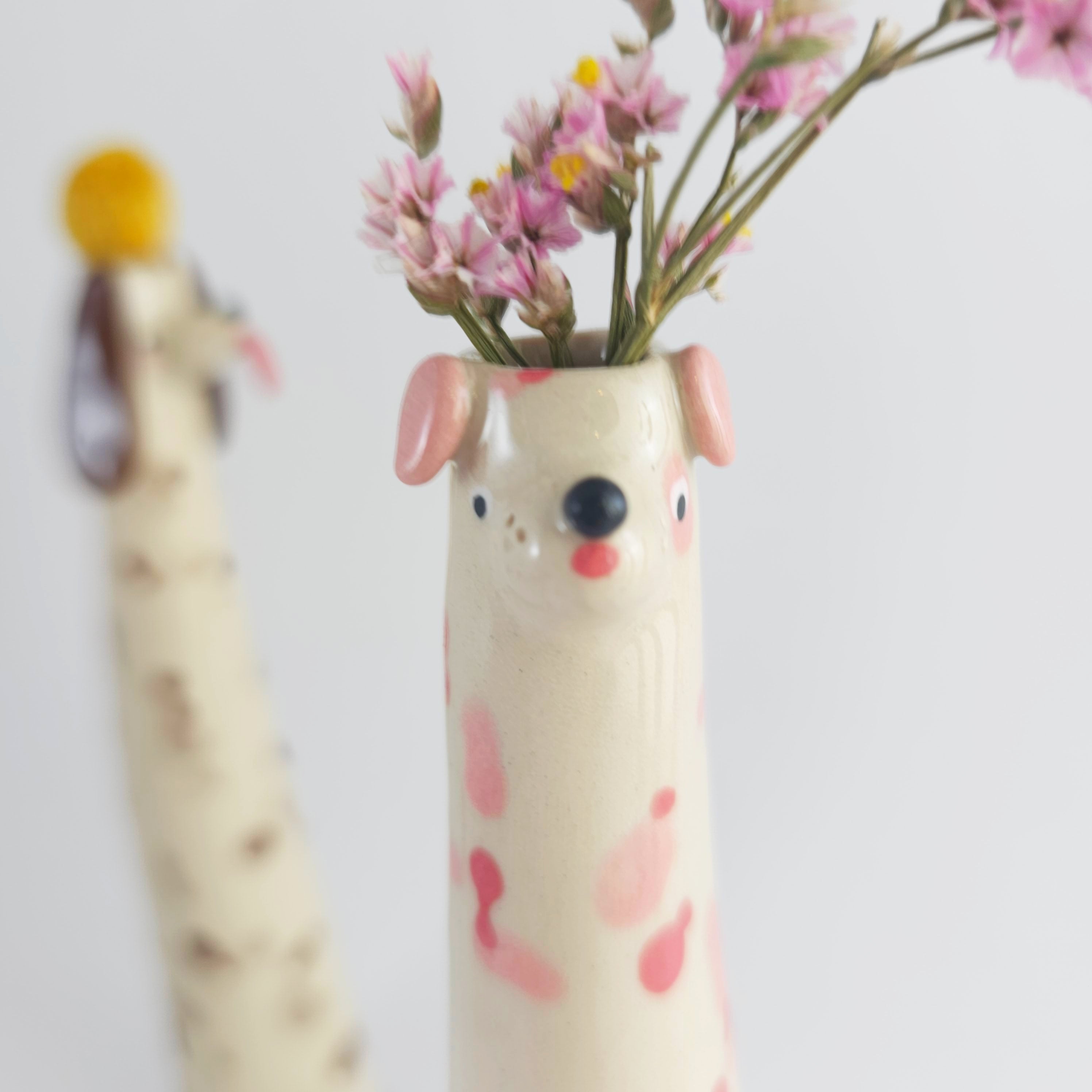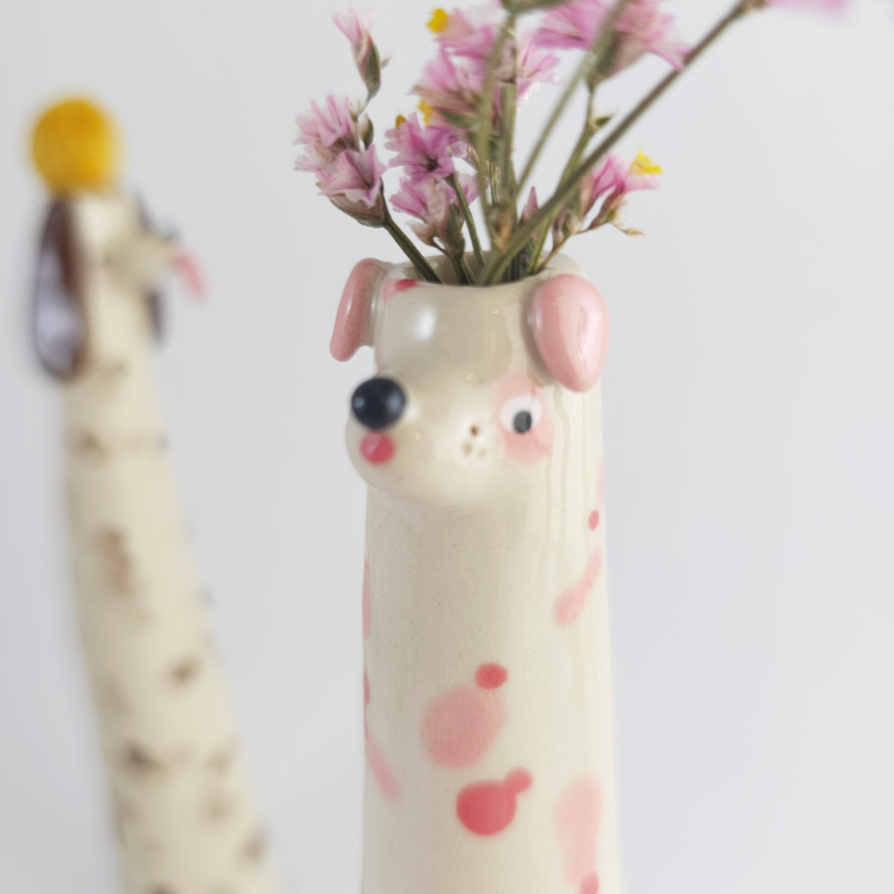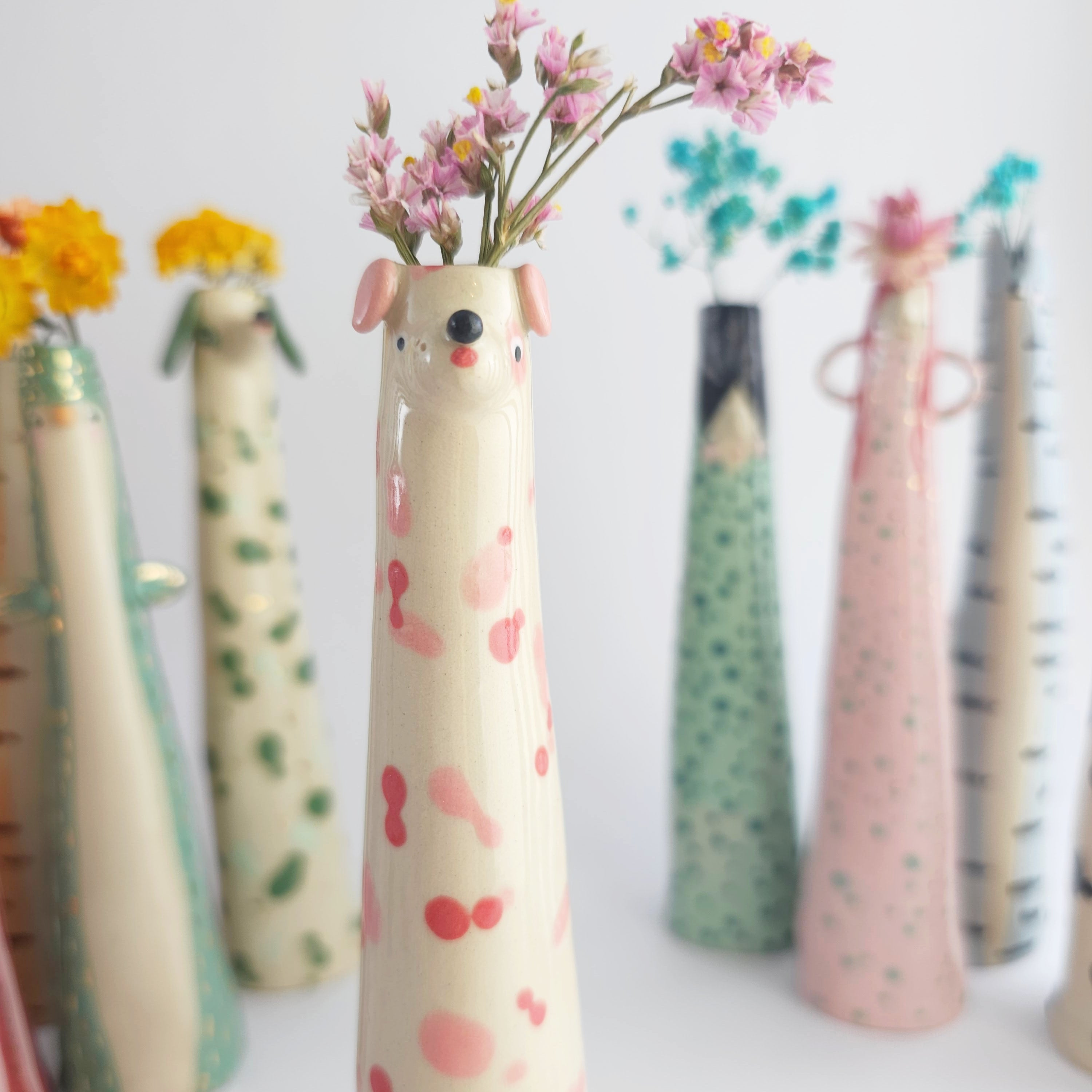 Hand built & hand painted ceramic vase, dipped in a transparent glaze.